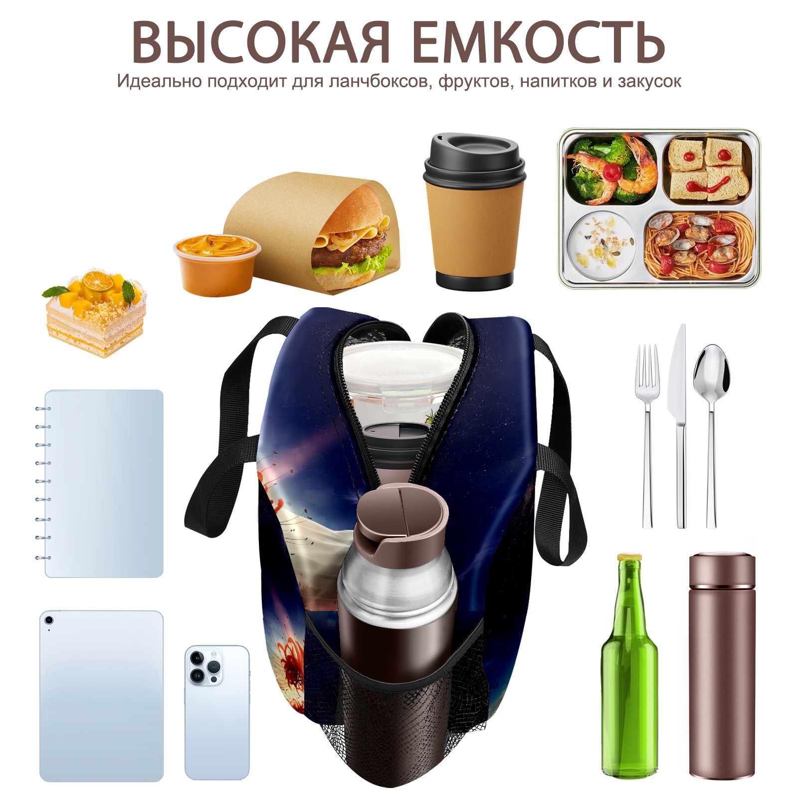 • <p>This stylish lunch bag is made of premium 600D waterproof Oxford cloth with thick insulating pearl foam lining and smooth, durable zippers, combining an attractive look with long-lasting daily use. Measuring 9.8*6.7*8.7, it offers ample space with a main zippered compartment and a front pocket to organize containers, food and snacks neatly for easy access. Boasting an extra-thick aluminum foil lining and heat-welded seams, it delivers reliable leak-proof performance and strong insulation to keep food hot or cold for hours, ideal for sandwiches, salads, fruits and more. Lightweight and portable with a sturdily stitched upgraded handle, this reusable lunch bag is a perfect companion for work, camping, picnics, beach trips and outdoor travel, helping you enjoy fresh homemade meals on the go.</p>