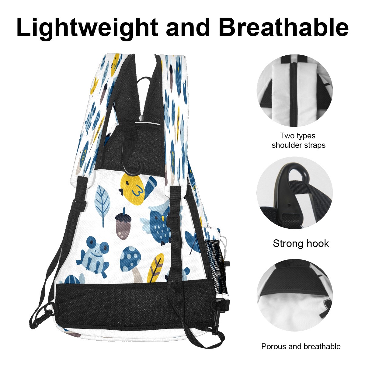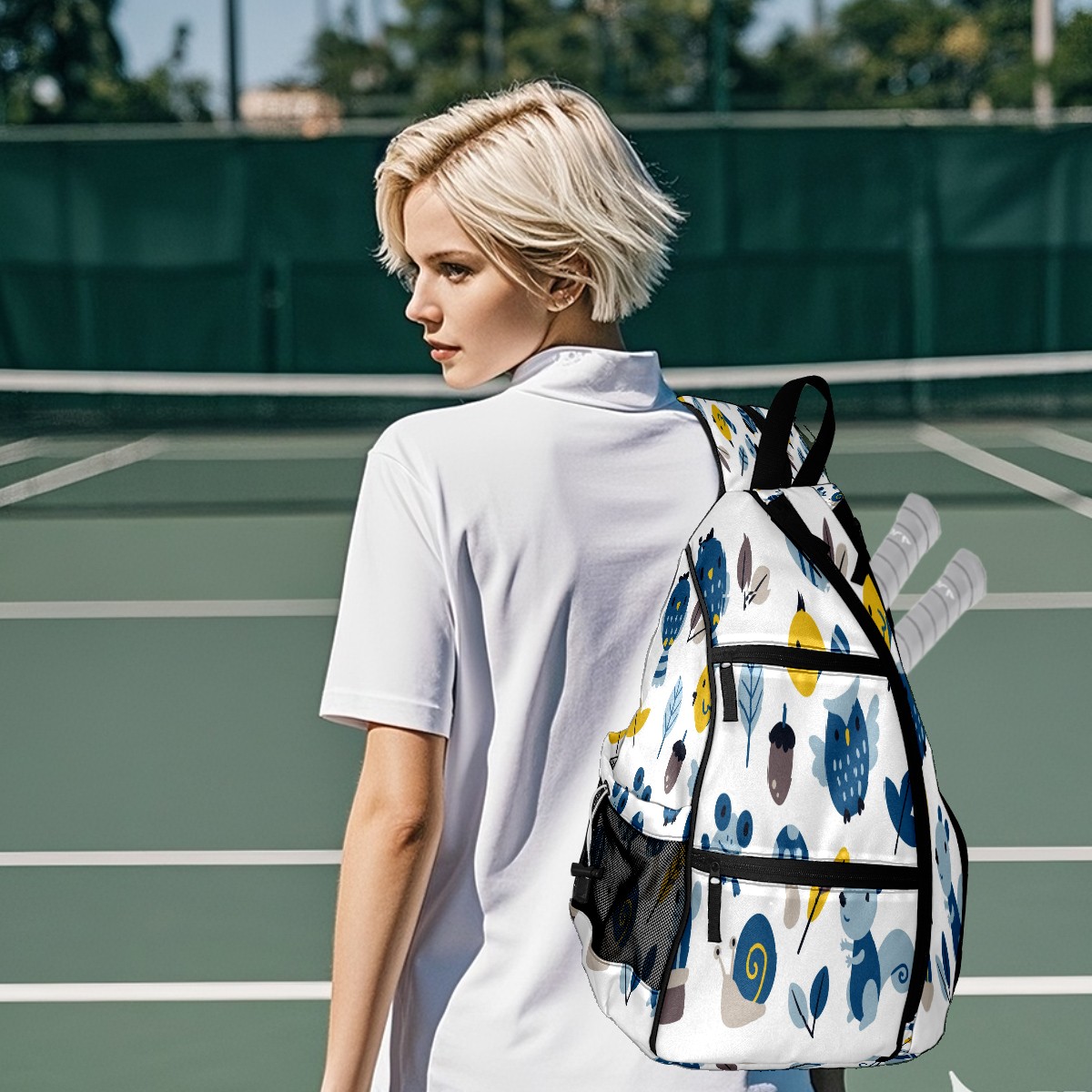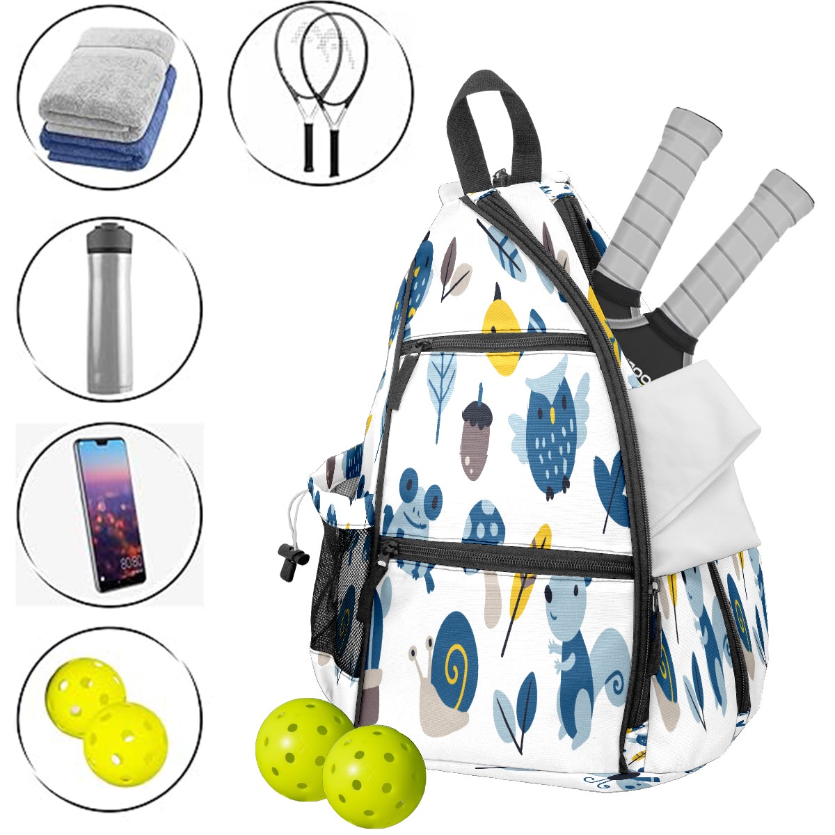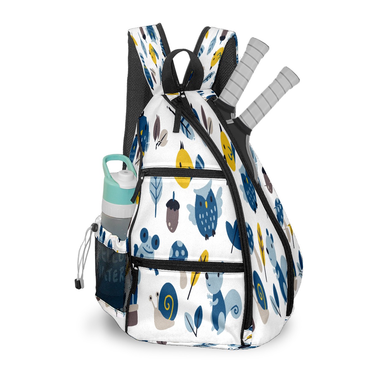Multifunctional Pickleball Bag,Large Capacity Sports Pickleball Racket Bag, Water Bottle Holder and Fence Hook,Suitable for Both Men Women -カタツムリ カエル かわいい