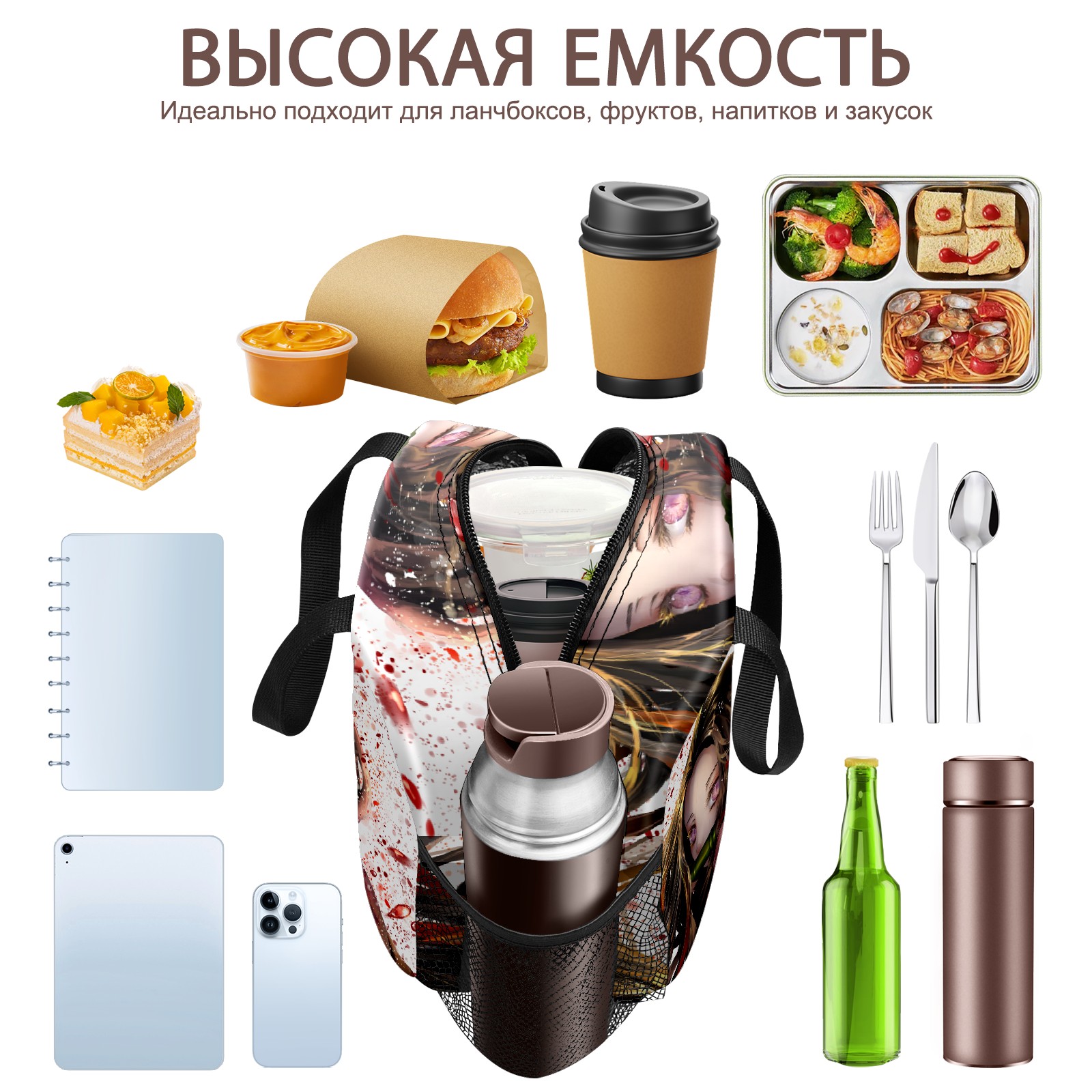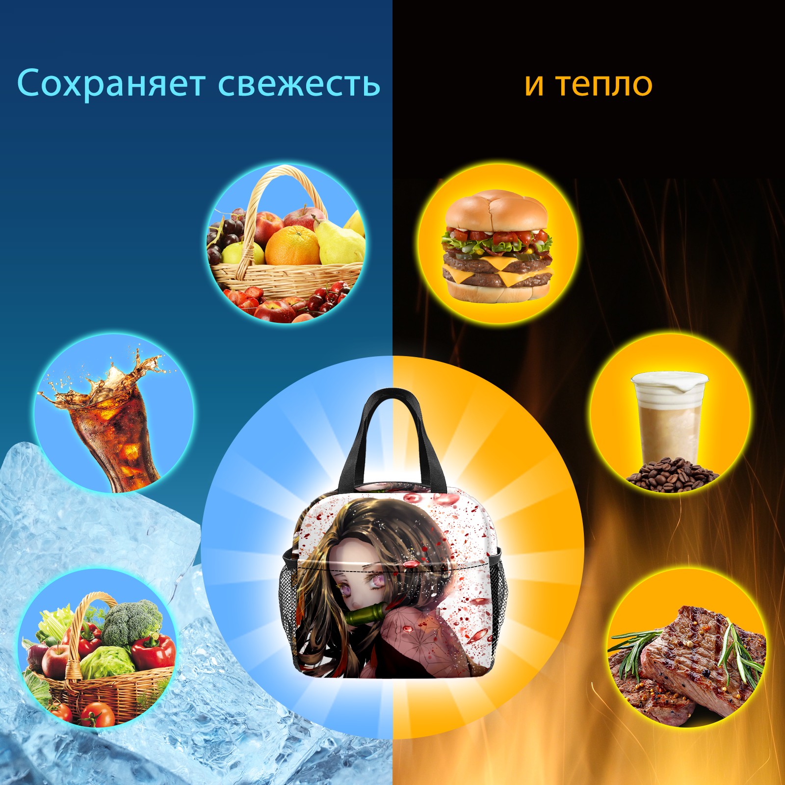 Lunch Bag,Lunch Box for Women Men,Cute Sweet Girl Anime 2 Reusable Insulated Lunch Tote,Small Leakproof Cute Lunch Cooler with High Capacity for Work,Picnic,Camping