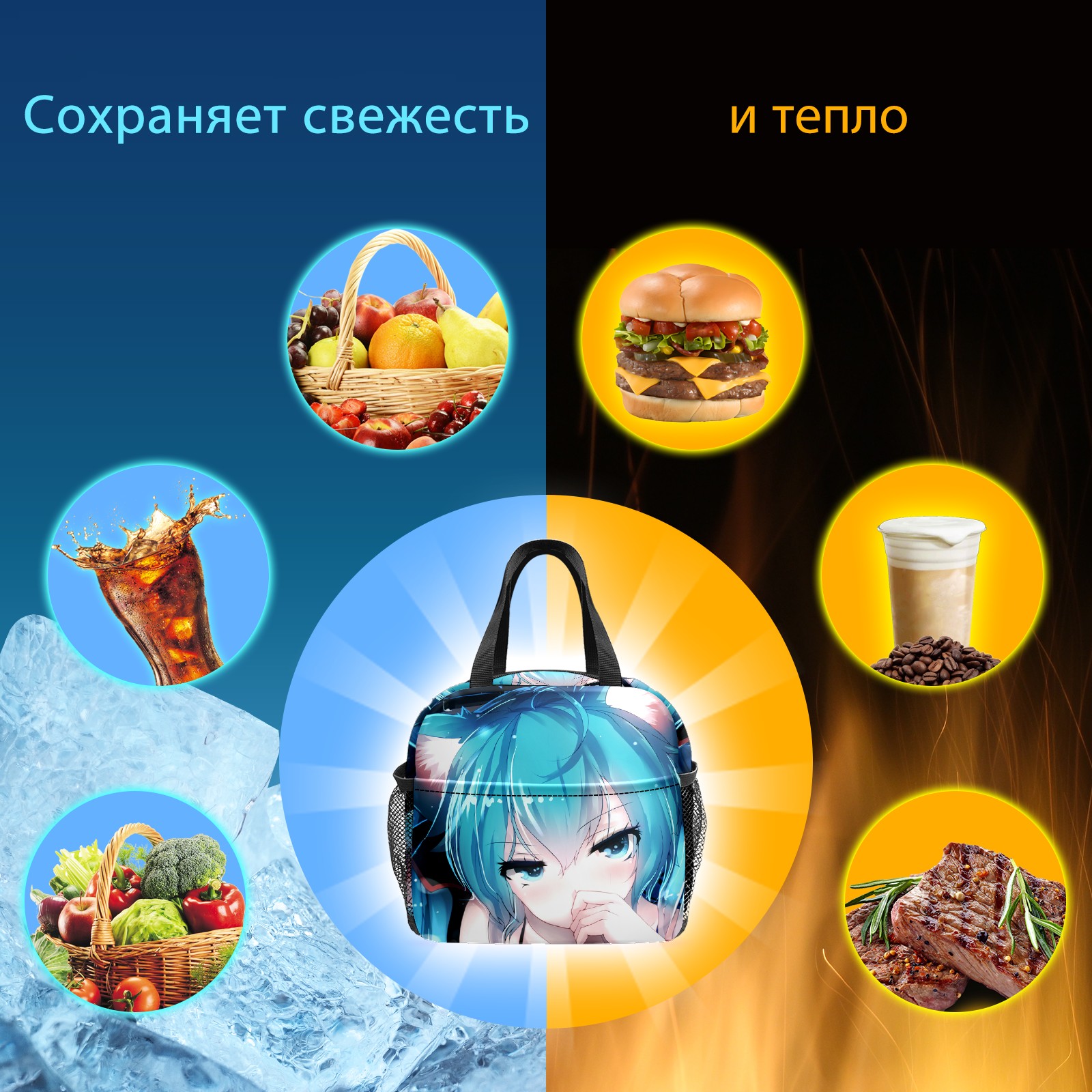 Lunch Bag,Lunch Box for Women Men,Cute Girl Anime Reusable Insulated Lunch Tote,Small Leakproof Cute Lunch Cooler with High Capacity for Work,Picnic,Camping