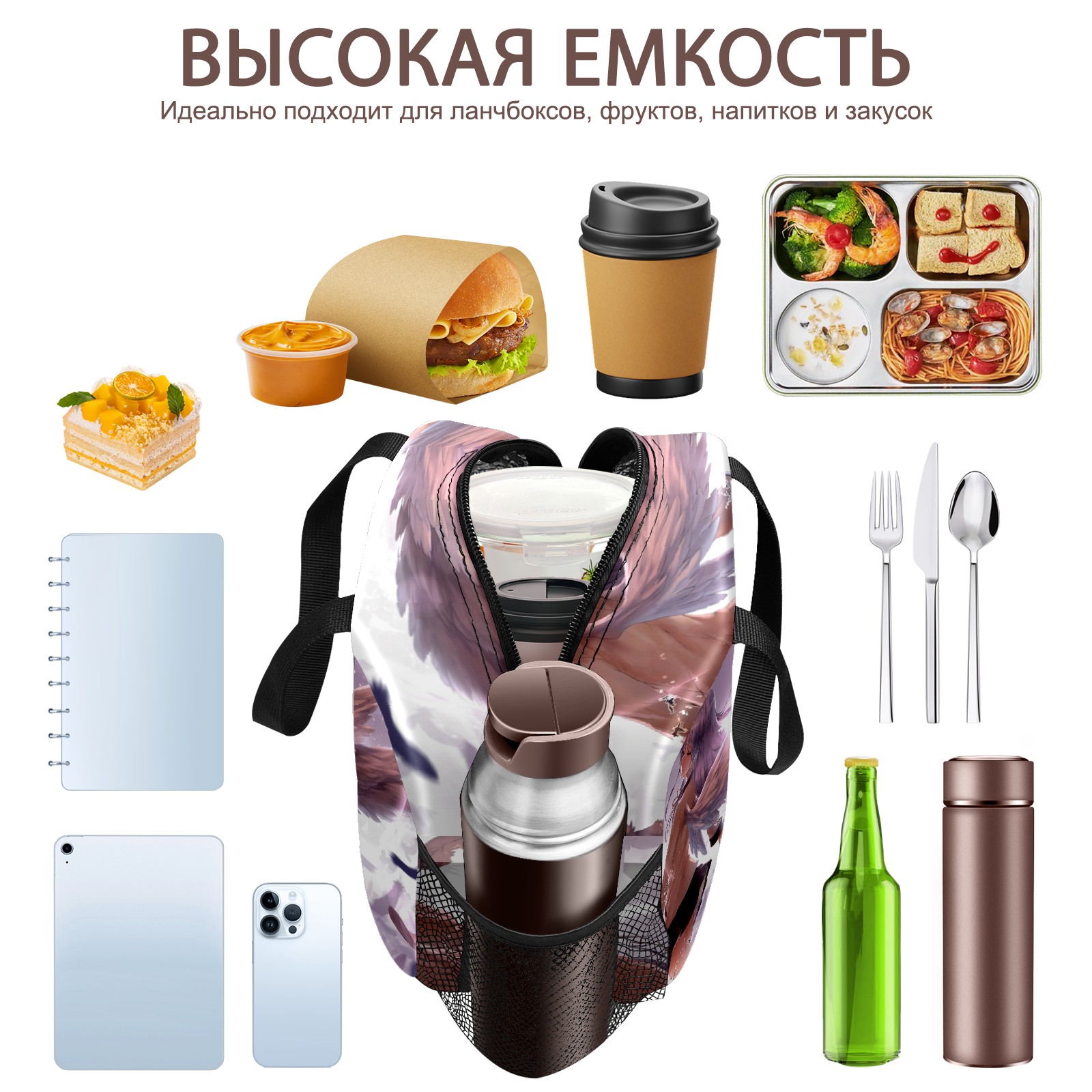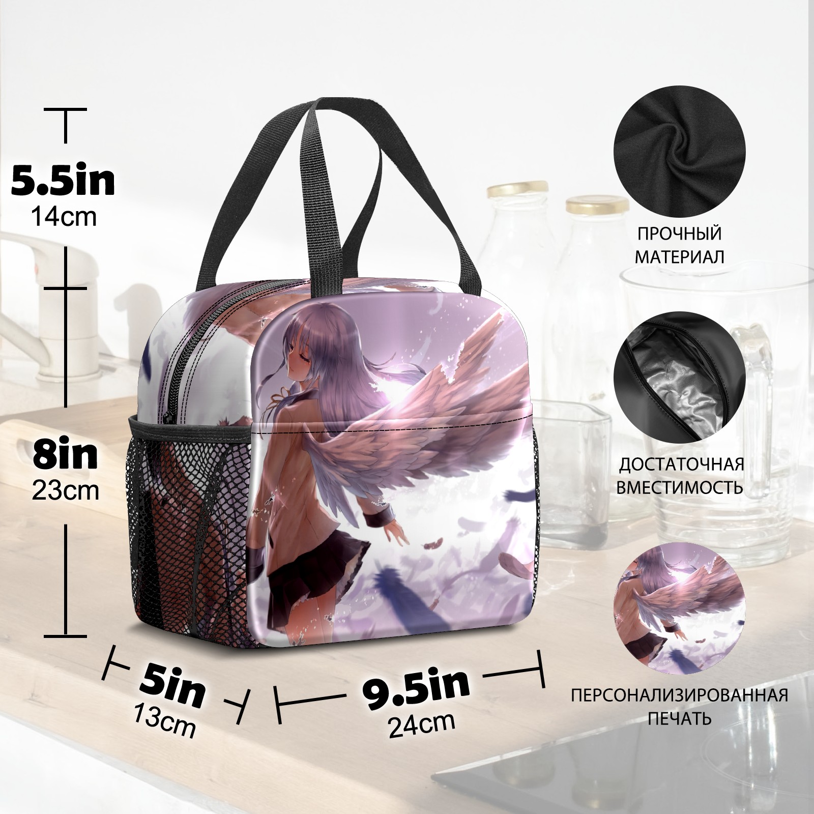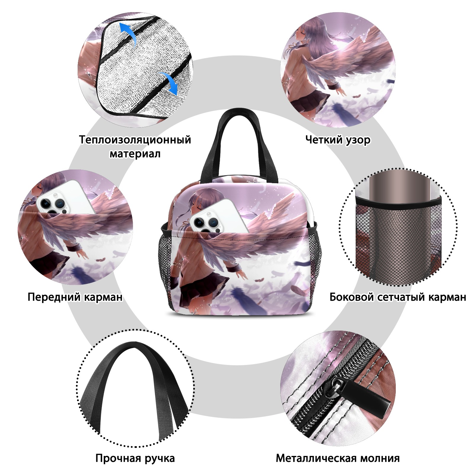 Lunch Bag,Lunch Box for Women Men,Anime Angel Girl Reusable Insulated Lunch Tote,Small Leakproof Cute Lunch Cooler with High Capacity for Work,Picnic,Camping