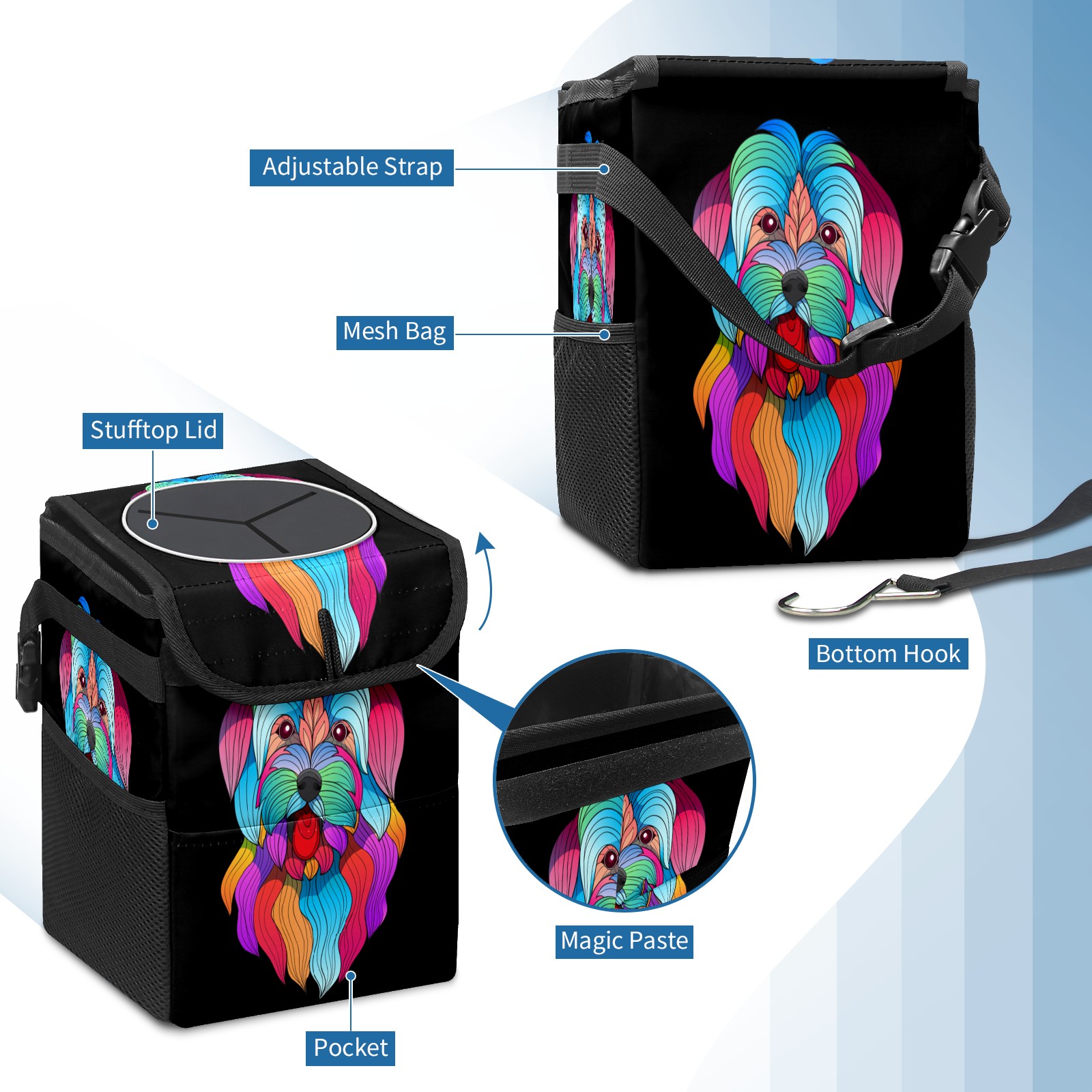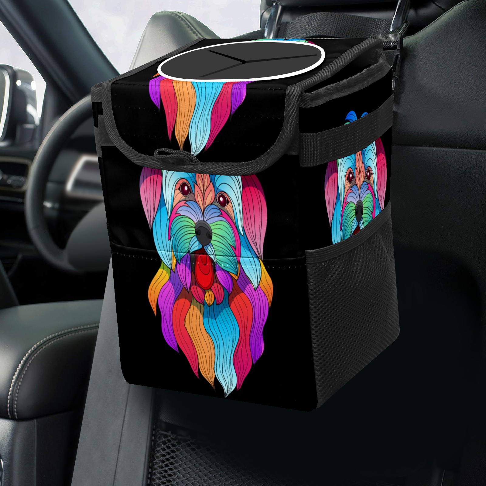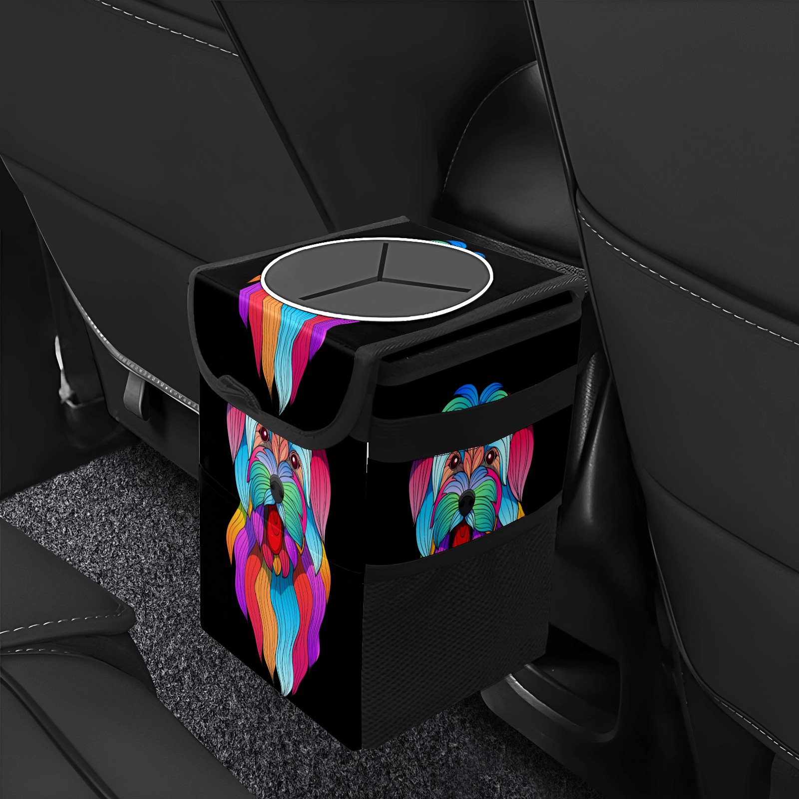 Car Garbage Can — Multi-functional, Lightweight Portable, Reusable Vehicle Trash Can, Waterproof with Sufficient Storage Capacity Colorful Stylized Dog