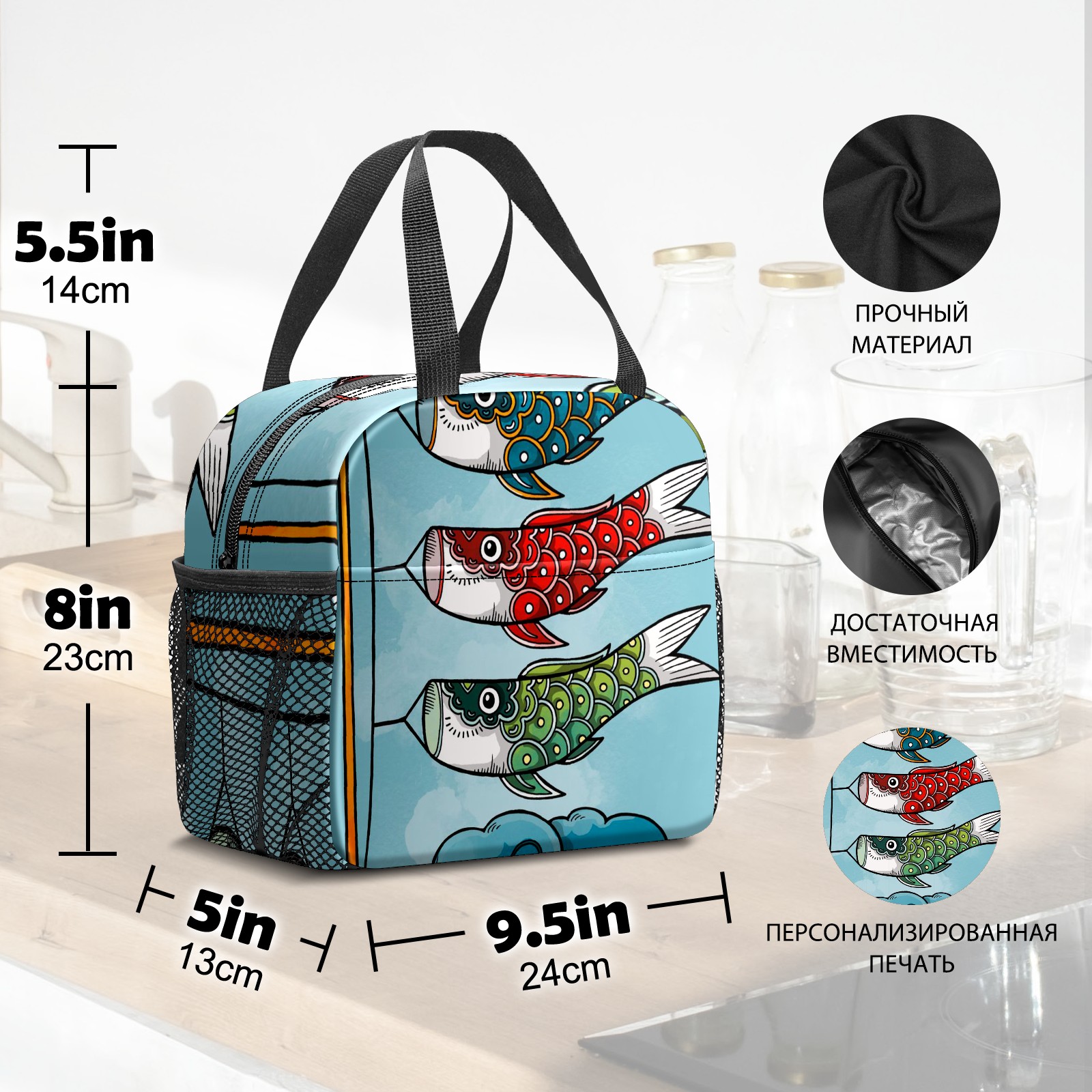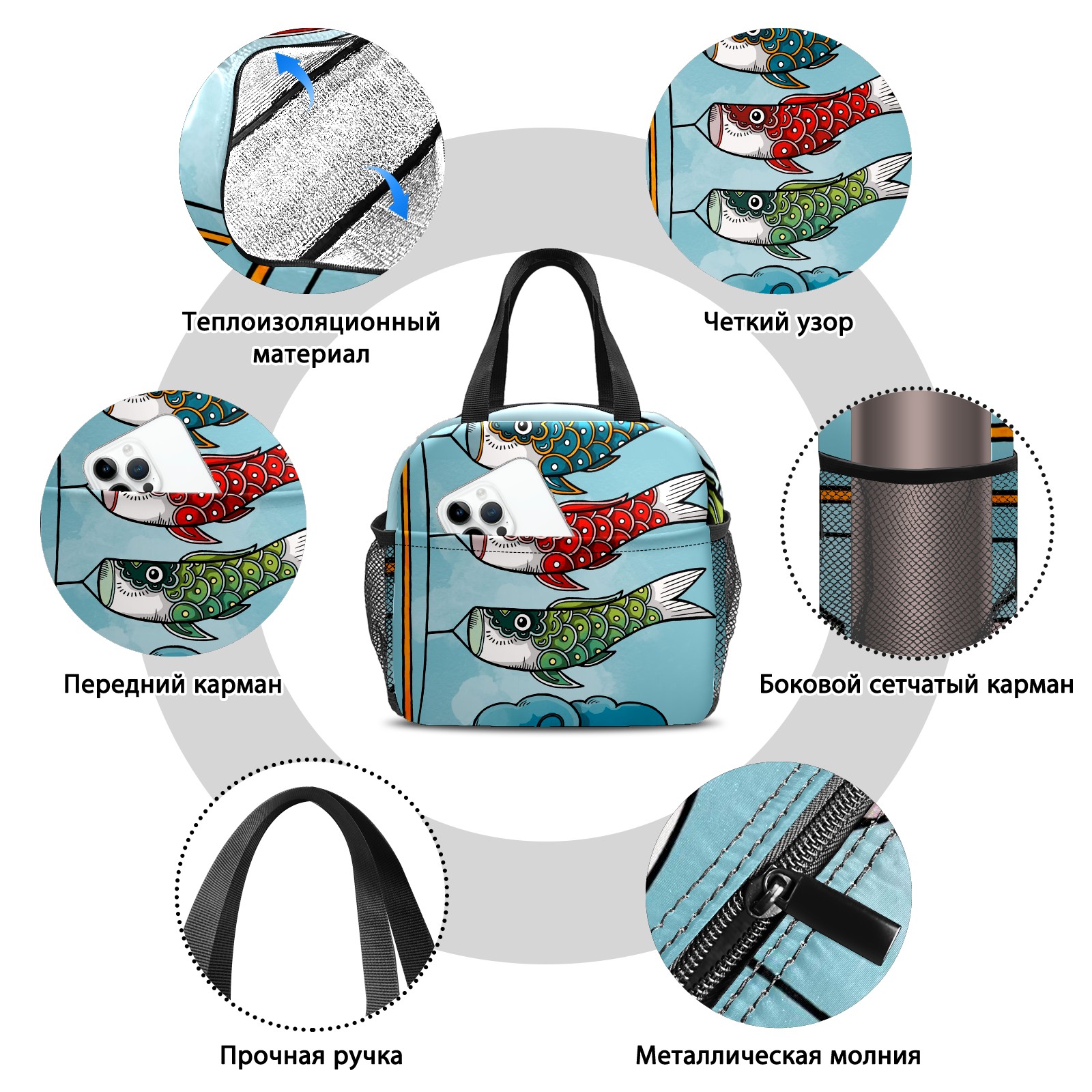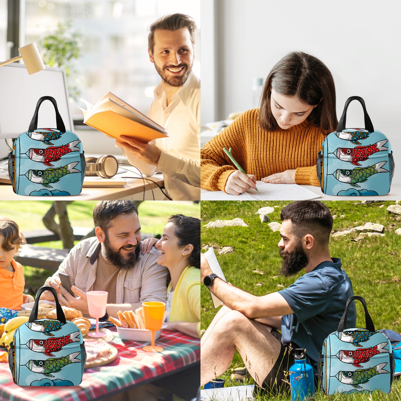 Lunch Bag,Lunch Box for Women Men,Koinobori Reusable Insulated Lunch Tote,Small Leakproof Cute Lunch Cooler with High Capacity for Work,Picnic,Camping