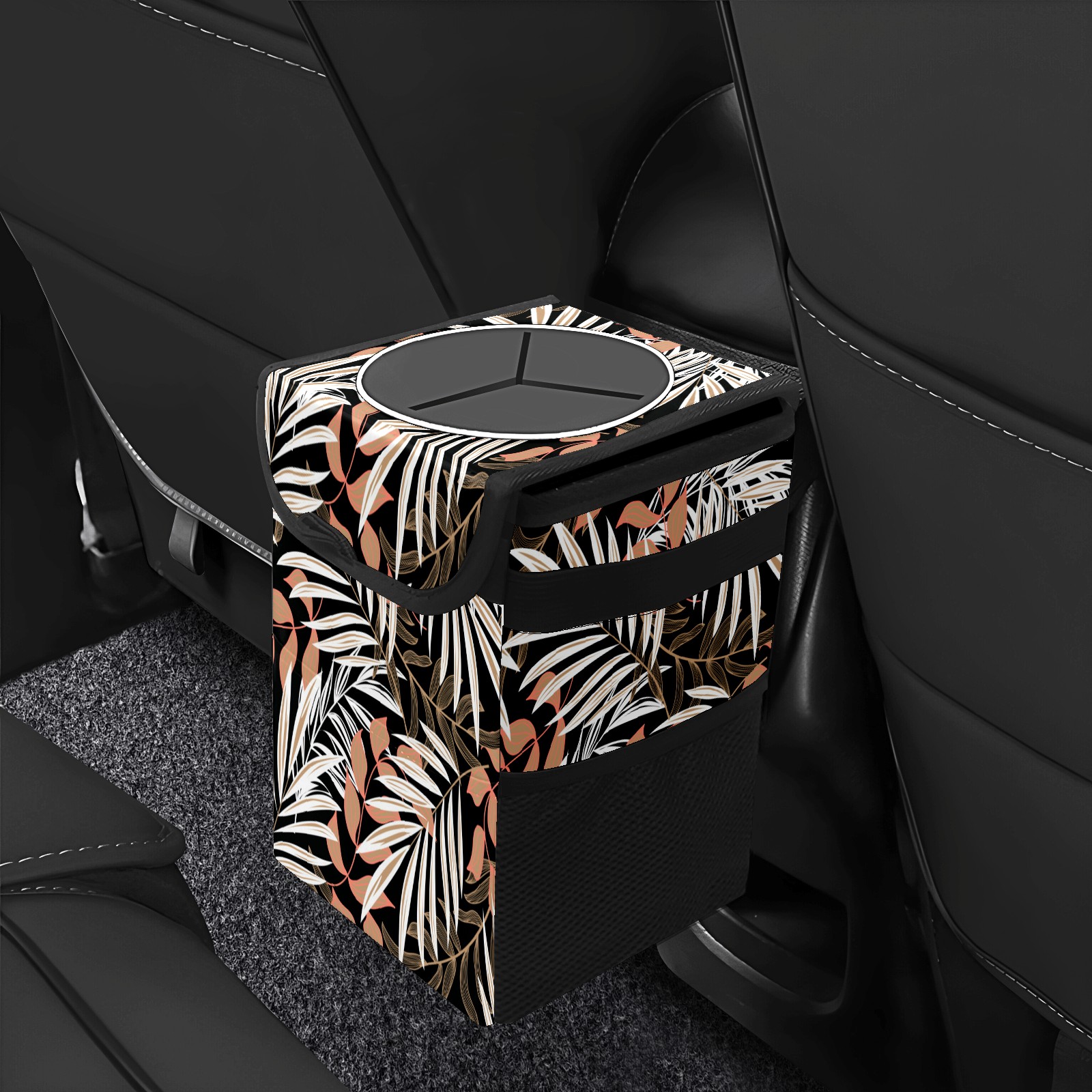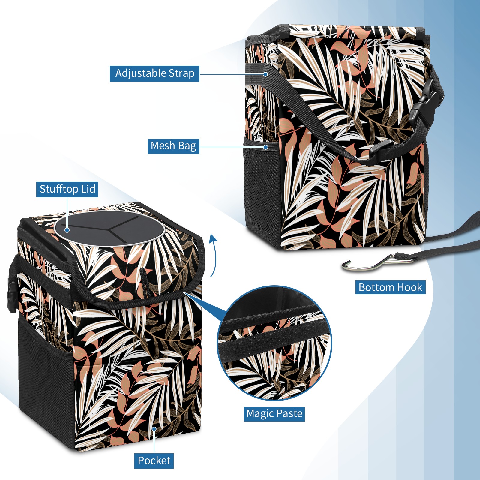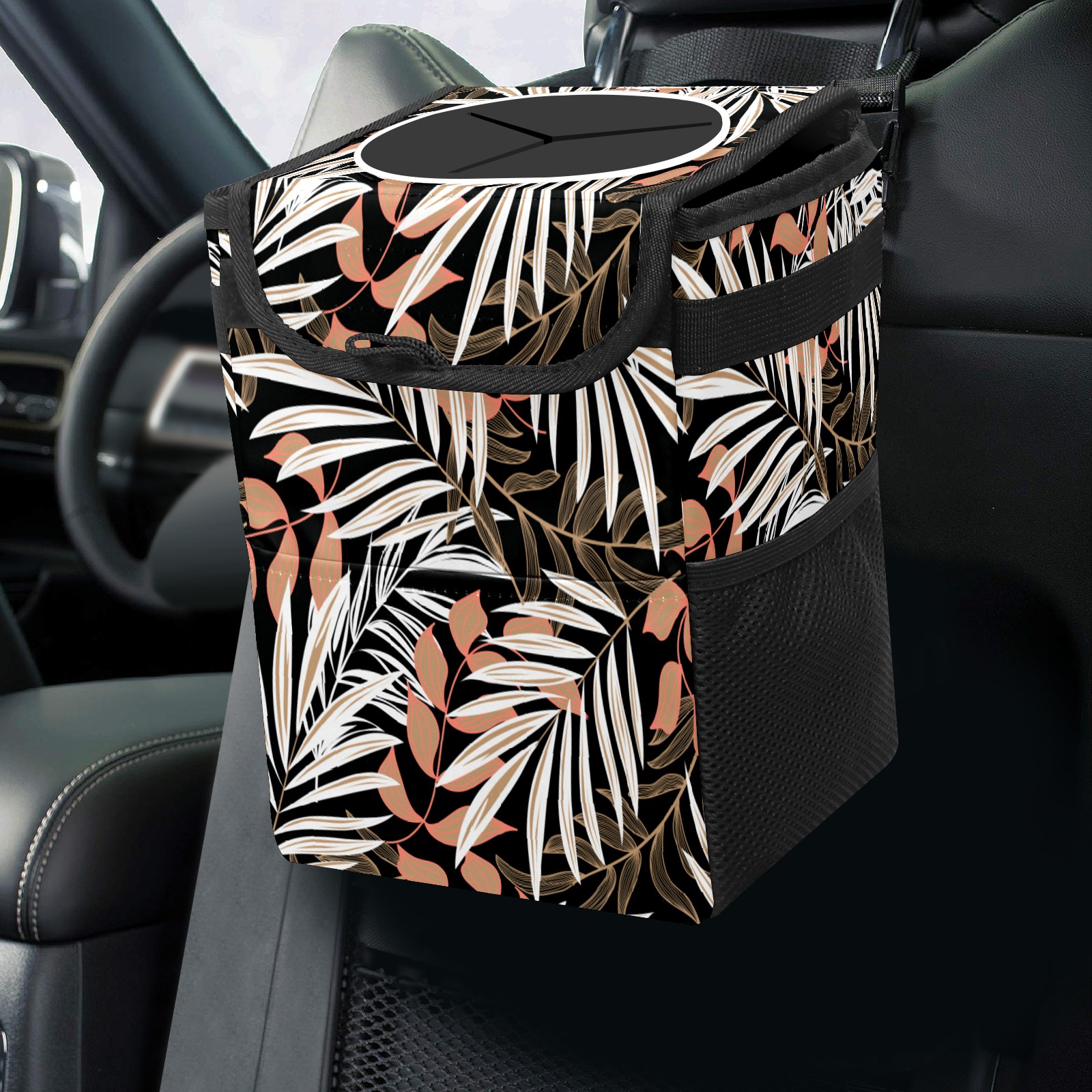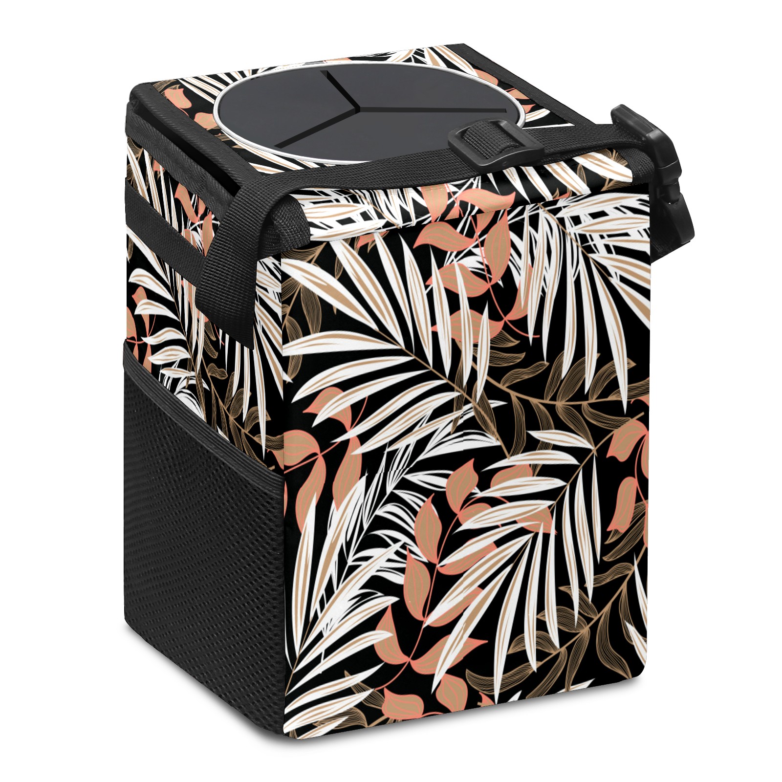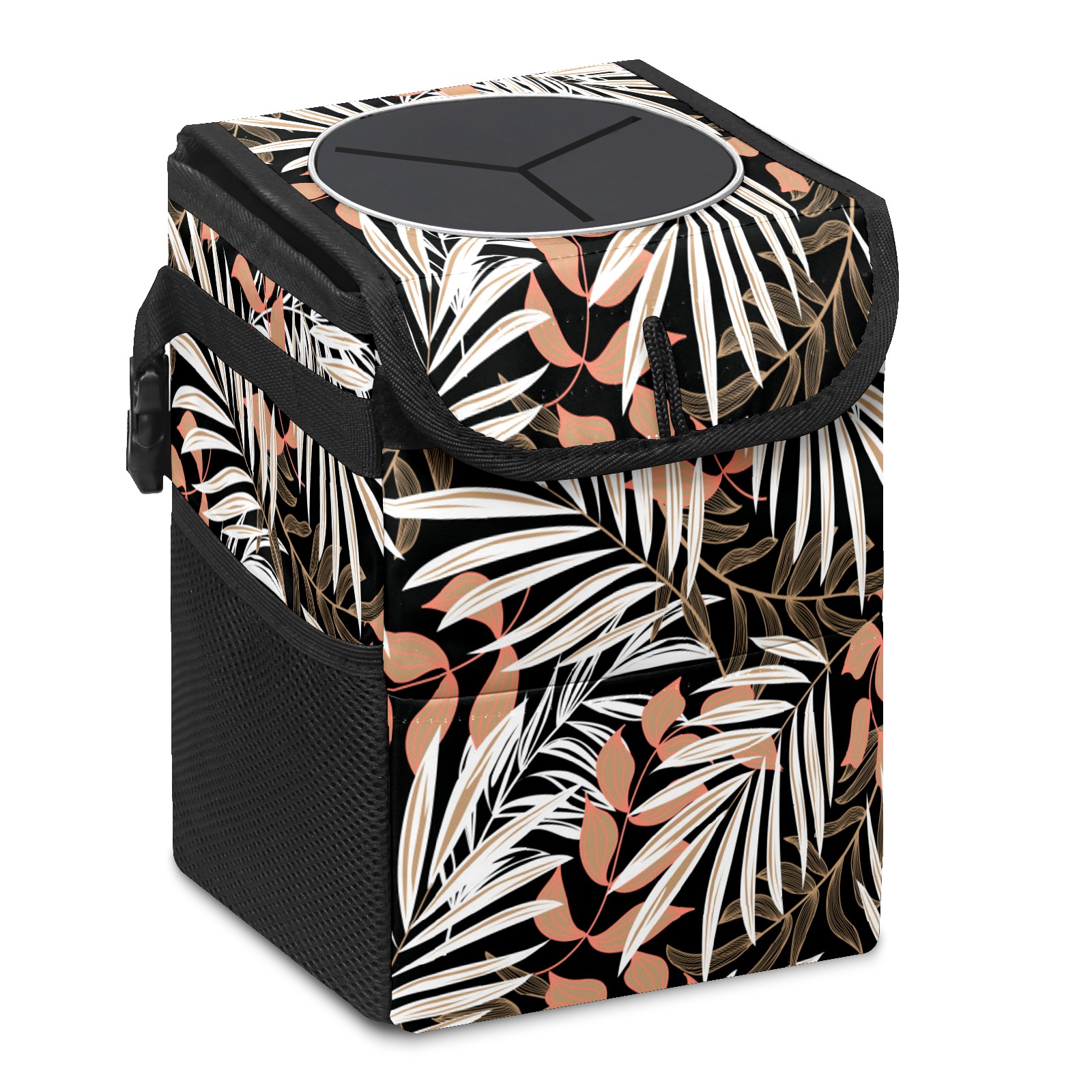 Car Garbage Can — Multi-functional, Lightweight Portable, Reusable Vehicle Trash Can, Waterproof with Sufficient Storage Capacity Colorful Tropical Leaves Plants Dark Pattern