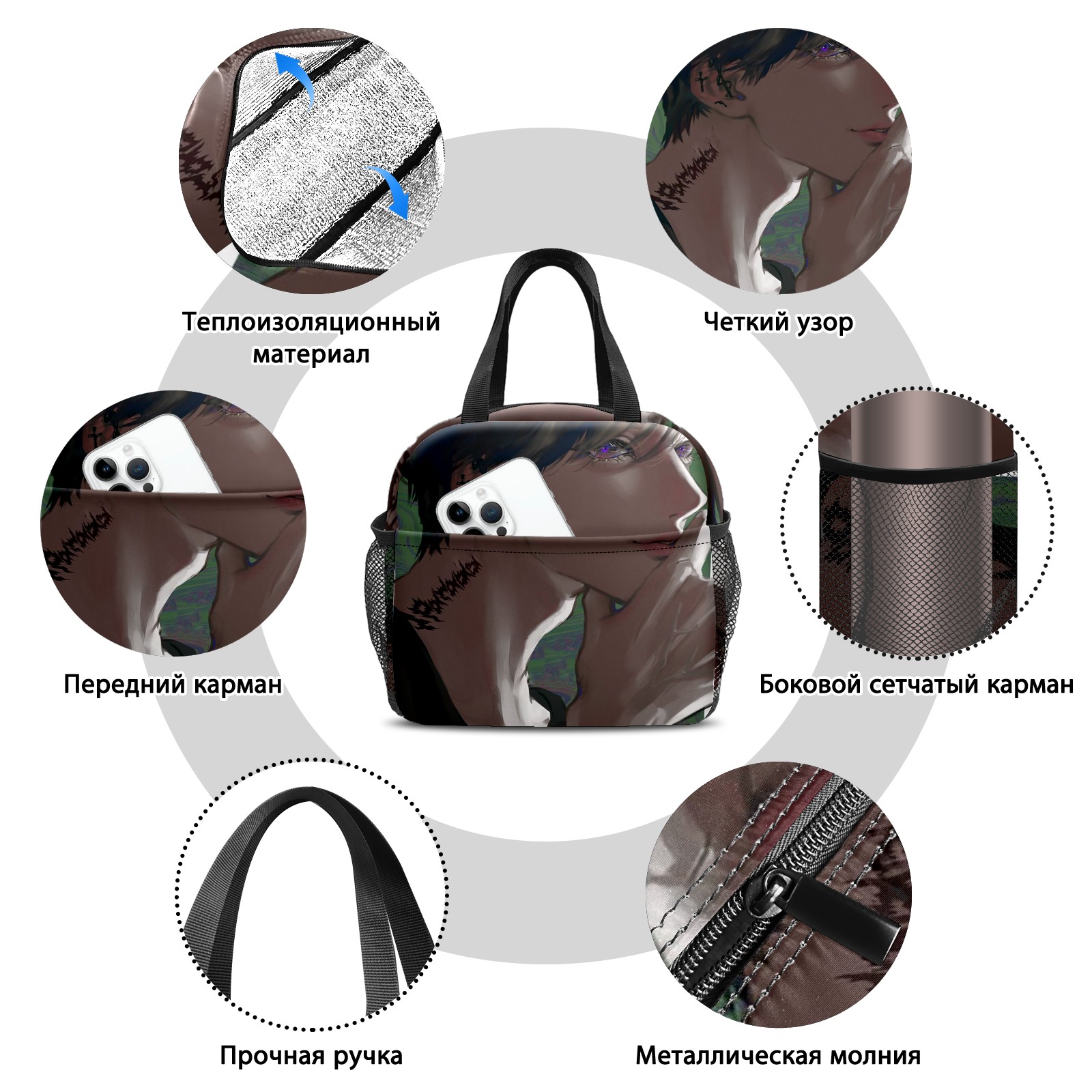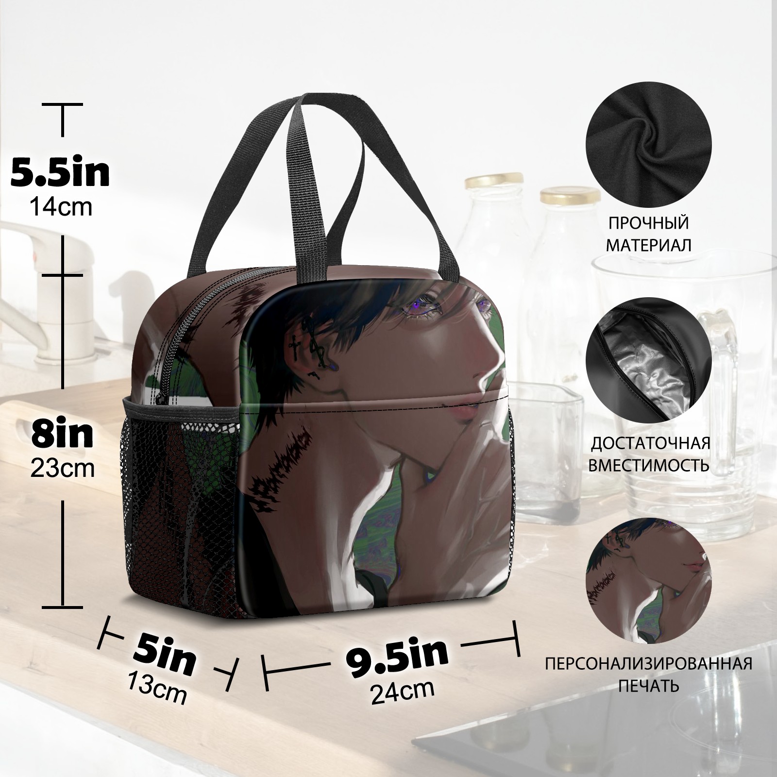 Lunch Bag,Lunch Box for Women Men,Anime Man With Beautiful Side Face Reusable Insulated Lunch Tote,Small Leakproof Cute Lunch Cooler with High Capacity for Work,Picnic,Camping