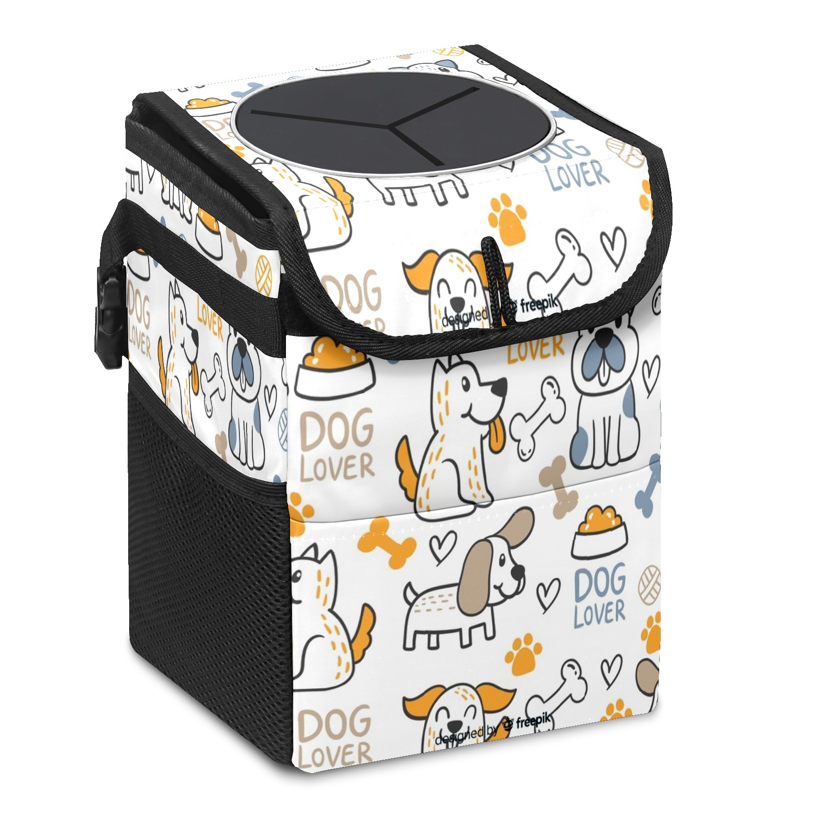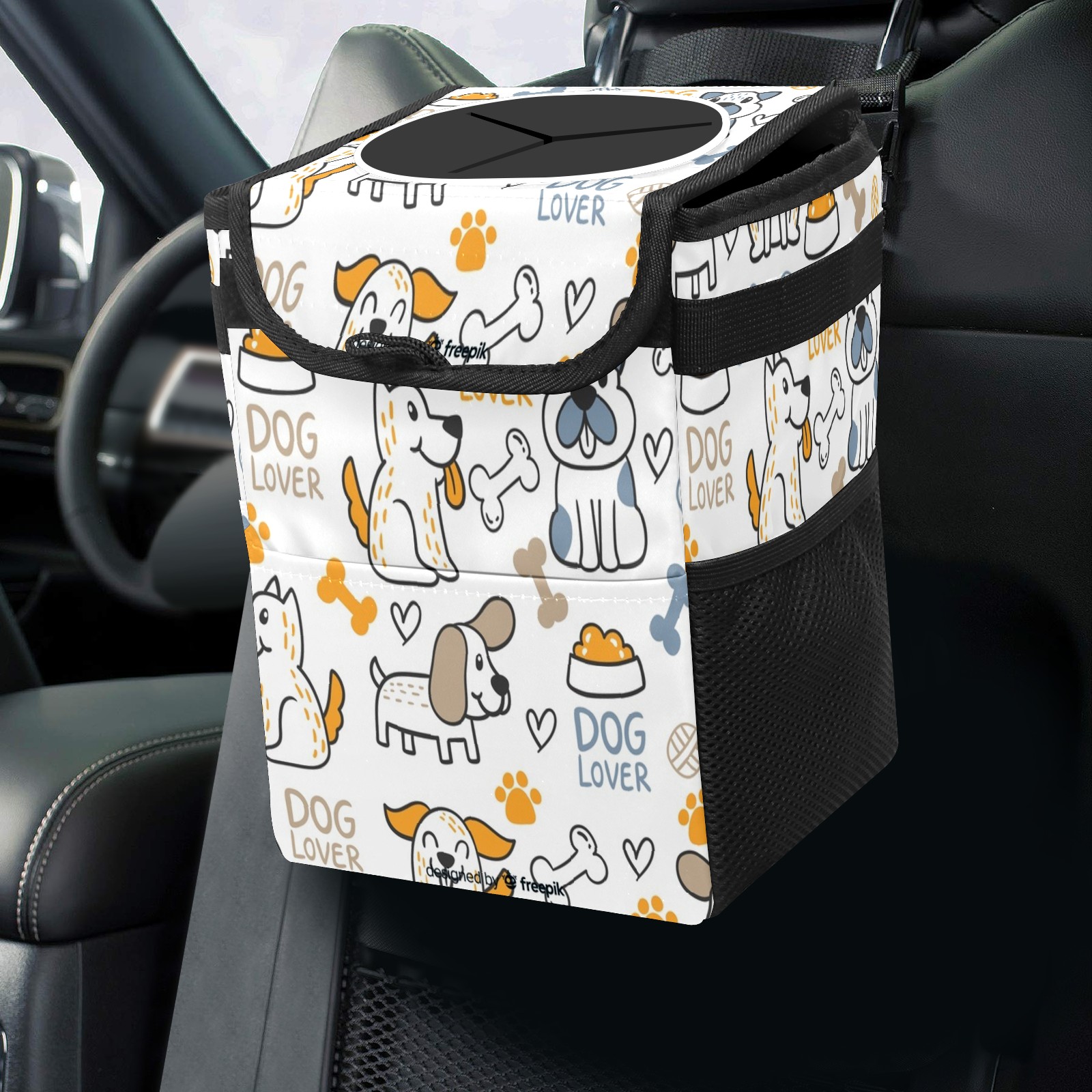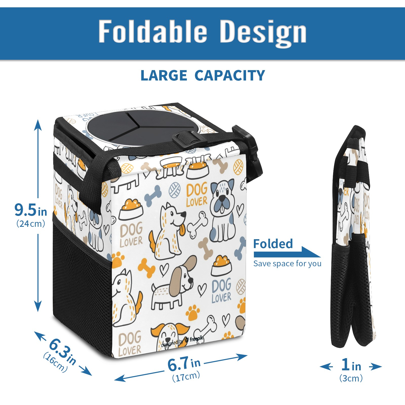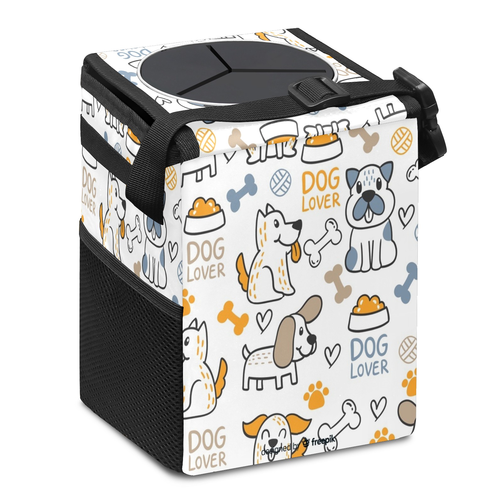 Car Garbage Can — Multi-functional, Lightweight Portable, Reusable Vehicle Trash Can, Waterproof with Sufficient Storage Capacity Colorful Doodle Dogs Words Pattern
