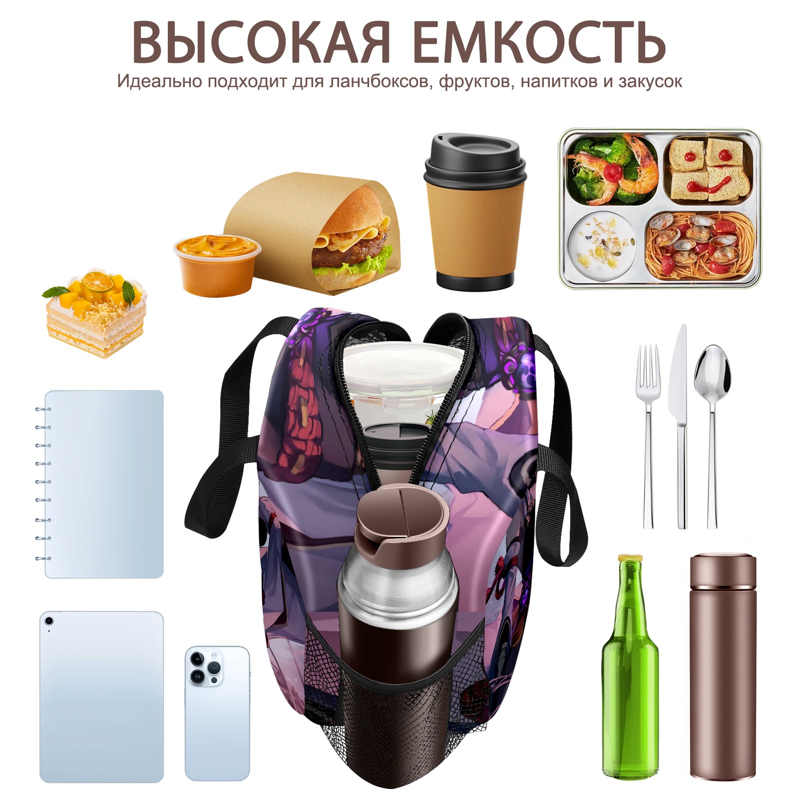 Lunch Bag,Lunch Box for Women Men,Anime Girls Looking Into The Distance Reusable Insulated Lunch Tote,Small Leakproof Cute Lunch Cooler with High Capacity for Work,Picnic,Camping