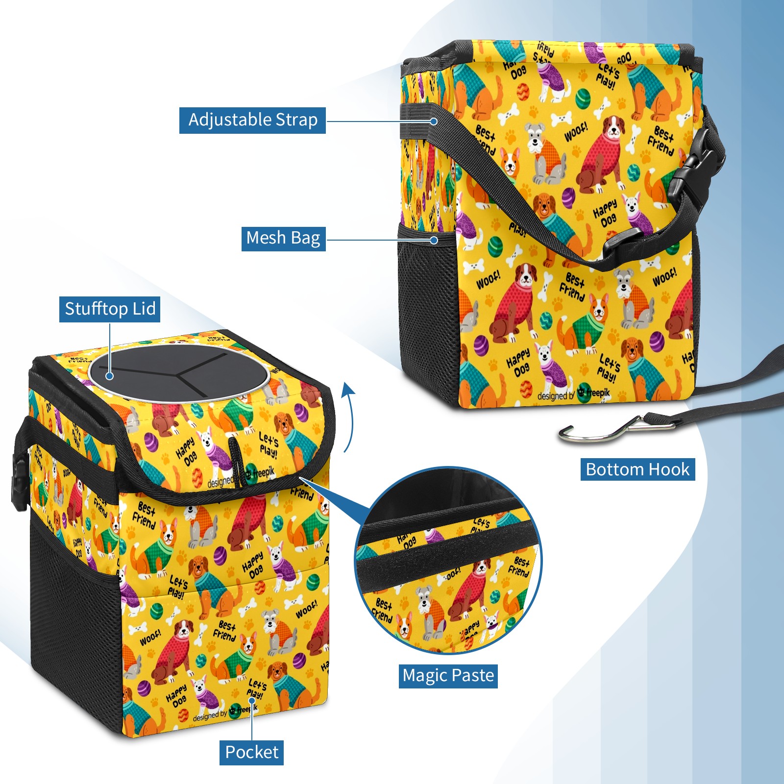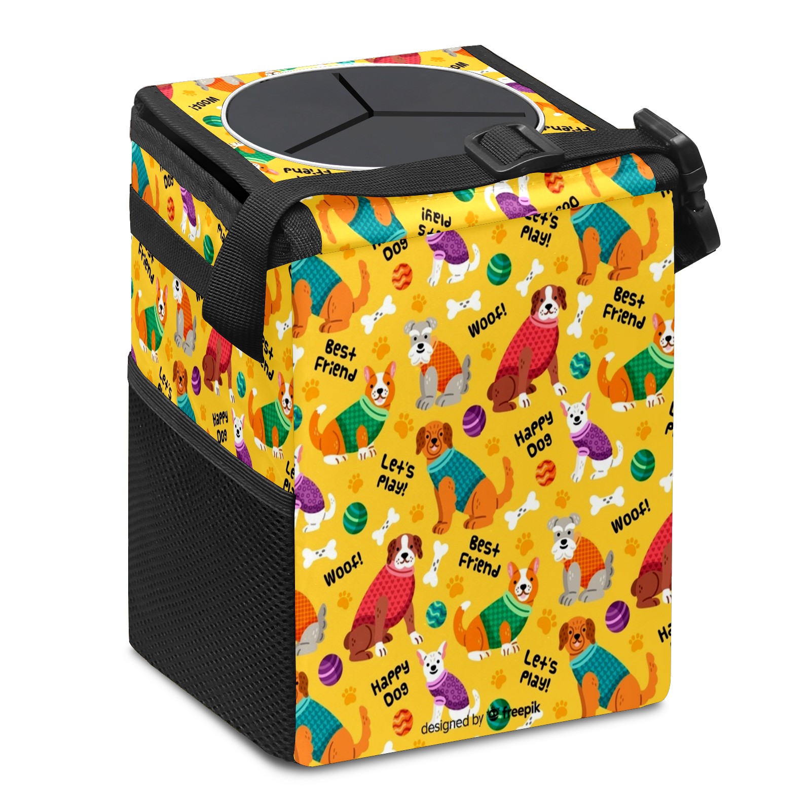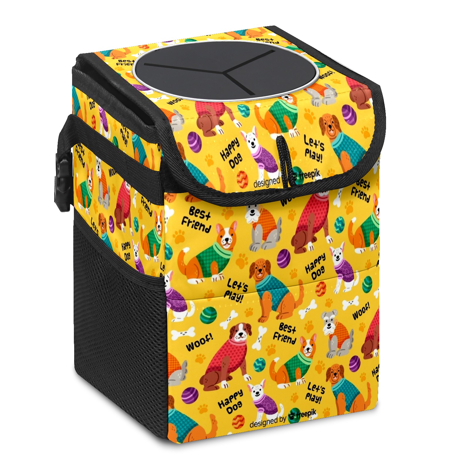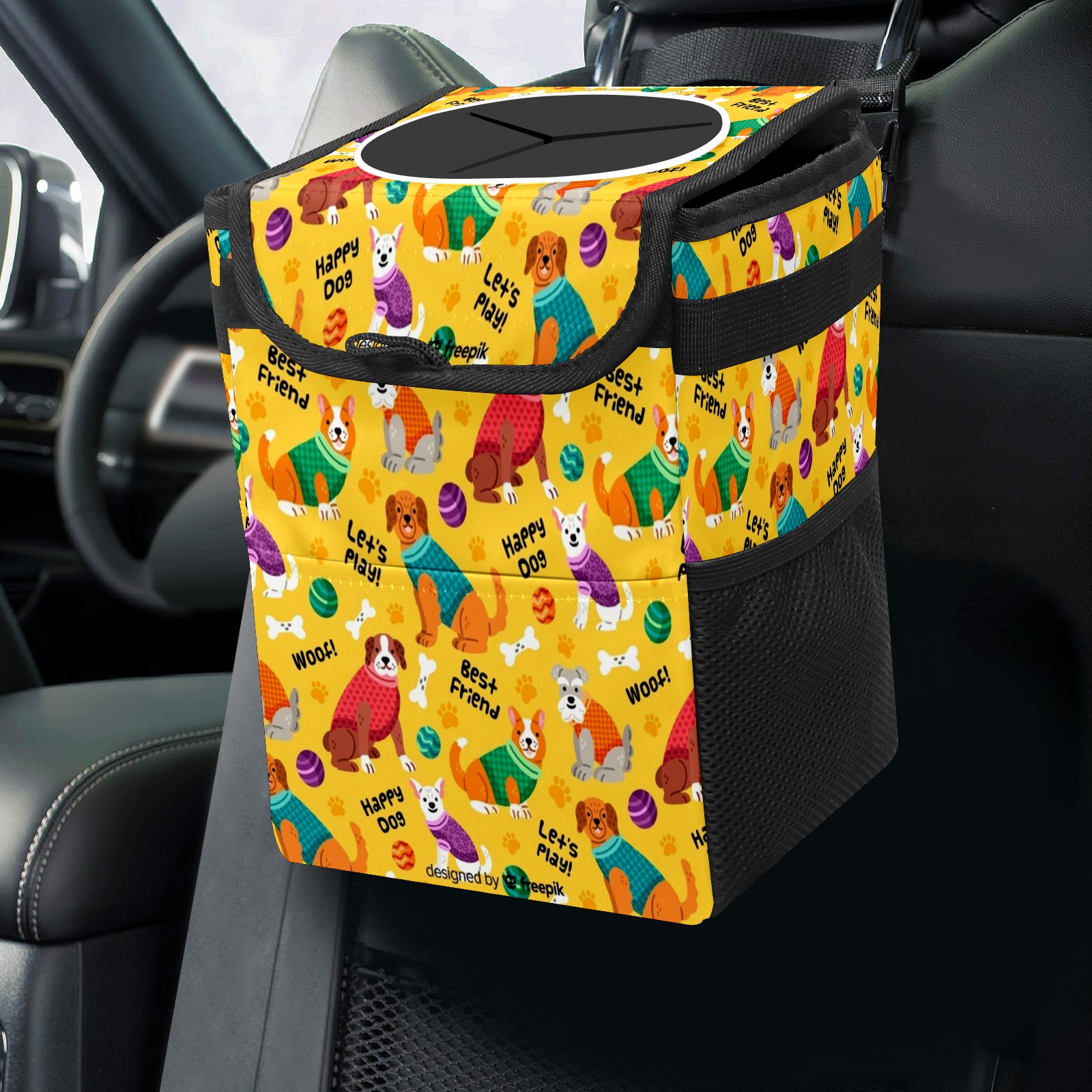 Car Garbage Can — Multi-functional, Lightweight Portable, Reusable Vehicle Trash Can, Waterproof with Sufficient Storage Capacity Colorful Dogs Pattern