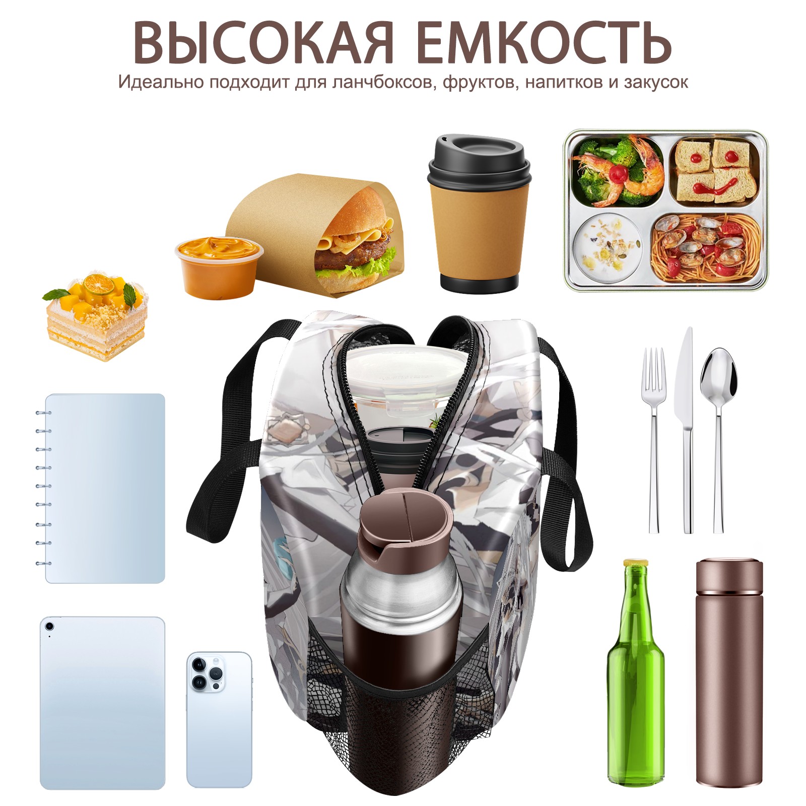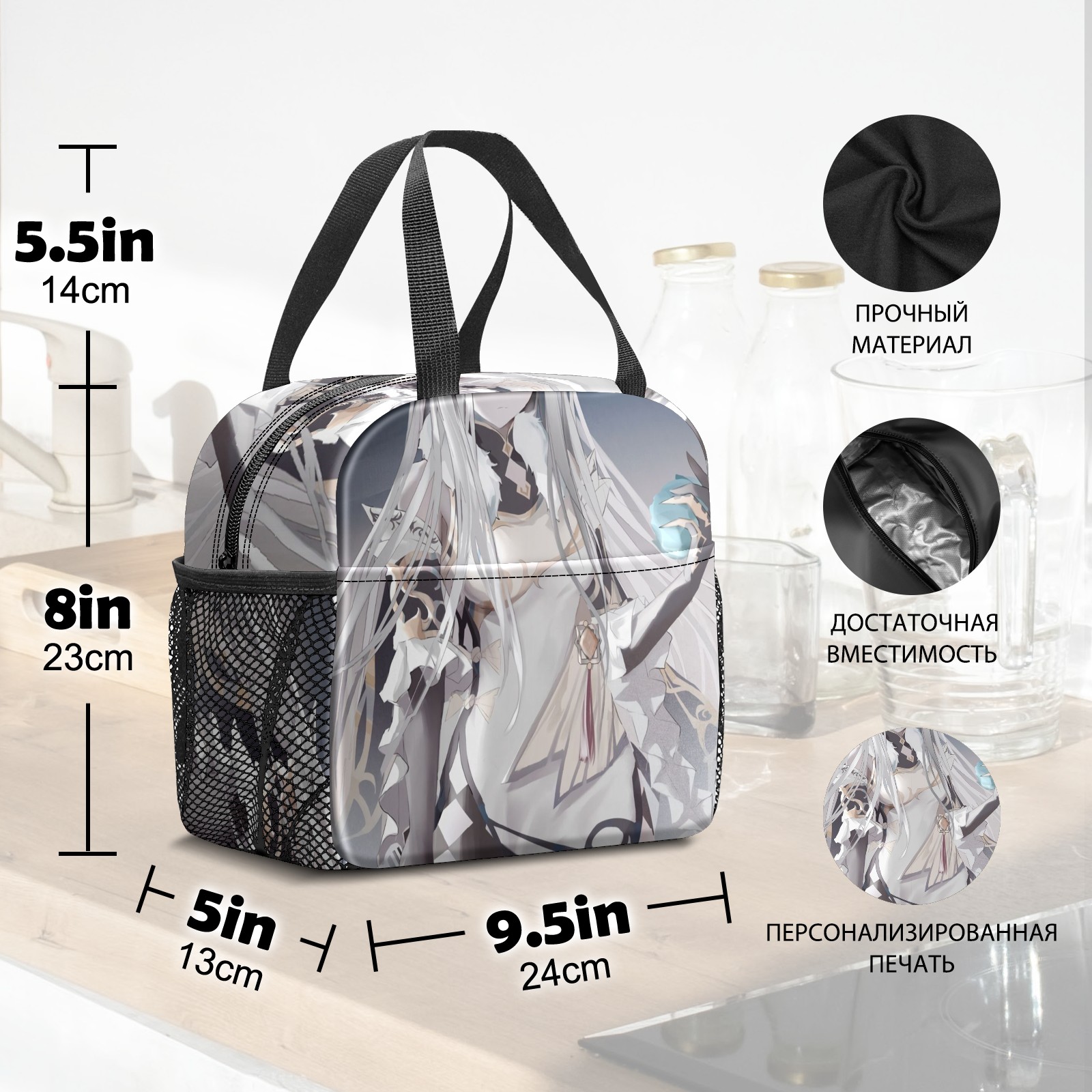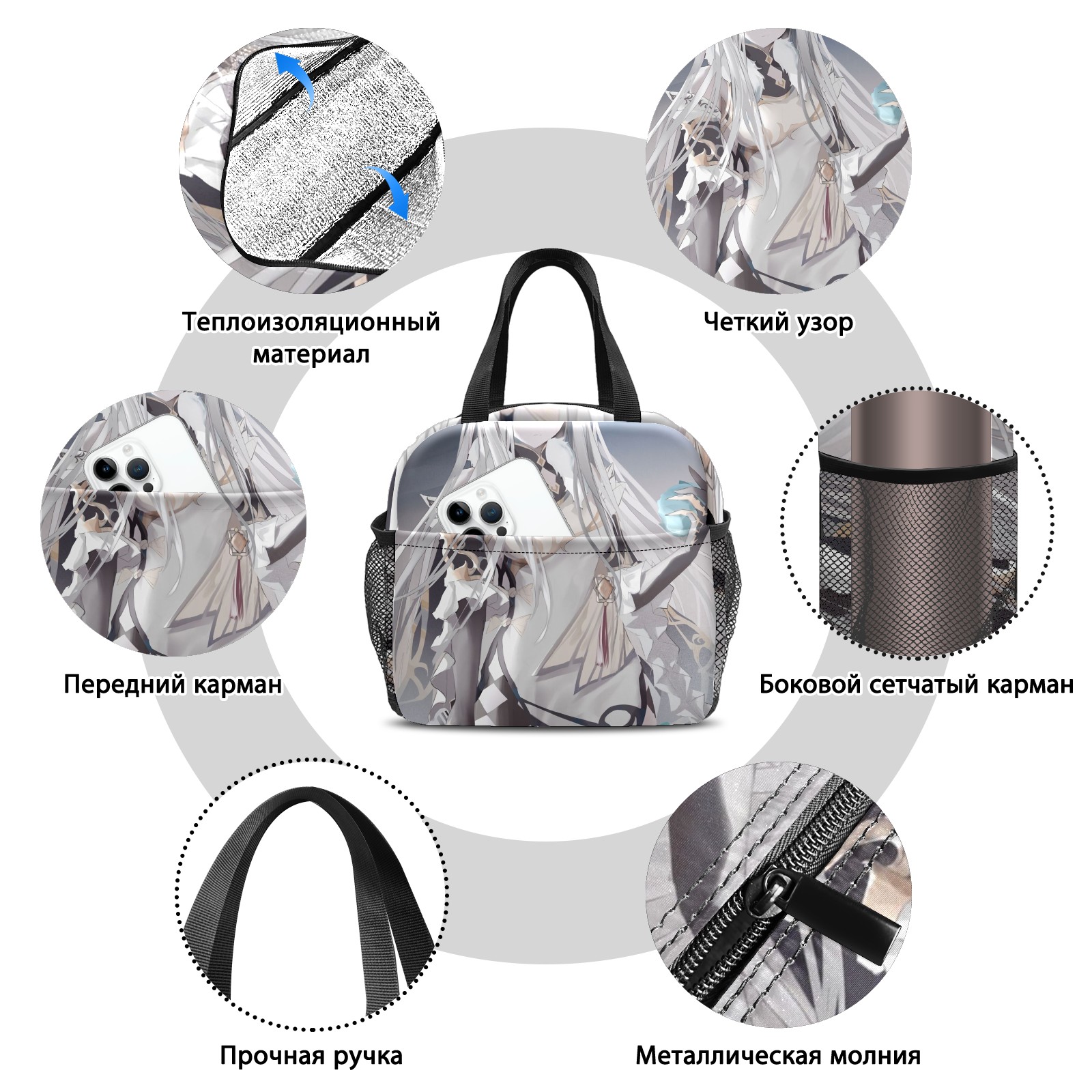 Lunch Bag,Lunch Box for Women Men,Anime Girl With White Long Hair Reusable Insulated Lunch Tote,Small Leakproof Cute Lunch Cooler with High Capacity for Work,Picnic,Camping