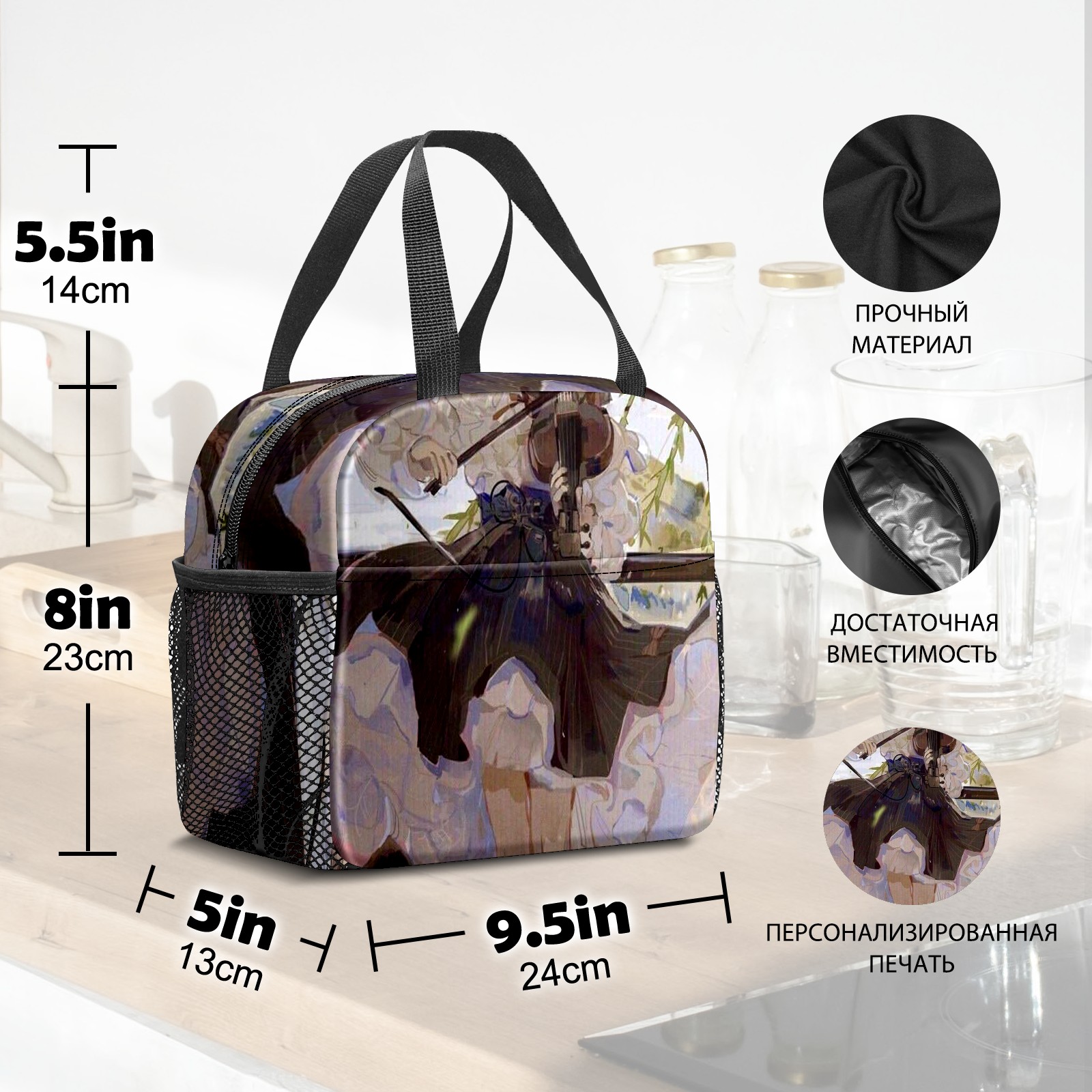 Lunch Bag,Lunch Box for Women Men,Anime Girl With Violin Reusable Insulated Lunch Tote,Small Leakproof Cute Lunch Cooler with High Capacity for Work,Picnic,Camping