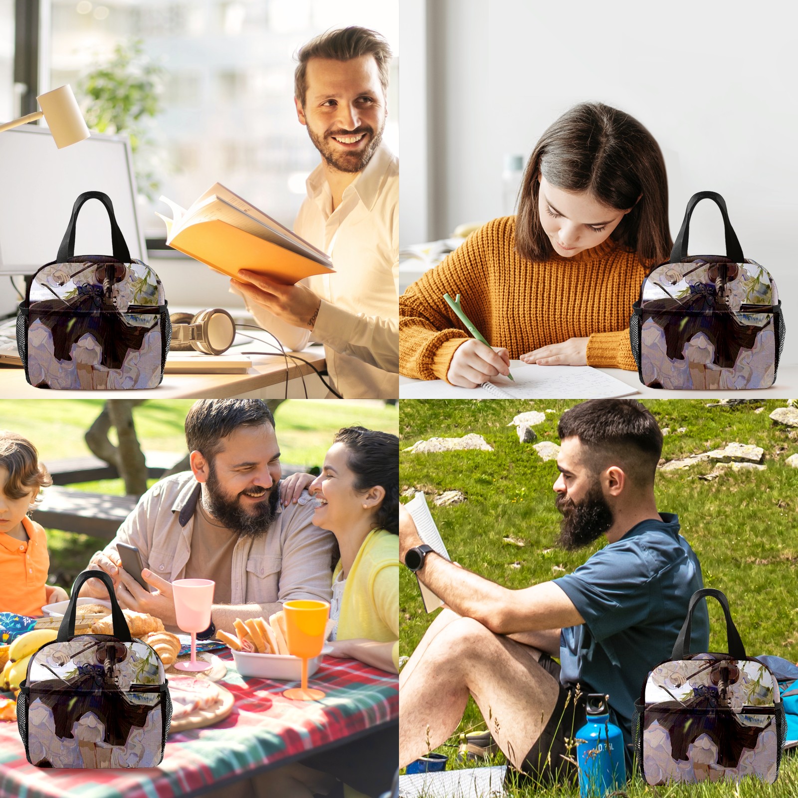• <p>This stylish lunch bag is made of premium 600D waterproof Oxford cloth with thick insulating pearl foam lining and smooth, durable zippers, combining an attractive look with long-lasting daily use. Measuring 9.8*6.7*8.7, it offers ample space with a main zippered compartment and a front pocket to organize containers, food and snacks neatly for easy access. Boasting an extra-thick aluminum foil lining and heat-welded seams, it delivers reliable leak-proof performance and strong insulation to keep food hot or cold for hours, ideal for sandwiches, salads, fruits and more. Lightweight and portable with a sturdily stitched upgraded handle, this reusable lunch bag is a perfect companion for work, camping, picnics, beach trips and outdoor travel, helping you enjoy fresh homemade meals on the go.</p>
