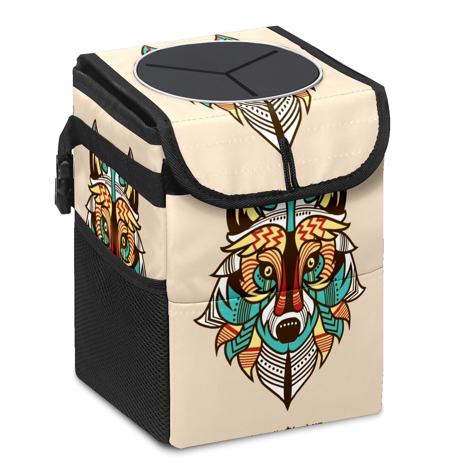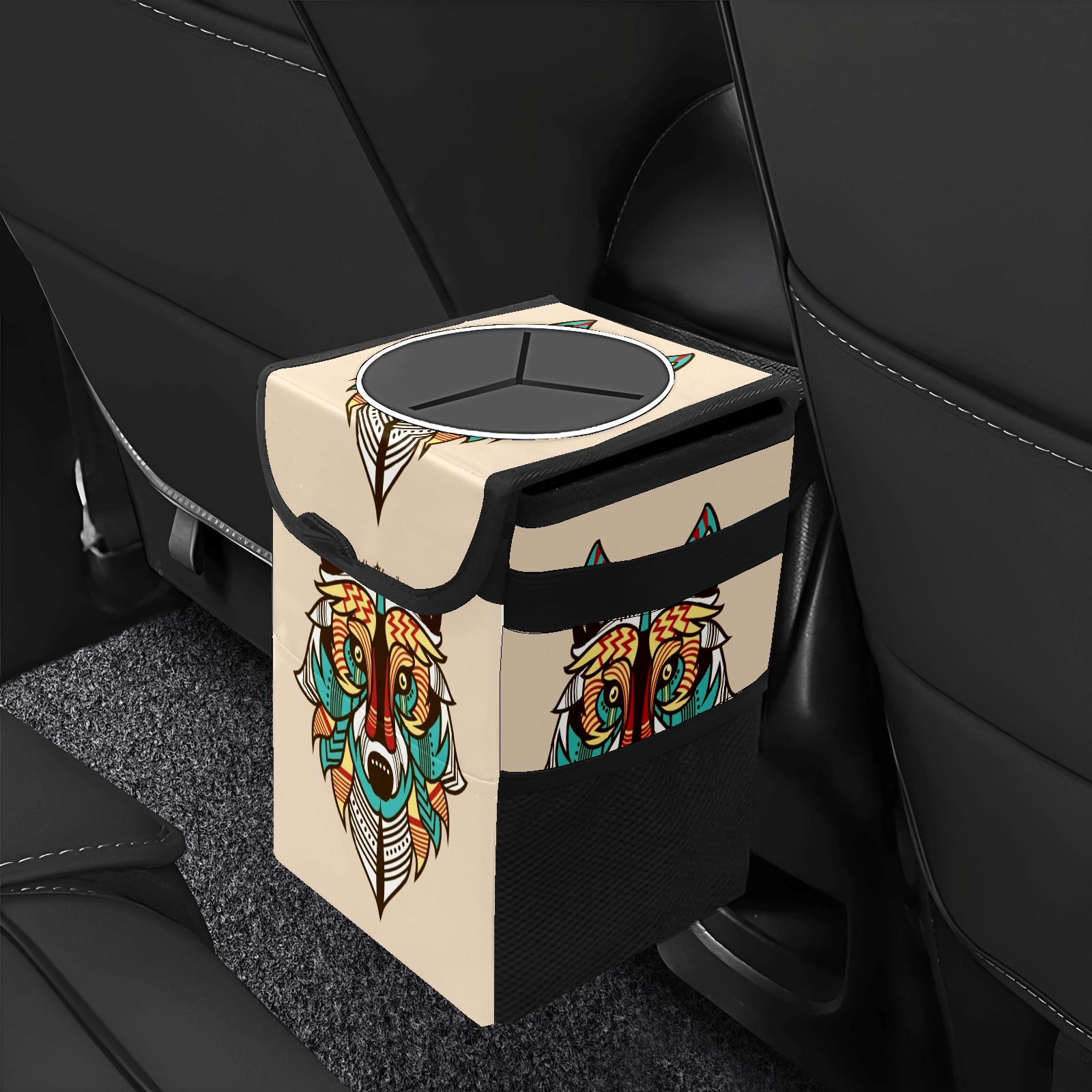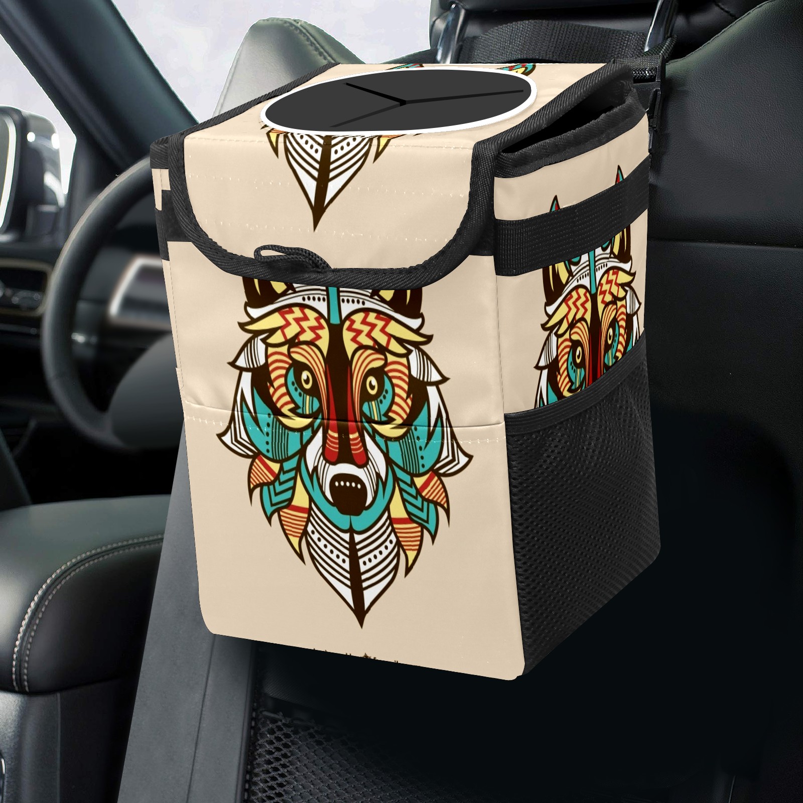 Car Garbage Can — Multi-functional, Lightweight Portable, Reusable Vehicle Trash Can, Waterproof with Sufficient Storage Capacity Colored Wolf Background