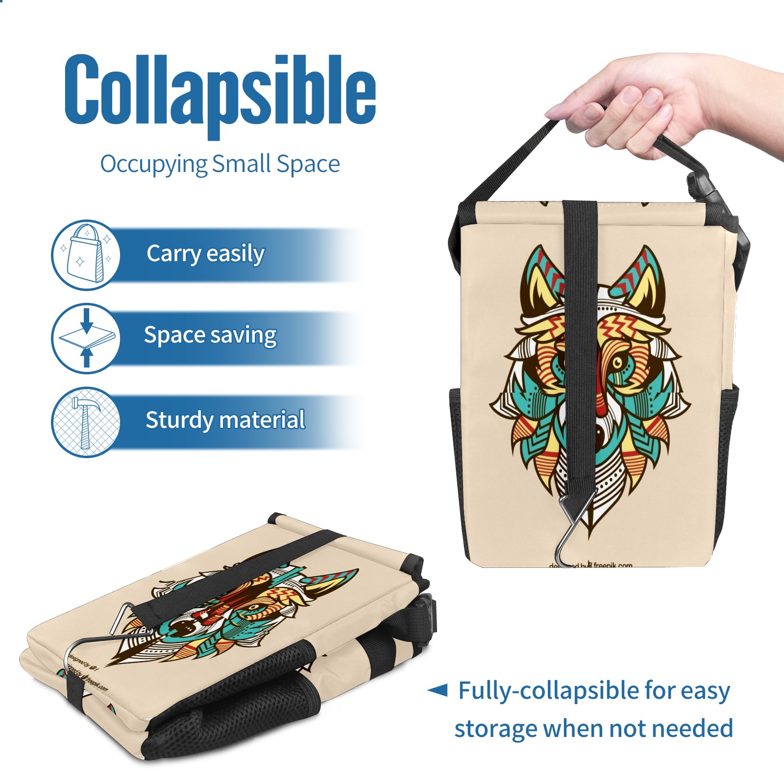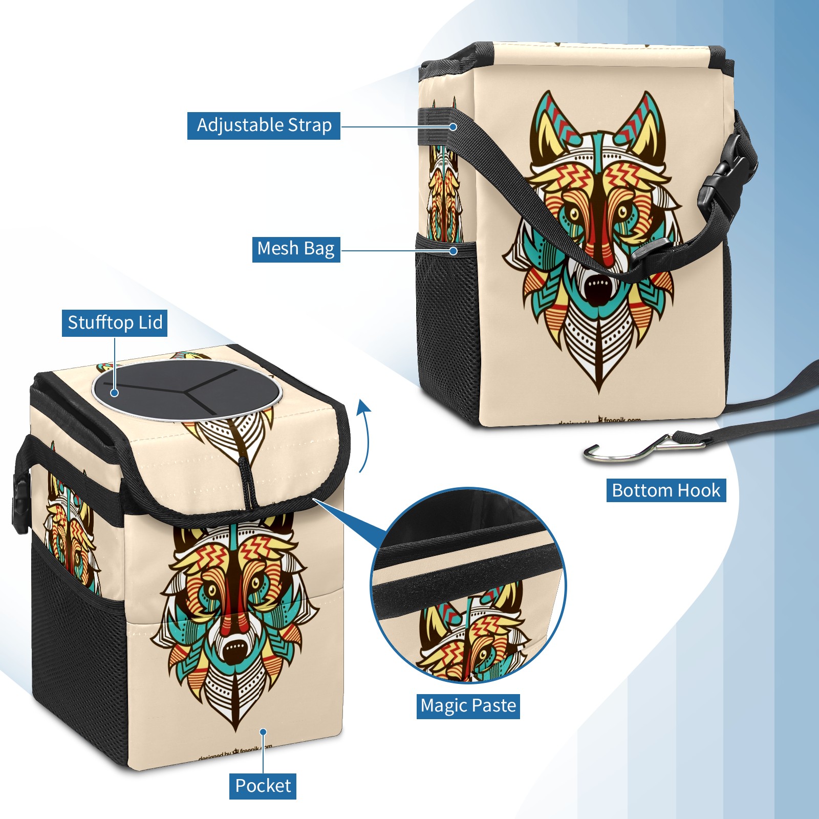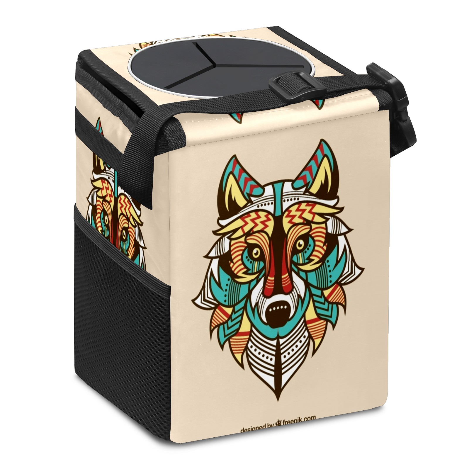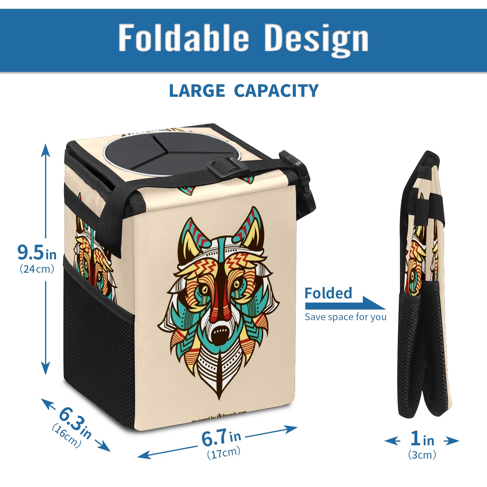 Car Garbage Can — Multi-functional, Lightweight Portable, Reusable Vehicle Trash Can, Waterproof with Sufficient Storage Capacity Colored Wolf Background