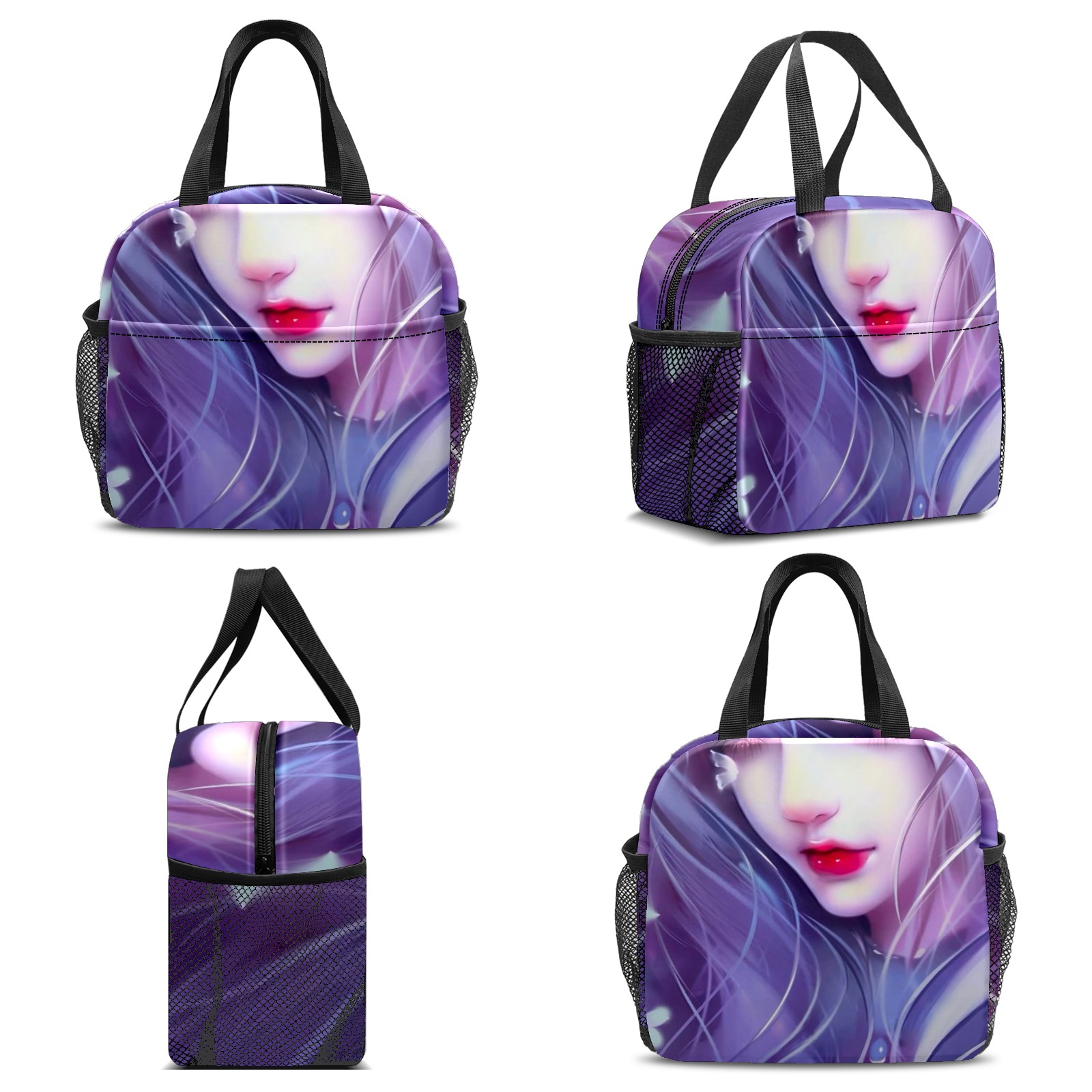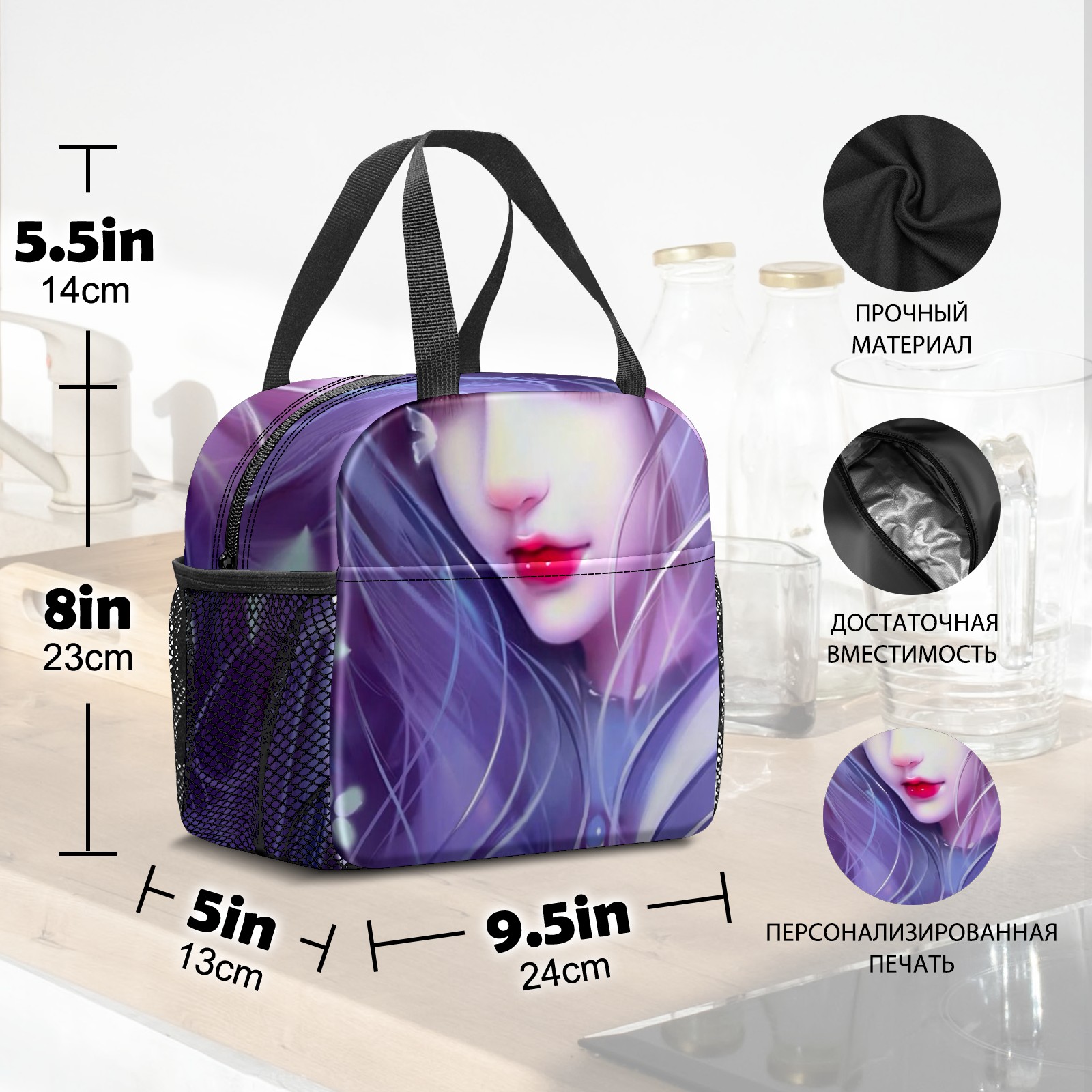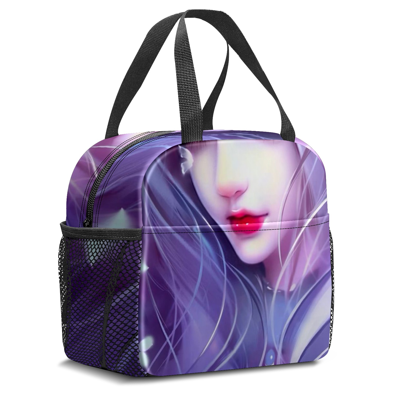 Lunch Bag,Lunch Box for Women Men,Anime Girl With Big Eyes Purple Hair Reusable Insulated Lunch Tote,Small Leakproof Cute Lunch Cooler with High Capacity for Work,Picnic,Camping