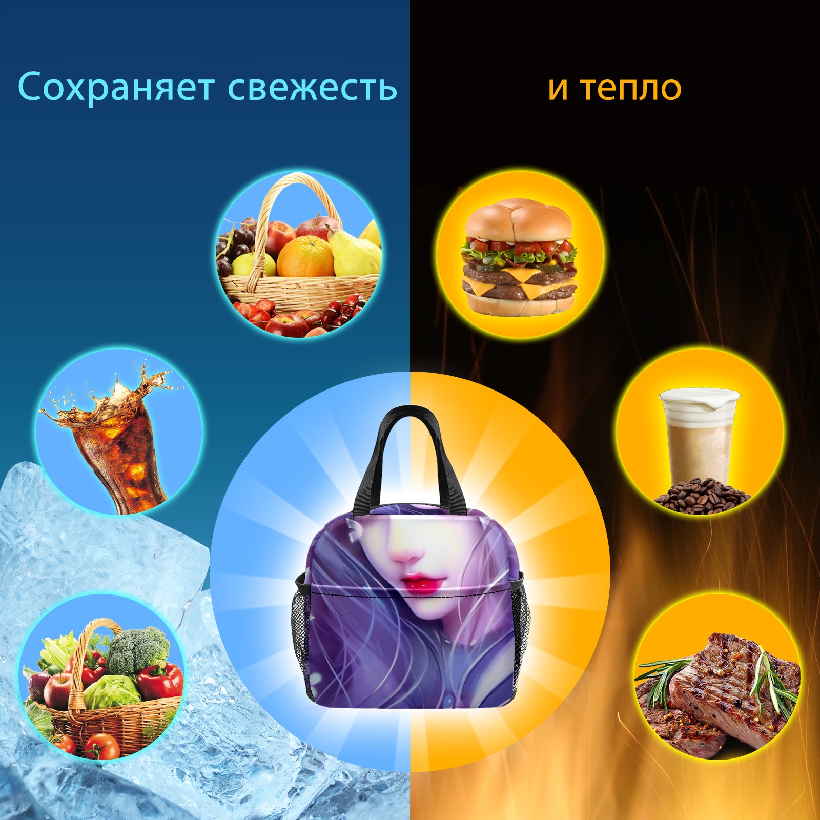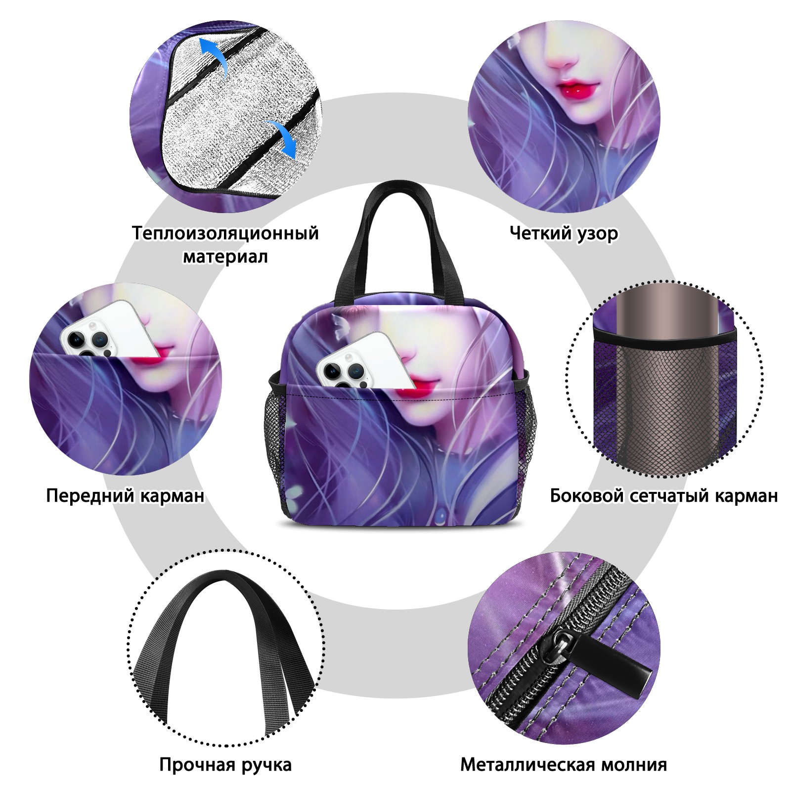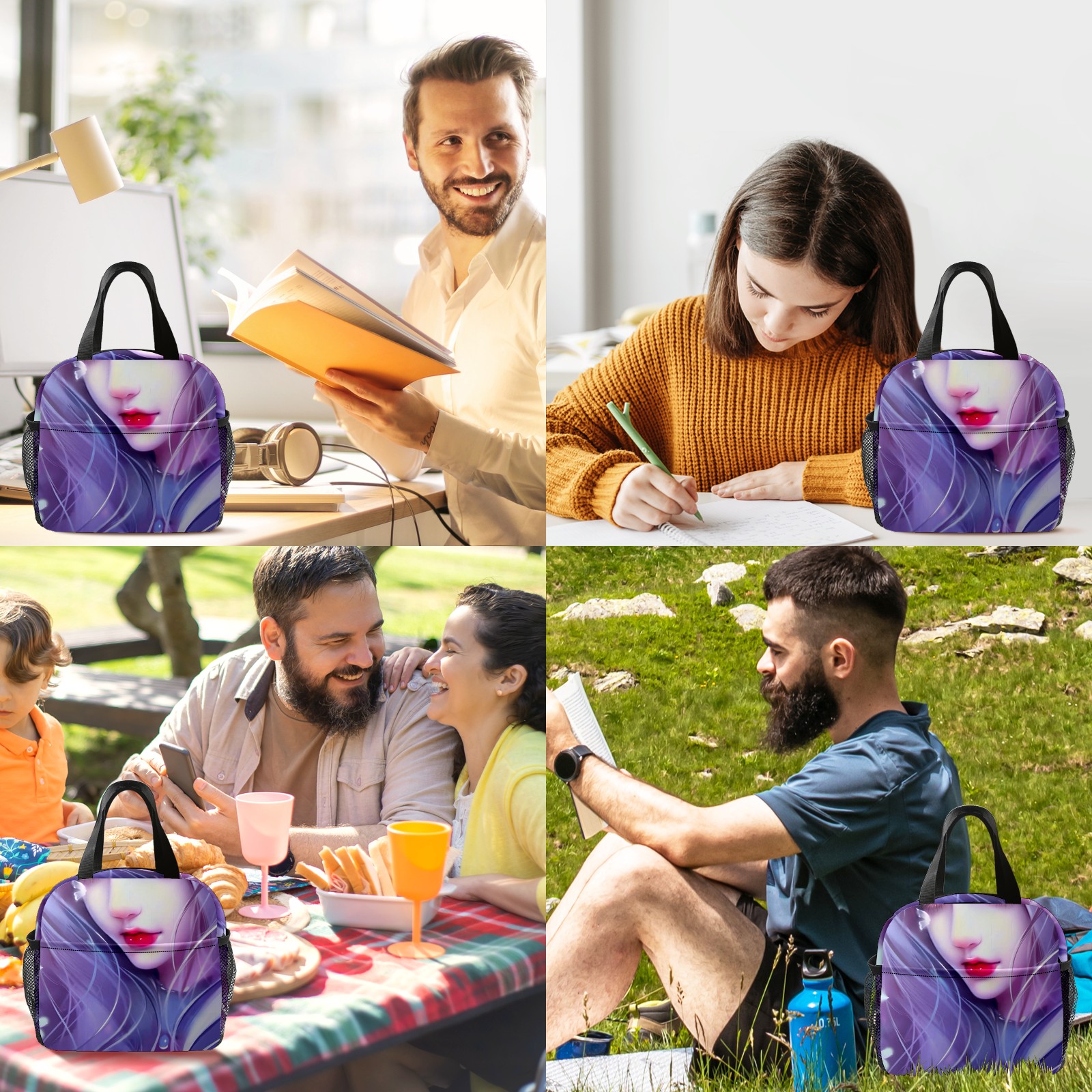 Lunch Bag,Lunch Box for Women Men,Anime Girl With Big Eyes Purple Hair Reusable Insulated Lunch Tote,Small Leakproof Cute Lunch Cooler with High Capacity for Work,Picnic,Camping