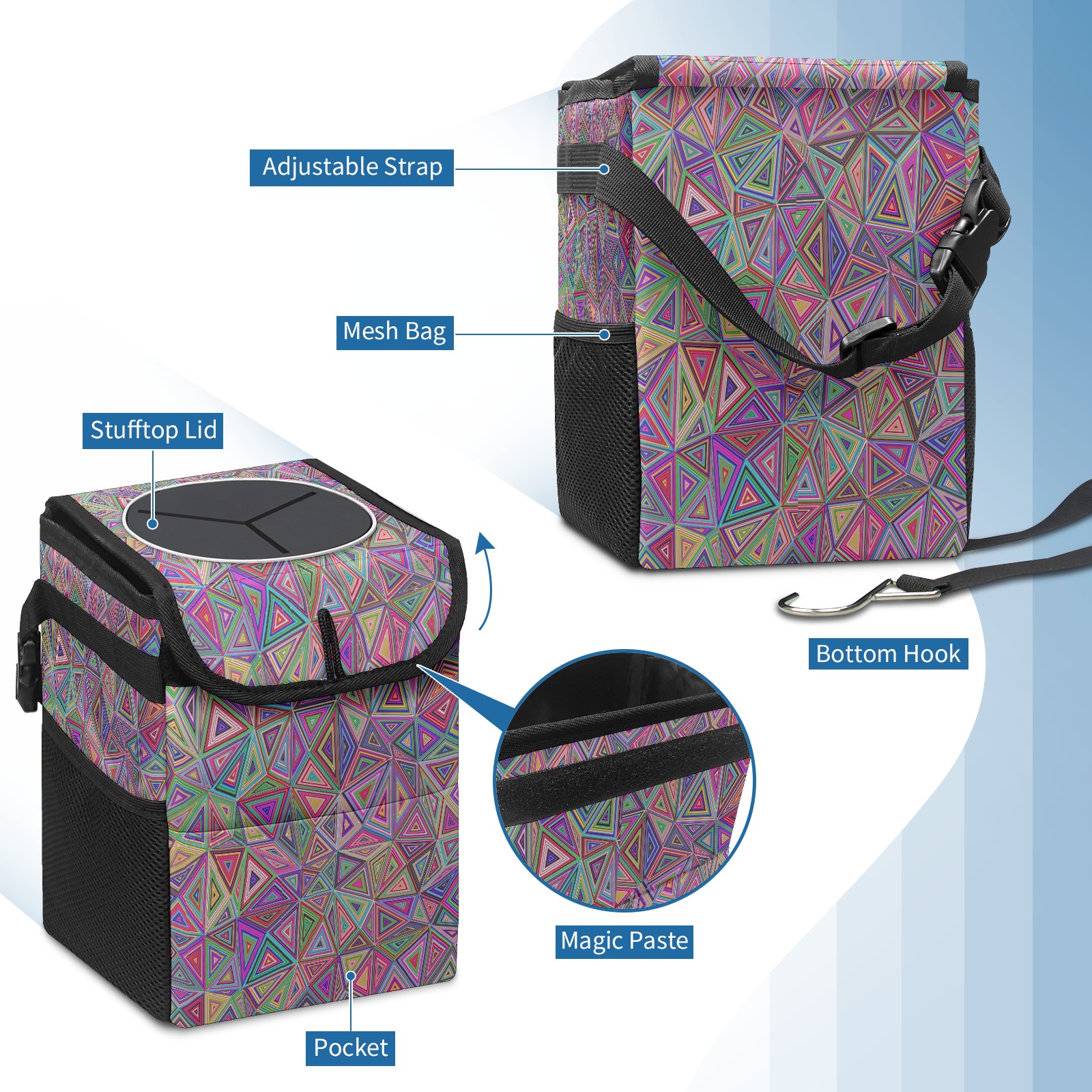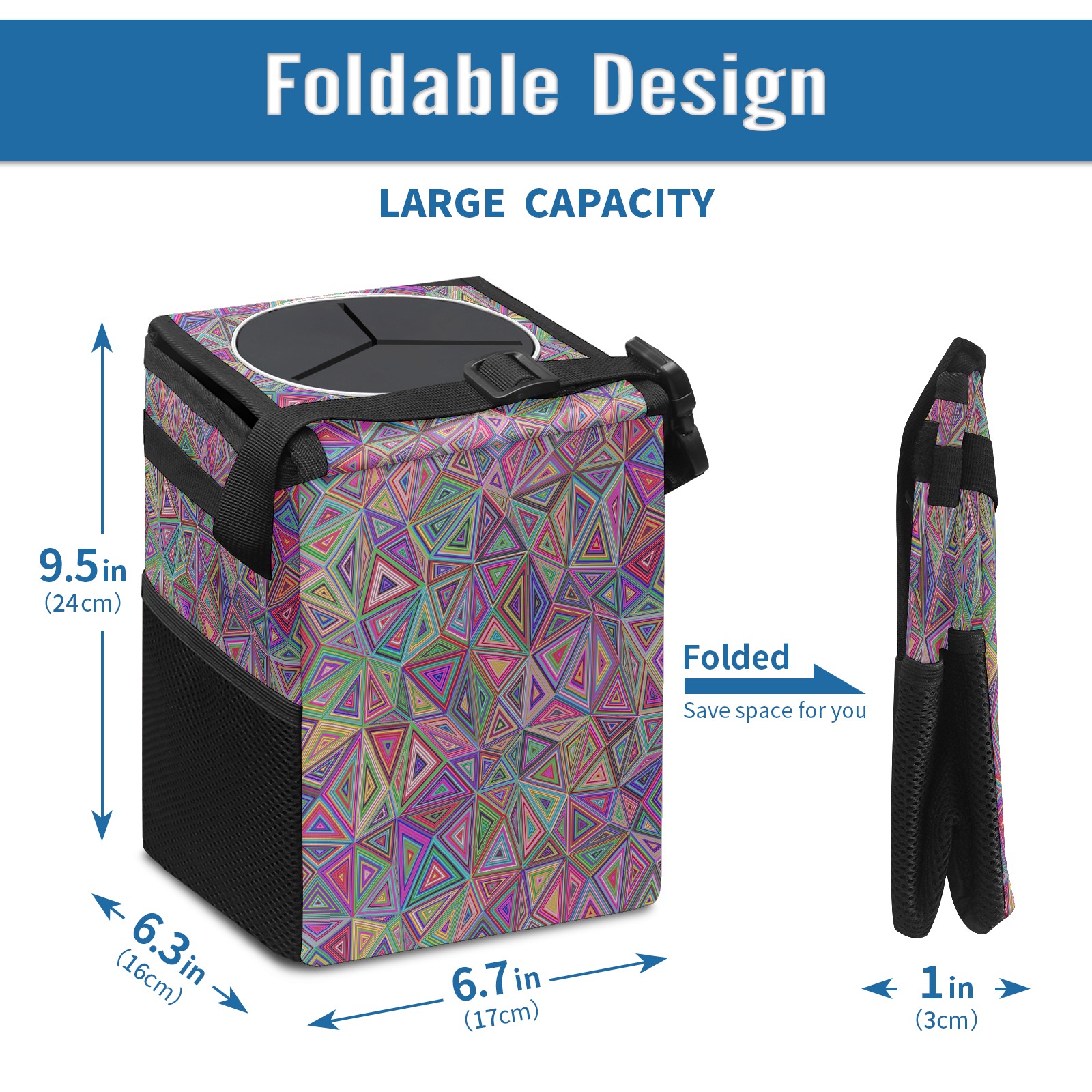 Car Garbage Can — Multi-functional, Lightweight Portable, Reusable Vehicle Trash Can, Waterproof with Sufficient Storage Capacity 三角 マルチ きれい