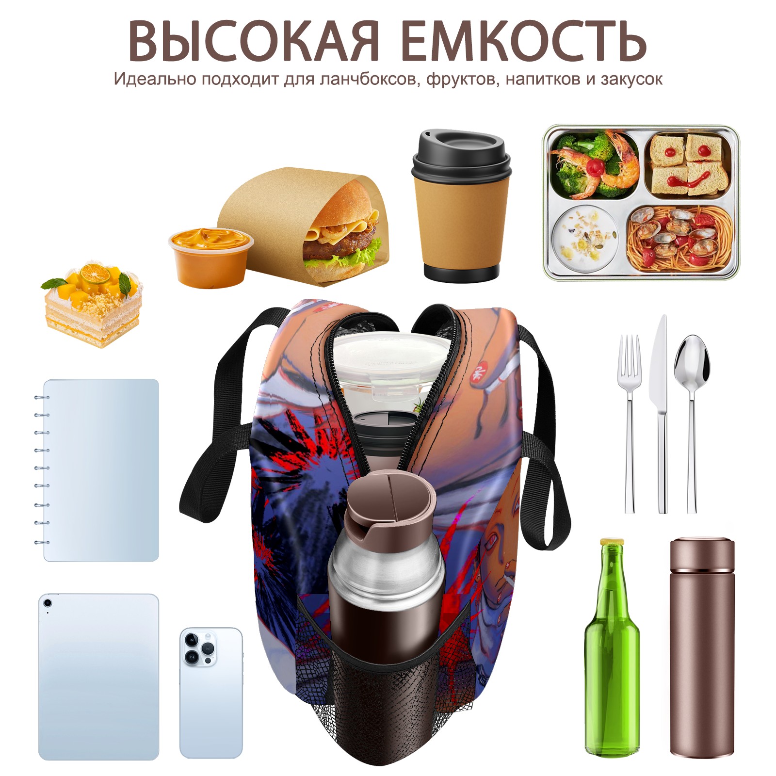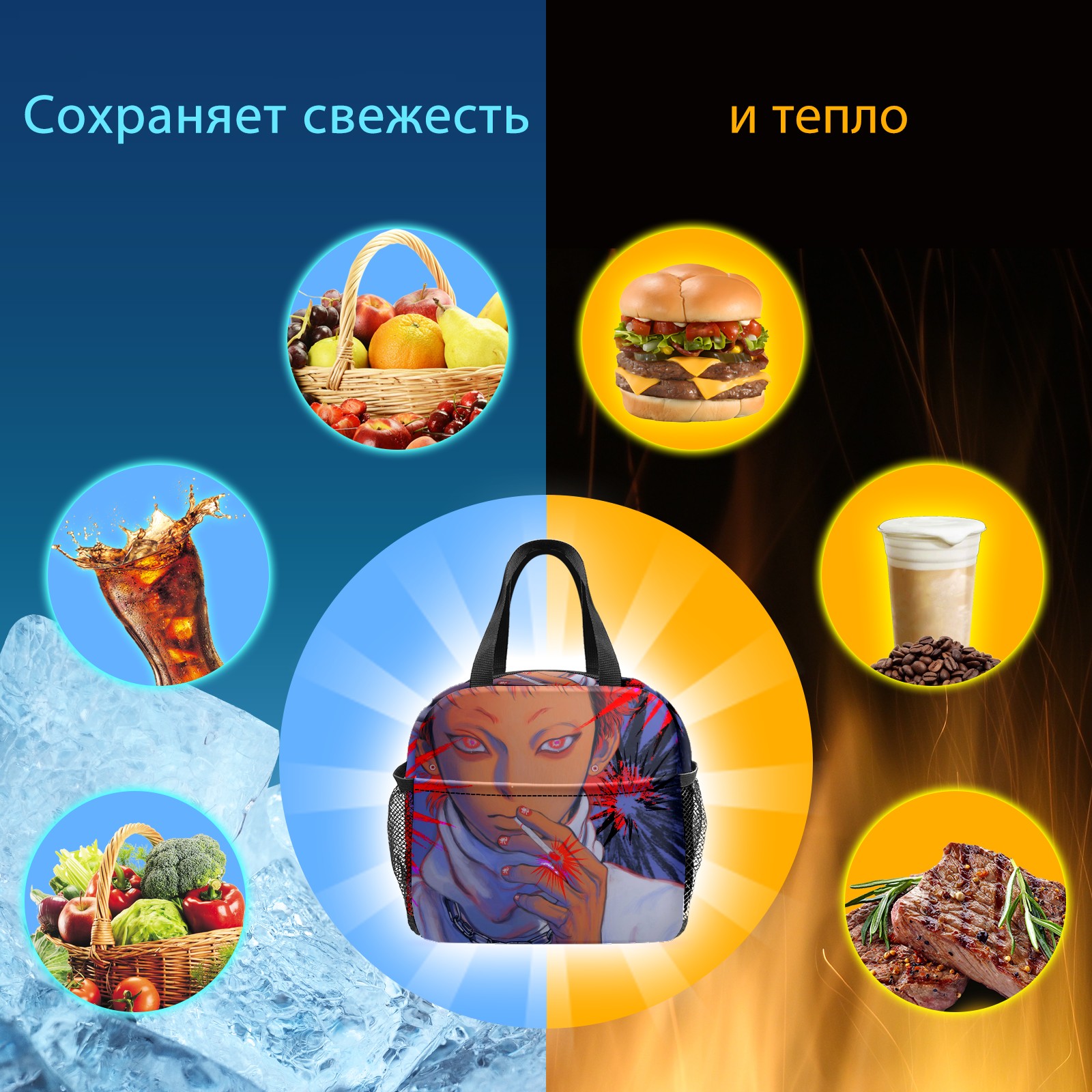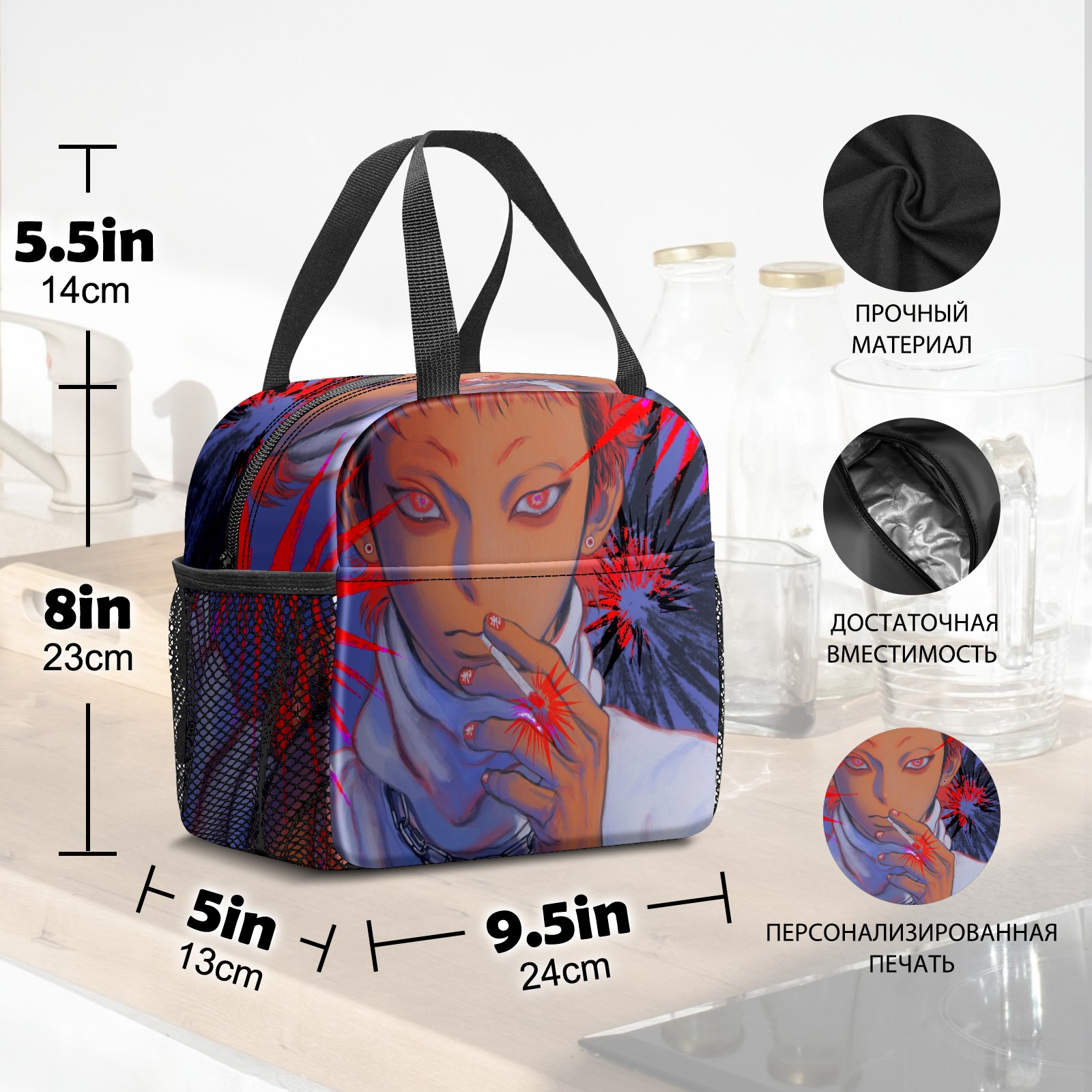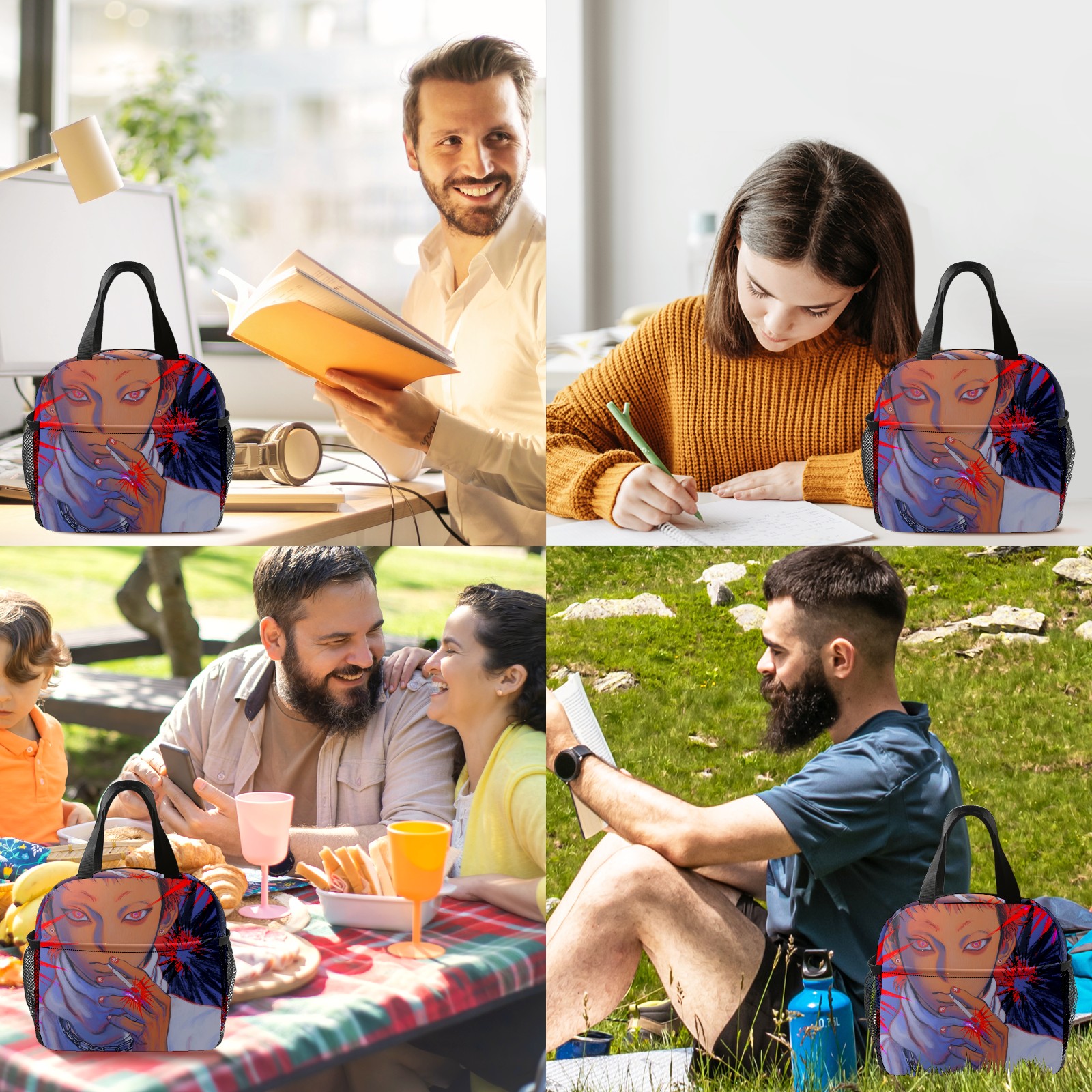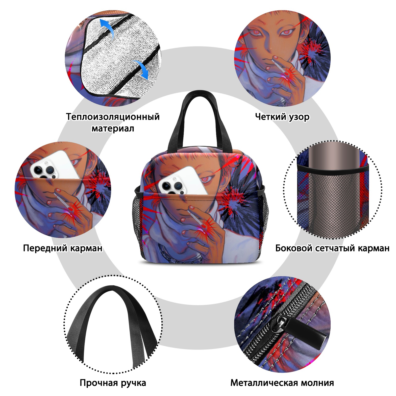 Lunch Bag,Lunch Box for Women Men,Anime Boy Smoking A Cigarette Reusable Insulated Lunch Tote,Small Leakproof Cute Lunch Cooler with High Capacity for Work,Picnic,Camping