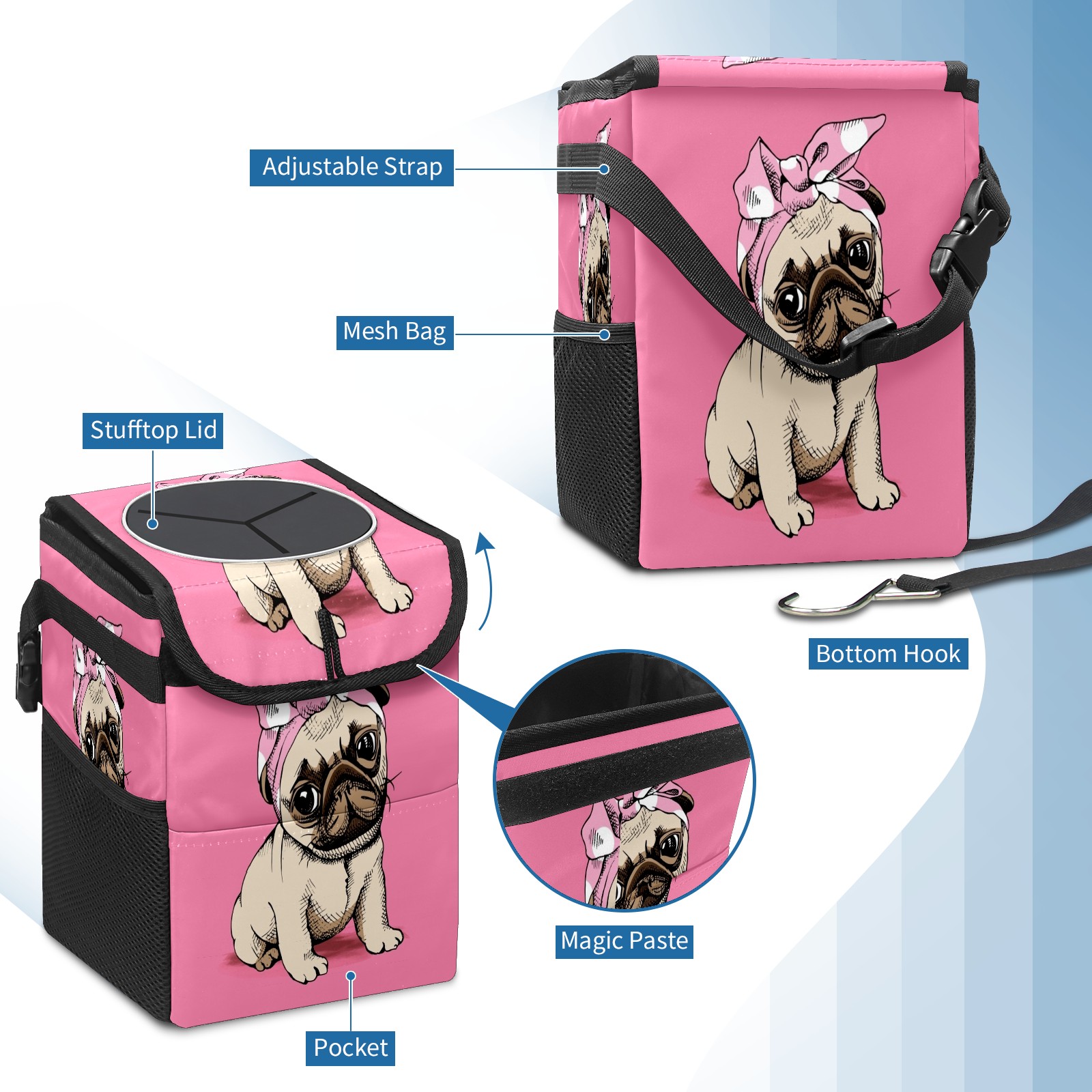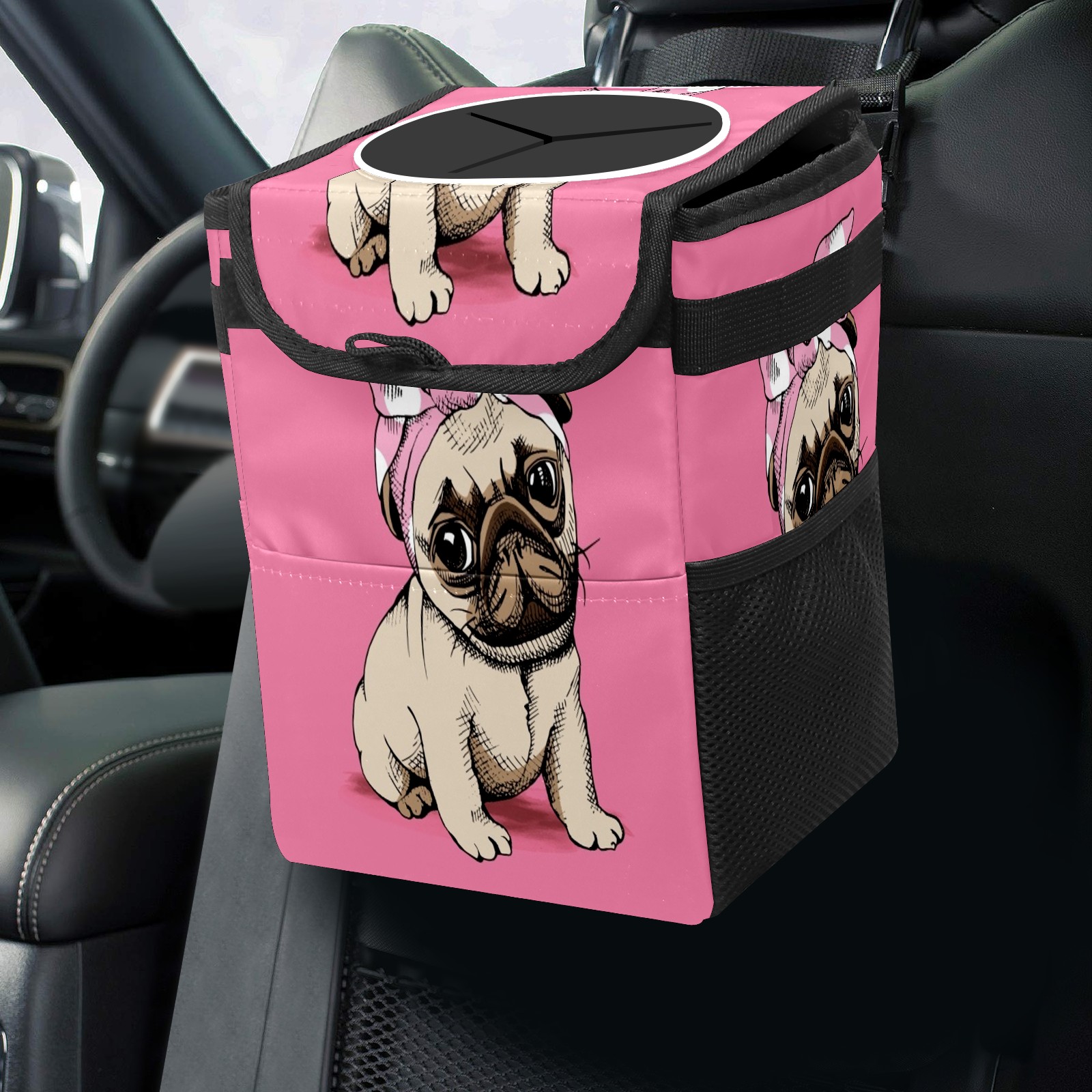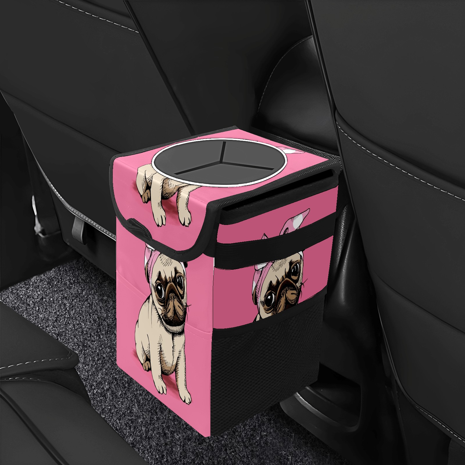Car Garbage Can — Multi-functional, Lightweight Portable, Reusable Vehicle Trash Can, Waterproof with Sufficient Storage Capacity Puppy Pug Pink Pattern