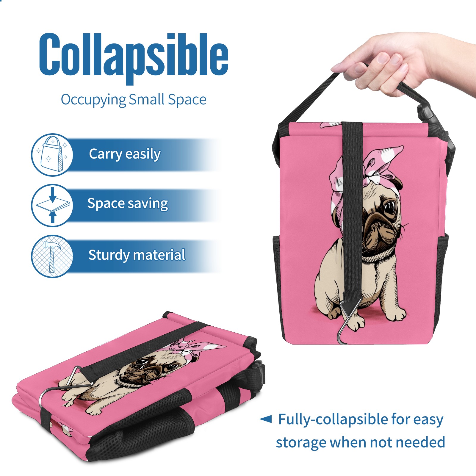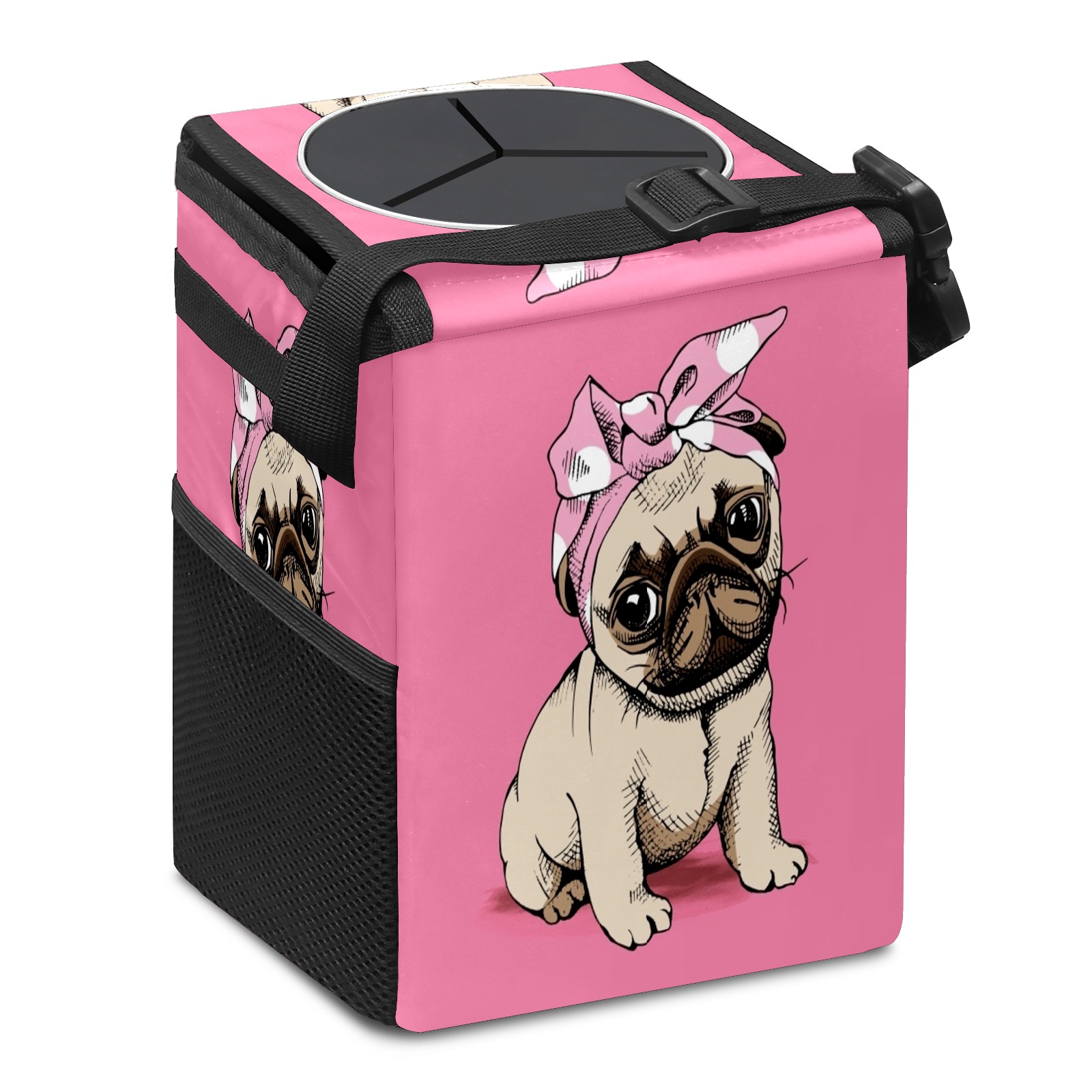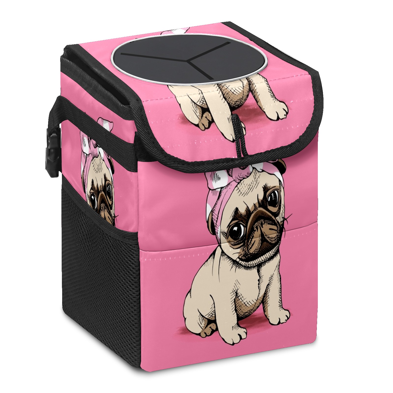 Car Garbage Can — Multi-functional, Lightweight Portable, Reusable Vehicle Trash Can, Waterproof with Sufficient Storage Capacity Puppy Pug Pink Pattern