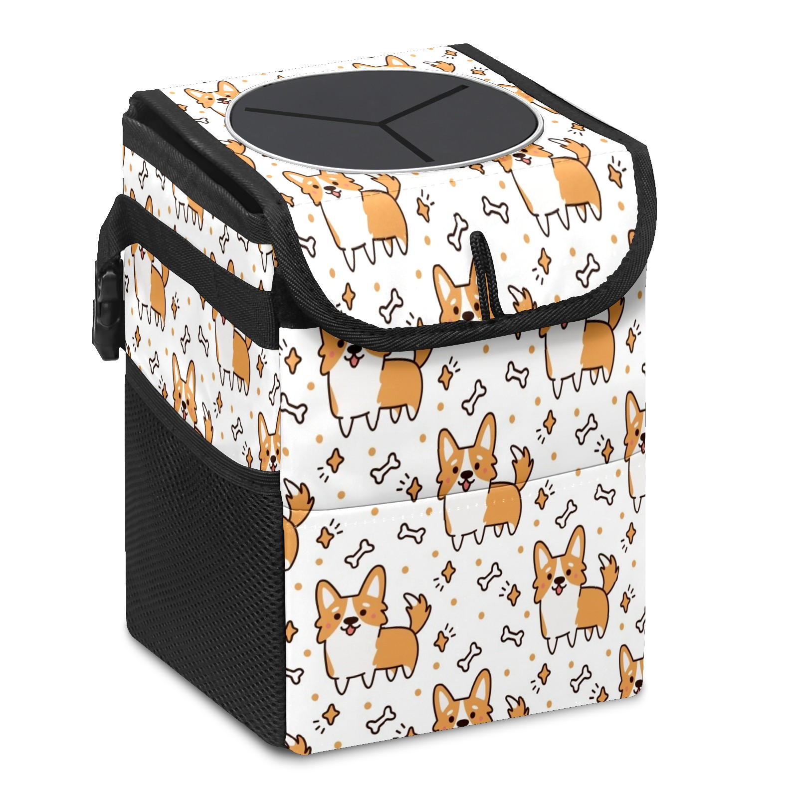 Car Garbage Can — Multi-functional, Lightweight Portable, Reusable Vehicle Trash Can, Waterproof with Sufficient Storage Capacity Cute Corgi