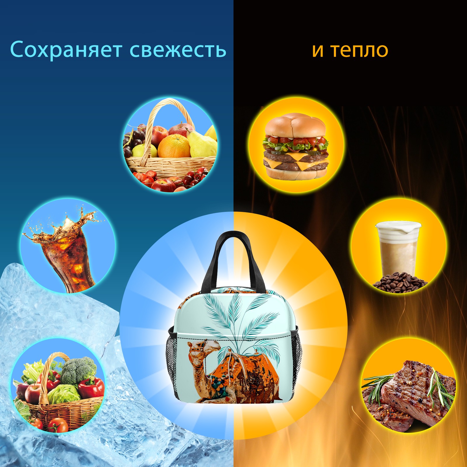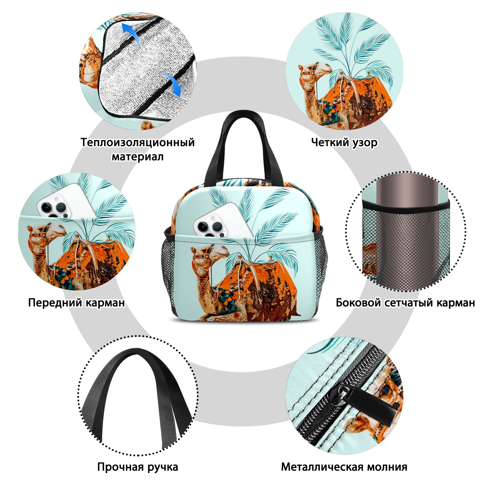Lunch Bag,Lunch Box for Women Men,Camel Ride Reusable Insulated Lunch Tote,Small Leakproof Cute Lunch Cooler with High Capacity for Work,Picnic,Camping