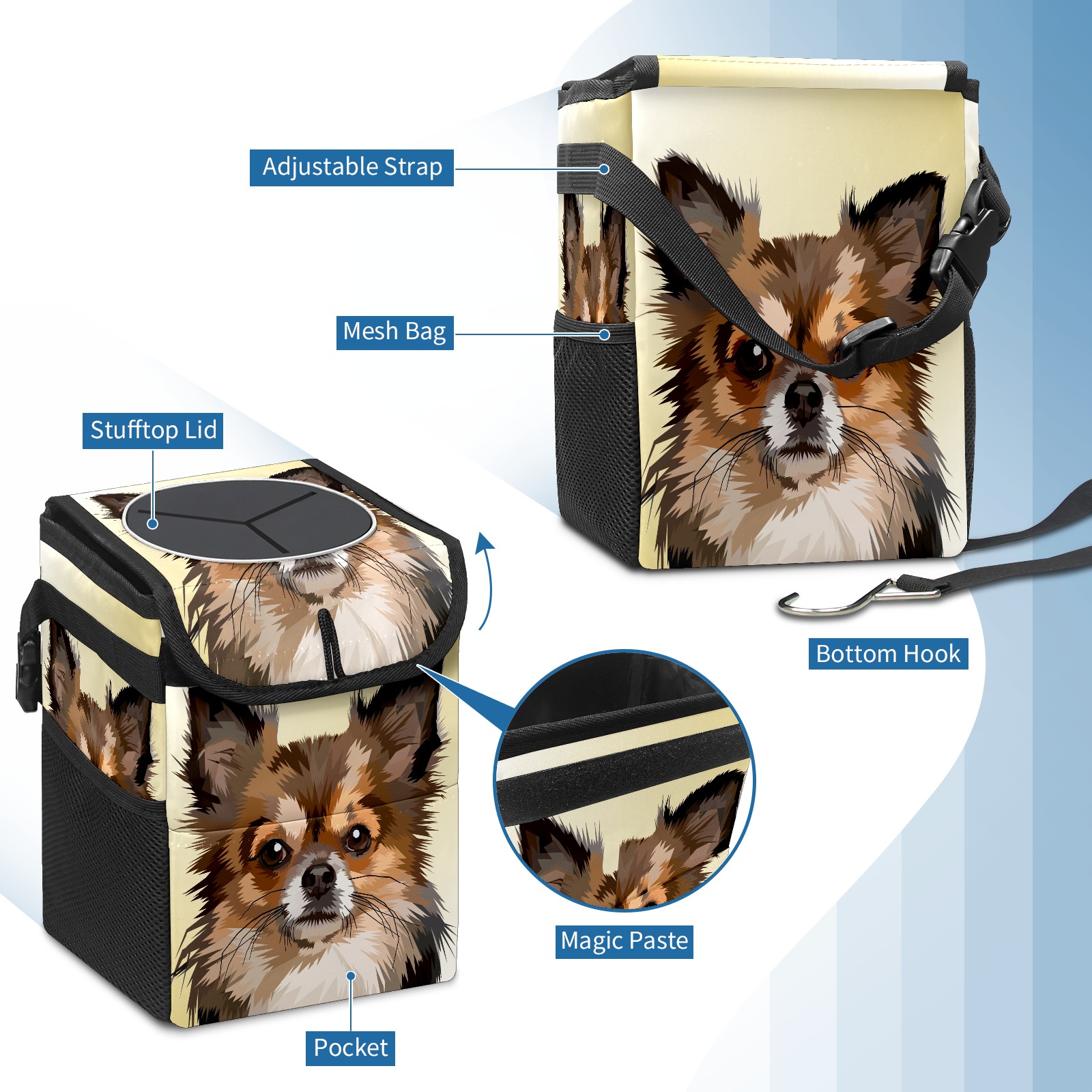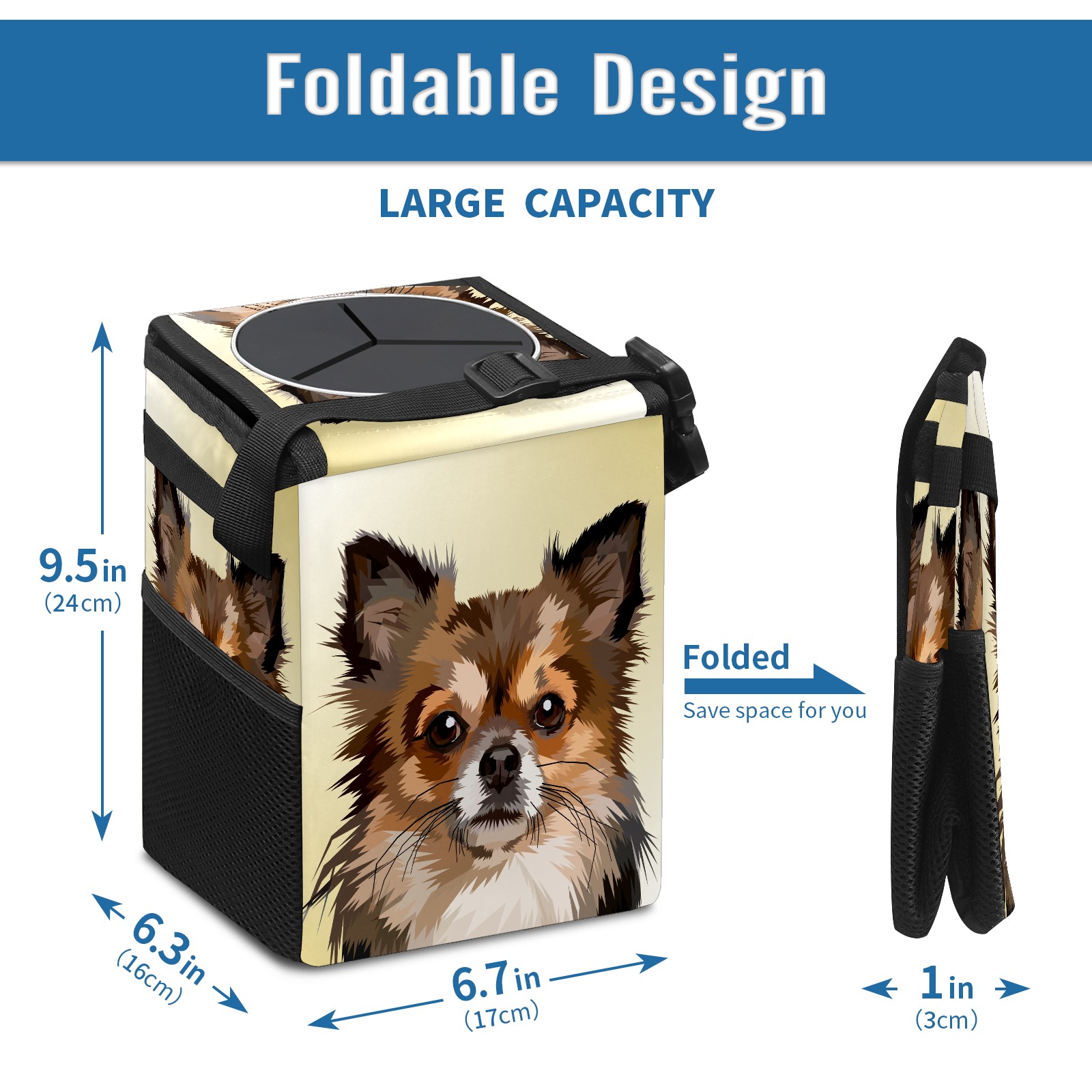 Car Garbage Can — Multi-functional, Lightweight Portable, Reusable Vehicle Trash Can, Waterproof with Sufficient Storage Capacity 犬 動物 かわいい