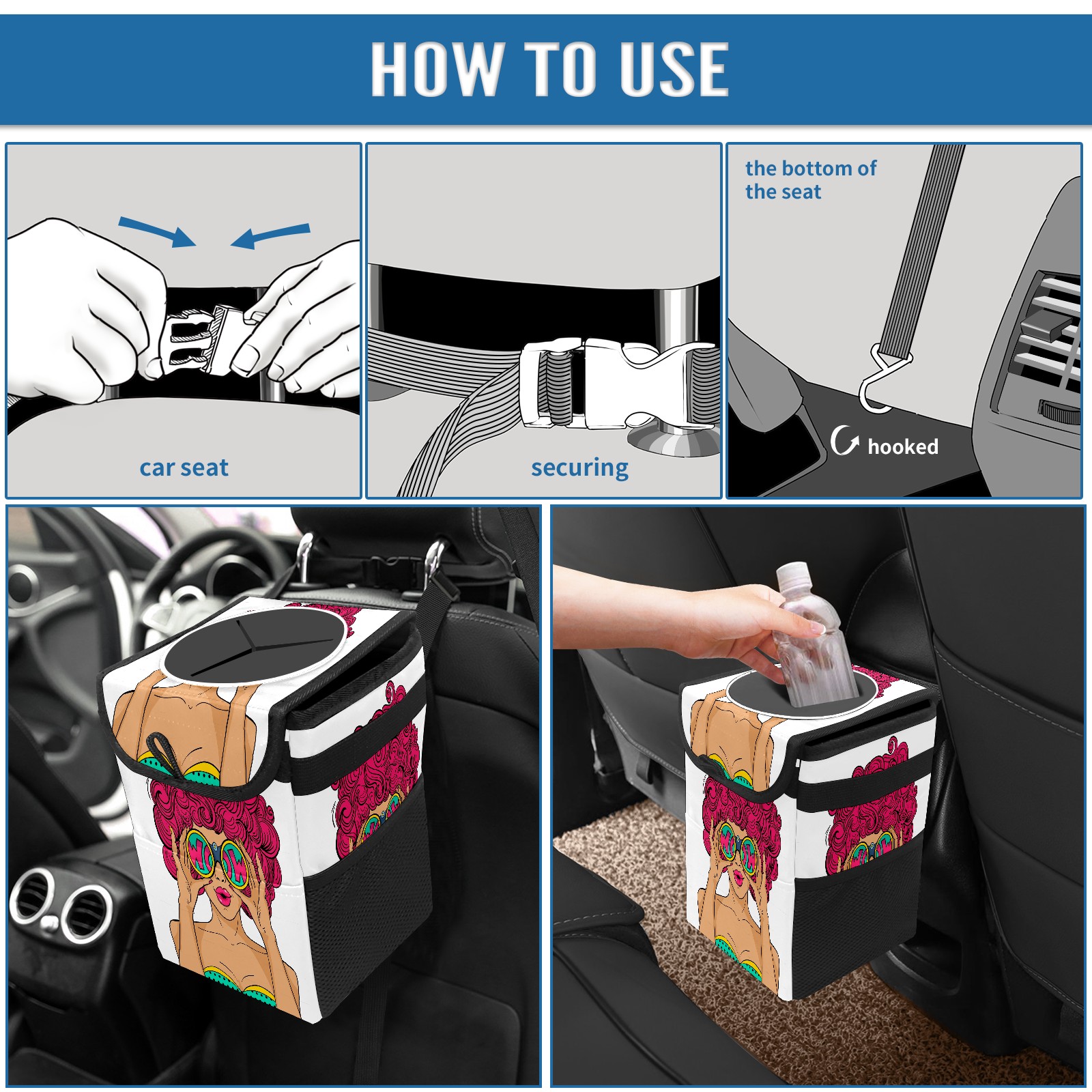• <p>Keep your car neat with this practical car trash can—built for durability, versatility, and on-the-go convenience! Crafted from quality twill fabric with a waterproof lining, it prevents leaks, keeping seats/floors clean. Clean easily: empty directly or secure a disposable bag with side clips. Adjustable pull cord fits floor, seat, or headrest. 9.5x6.3x6.7 inches, ample space for daily trash, folds flat for storage. More than a trash can, it doubles as a storage bag for cups, toys, docs, and small gadgets—must-have car interior accessory. Installs in seconds on seats, console, or gear shift; adjustable straps keep it stable, no slipping on bumpy roads. Perfect gift for new car owners!</p>