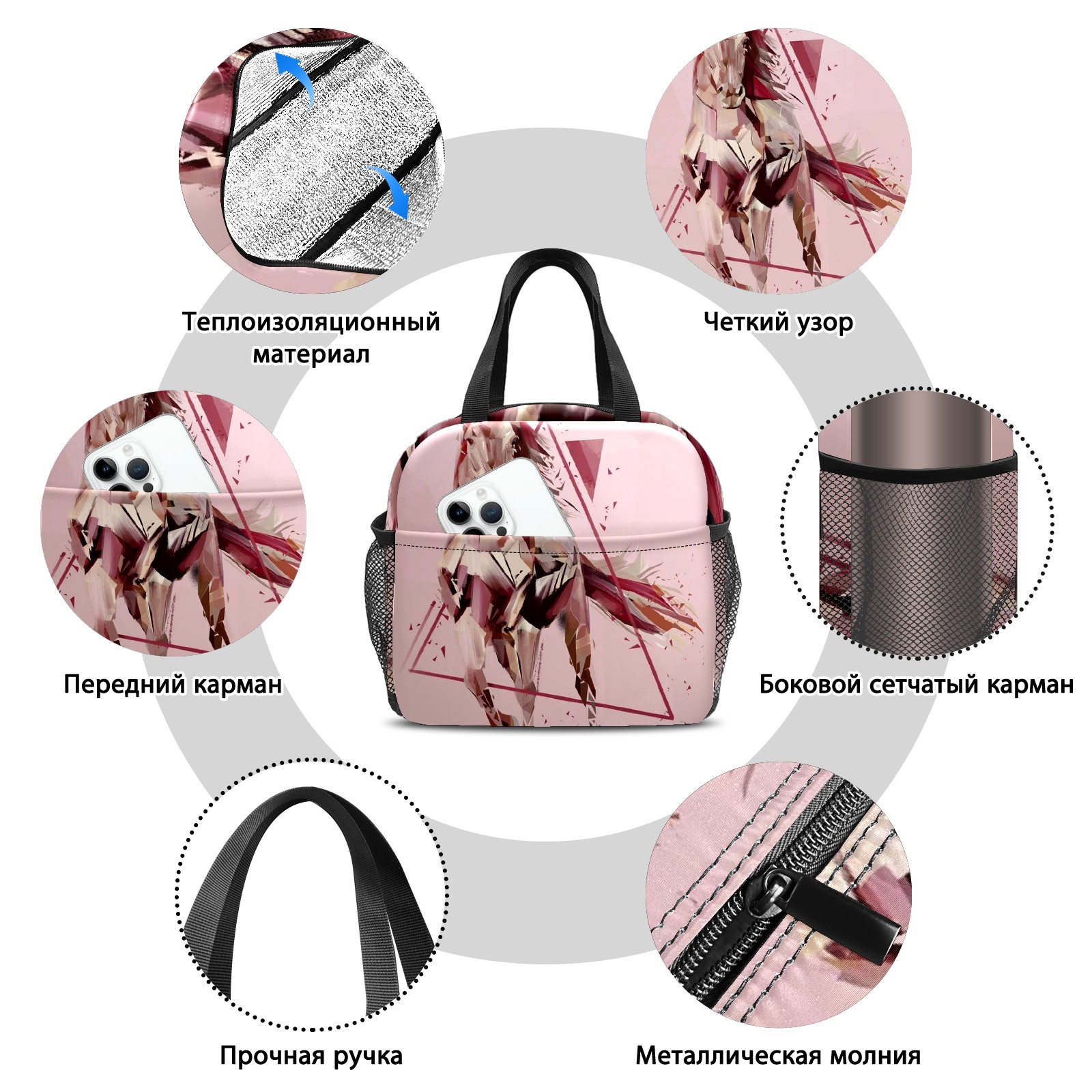Lunch Bag,Lunch Box for Women Men,Abstract Horse Reusable Insulated Lunch Tote,Small Leakproof Cute Lunch Cooler with High Capacity for Work,Picnic,Camping