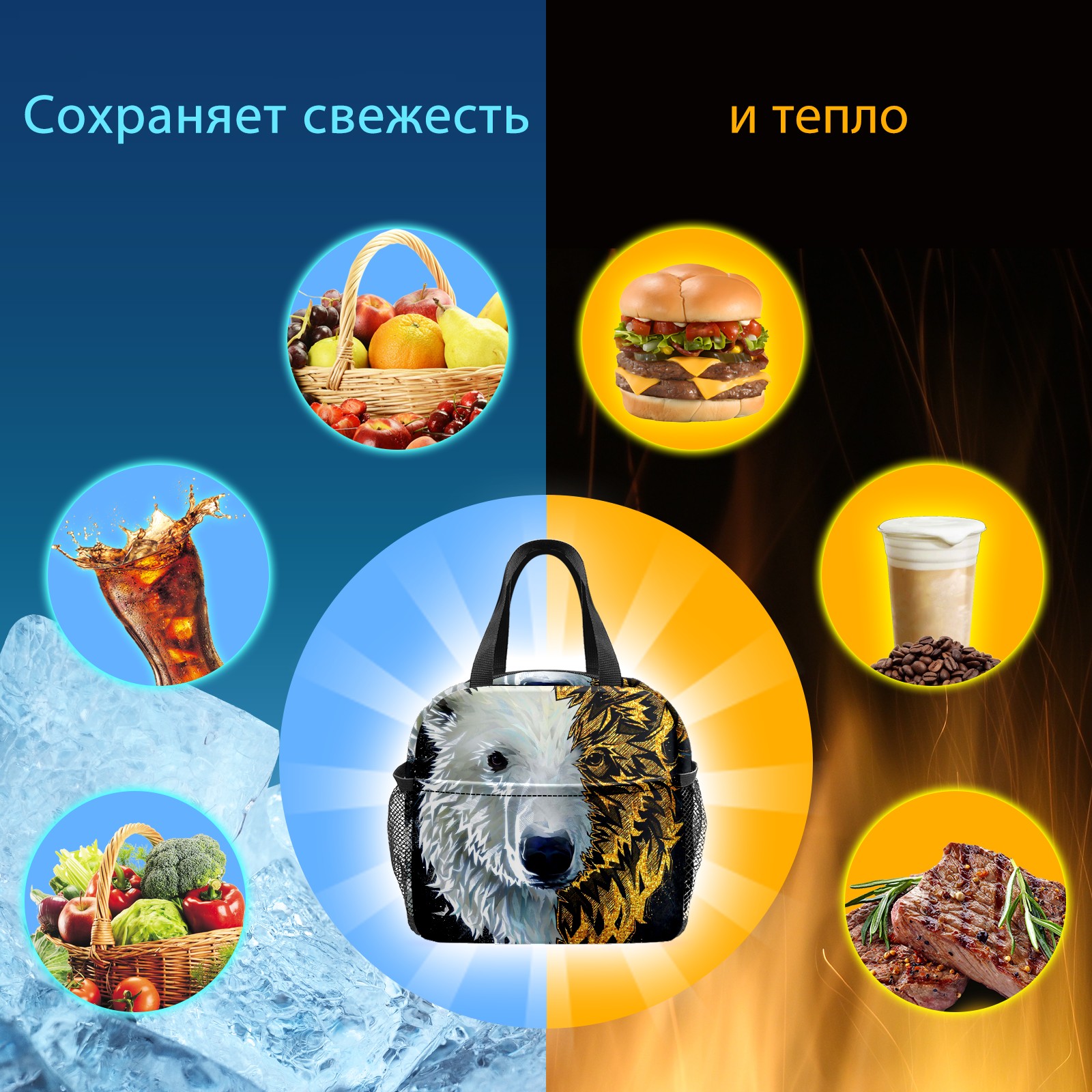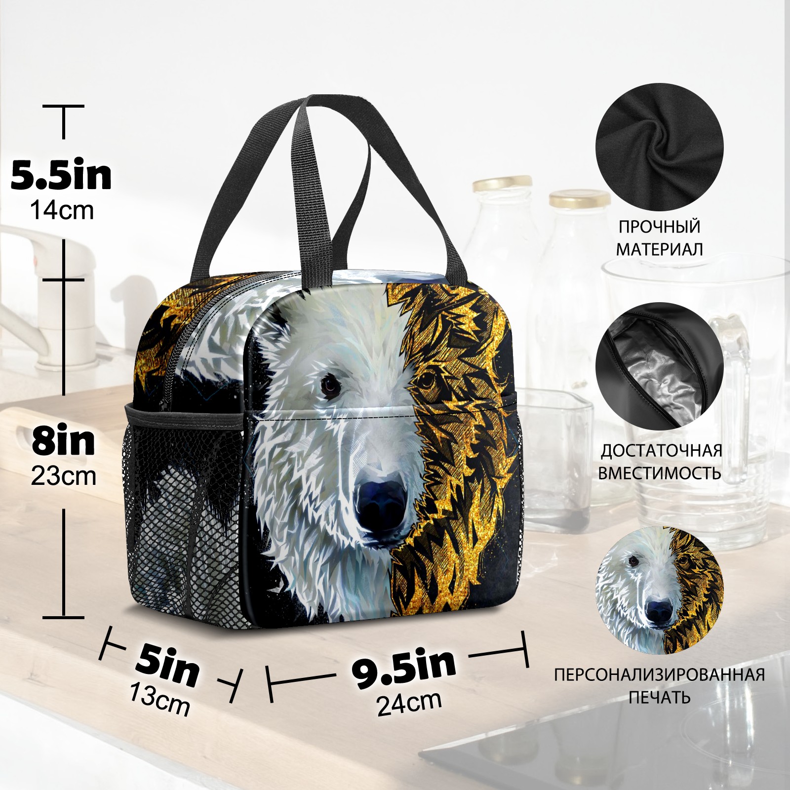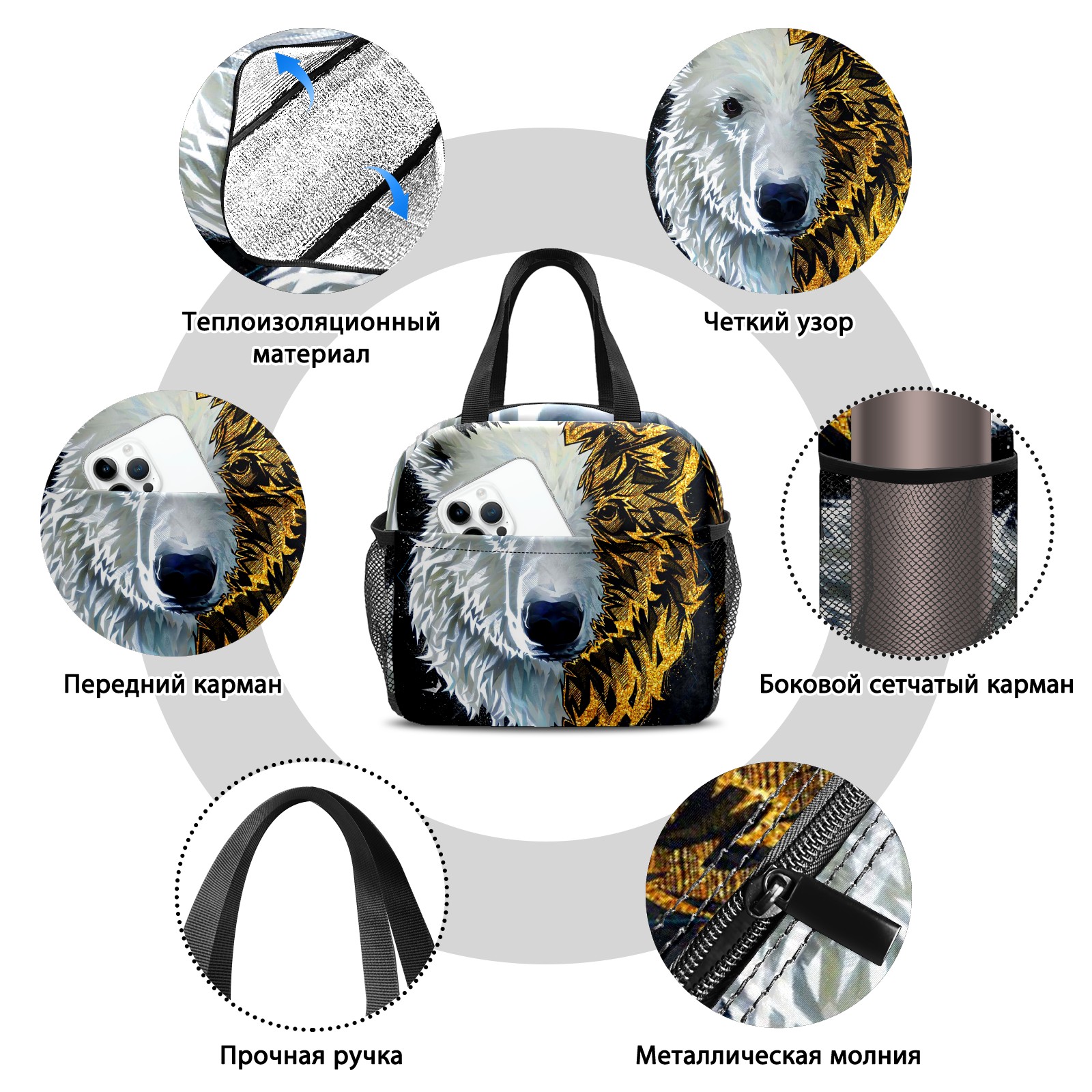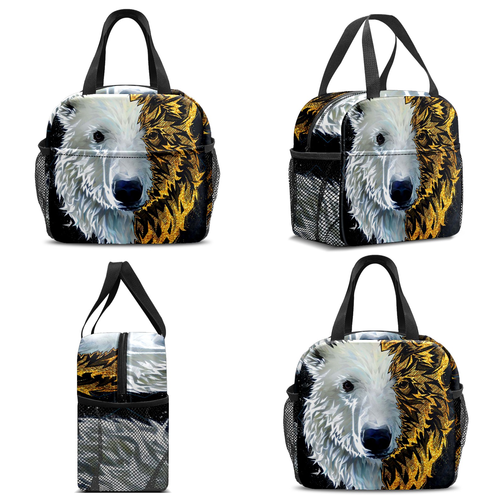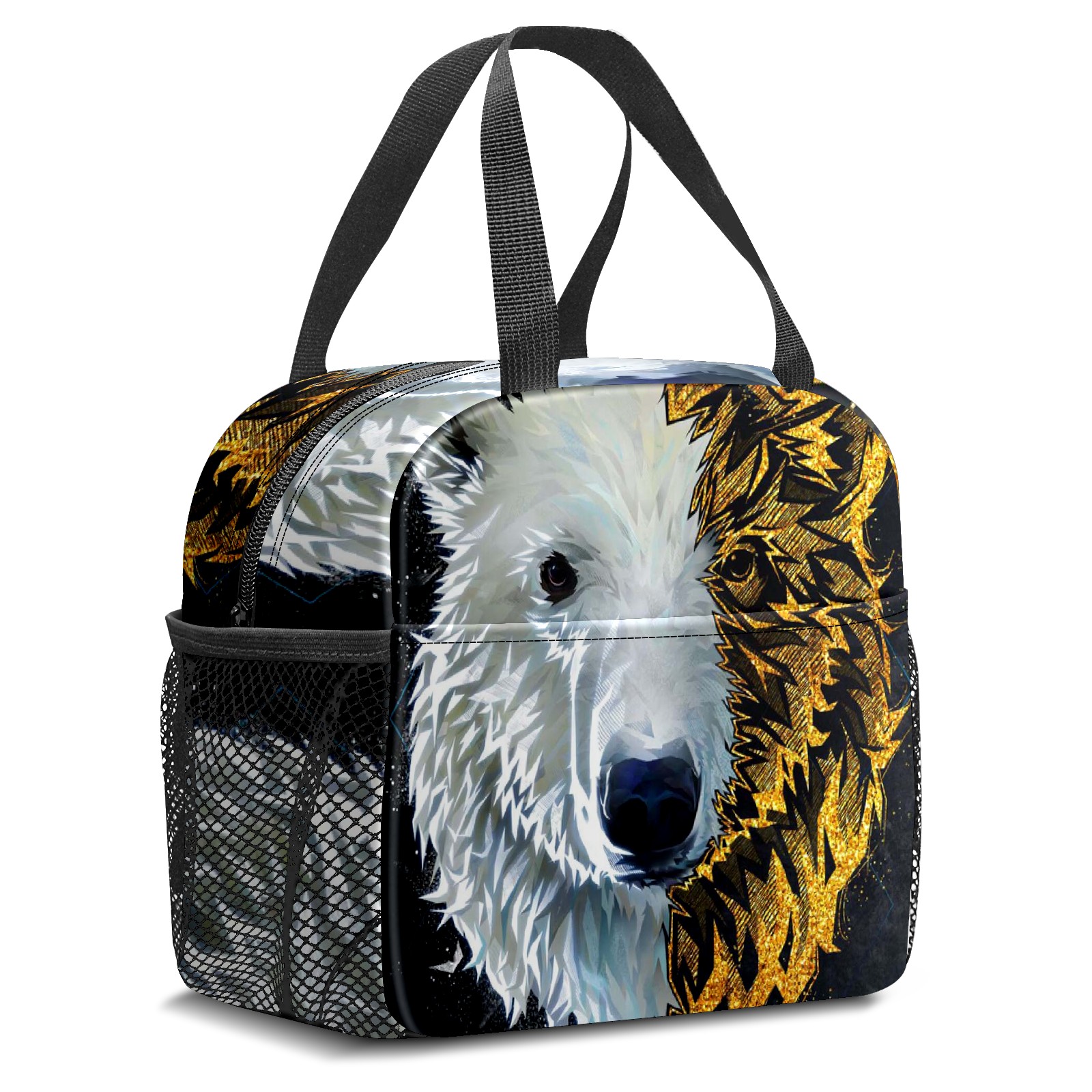 Lunch Bag,Lunch Box for Women Men,Abstract Golden Polar Bear Reusable Insulated Lunch Tote,Small Leakproof Cute Lunch Cooler with High Capacity for Work,Picnic,Camping