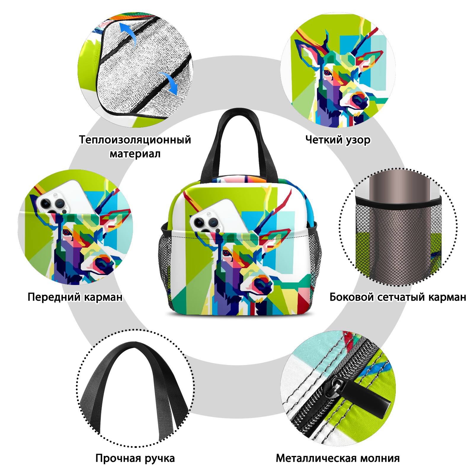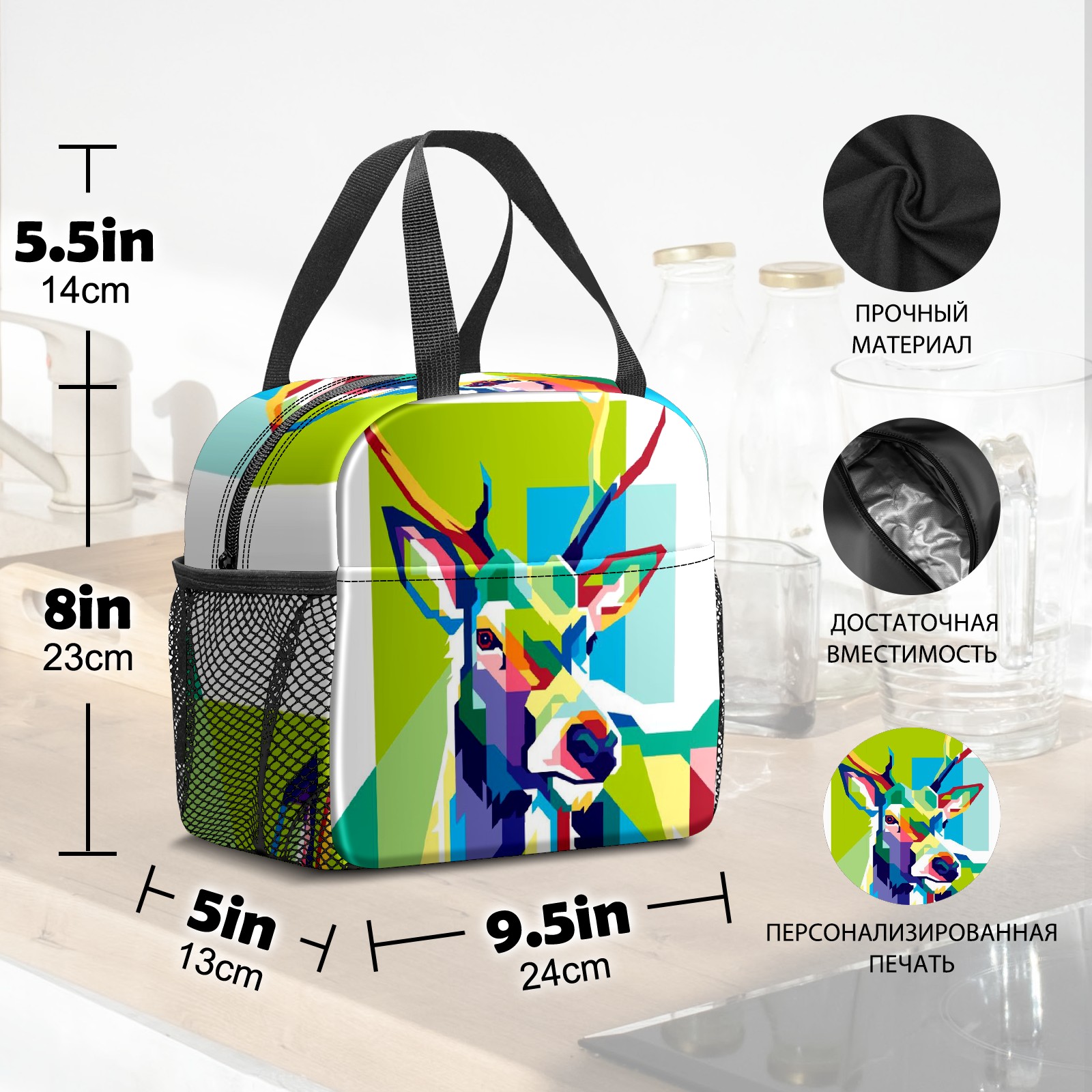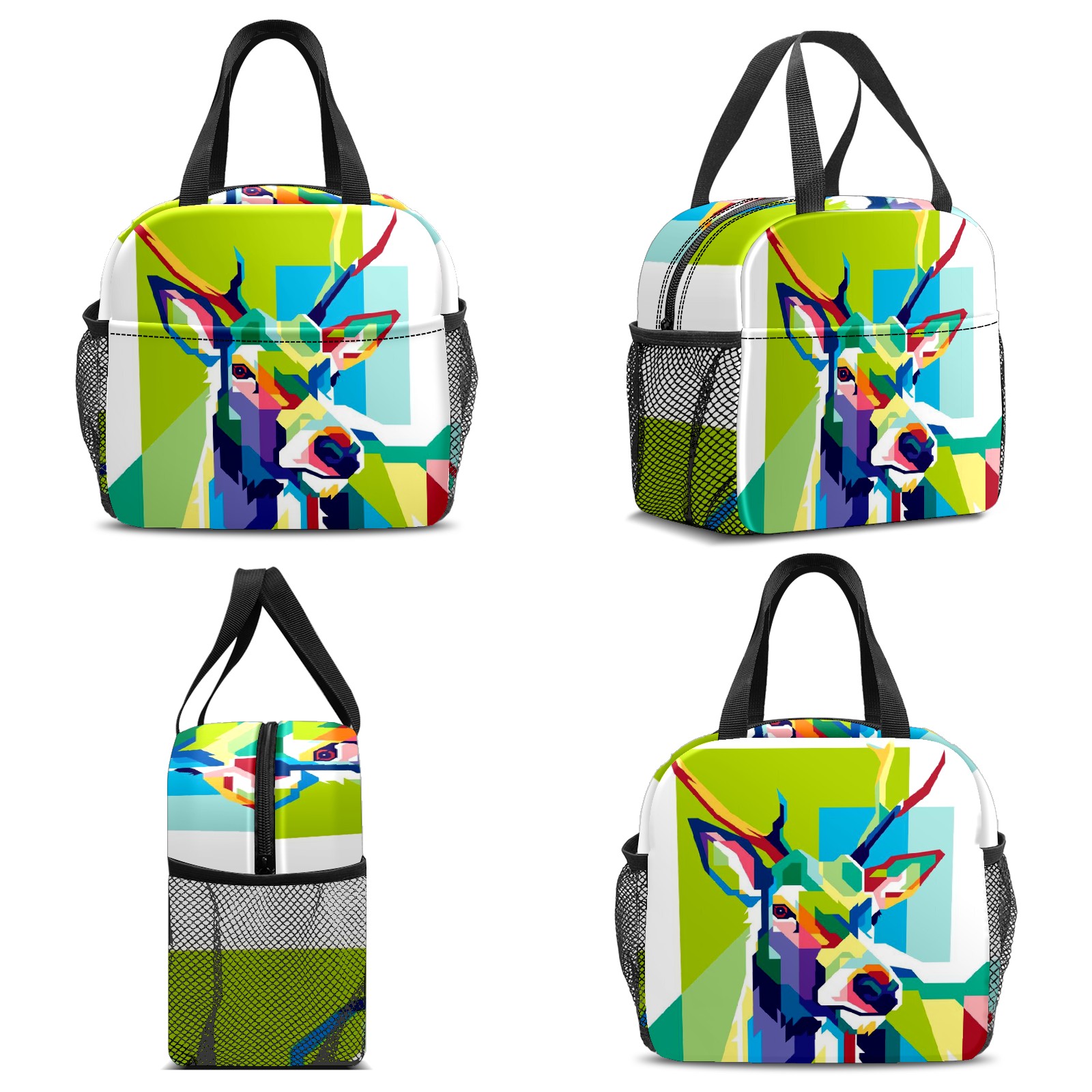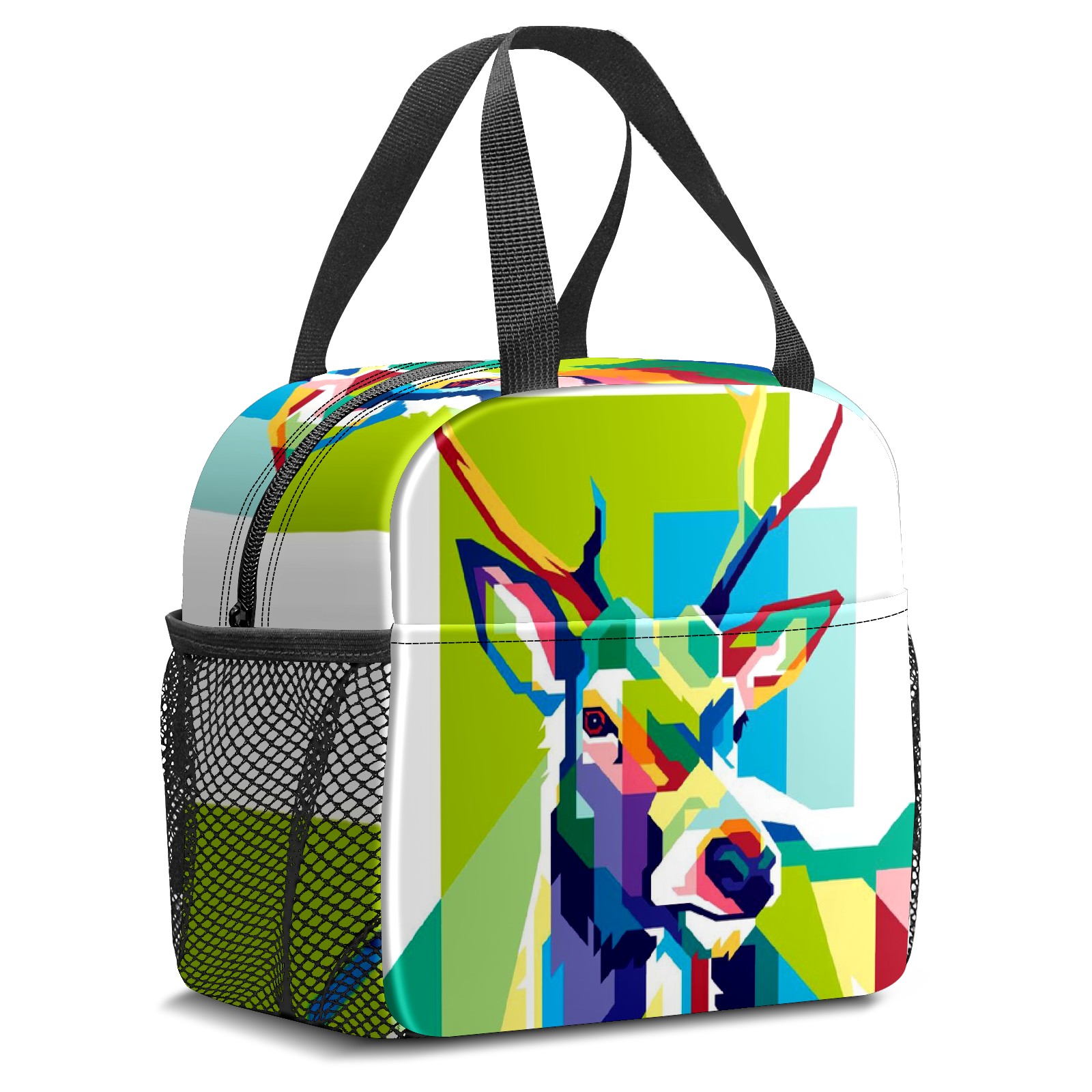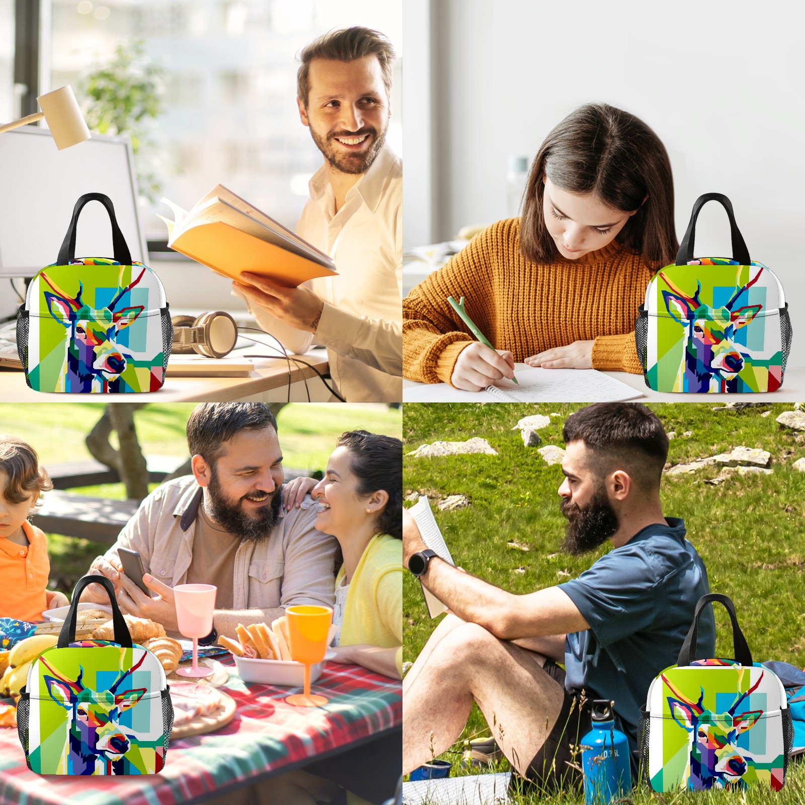Lunch Bag,Lunch Box for Women Men,Abstract Colorful Deer Reusable Insulated Lunch Tote,Small Leakproof Cute Lunch Cooler with High Capacity for Work,Picnic,Camping
