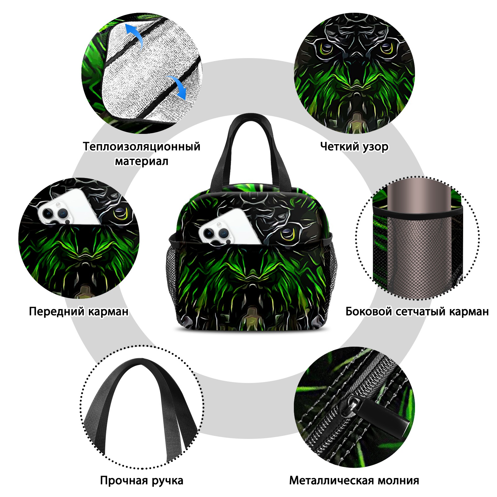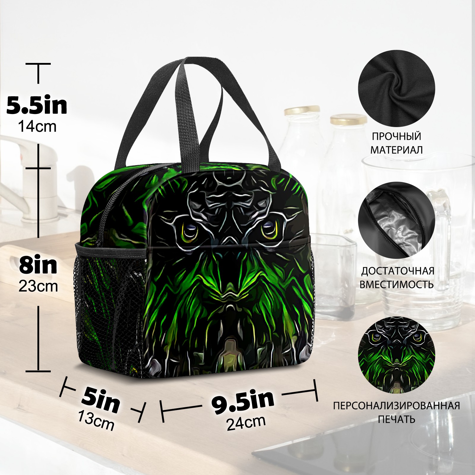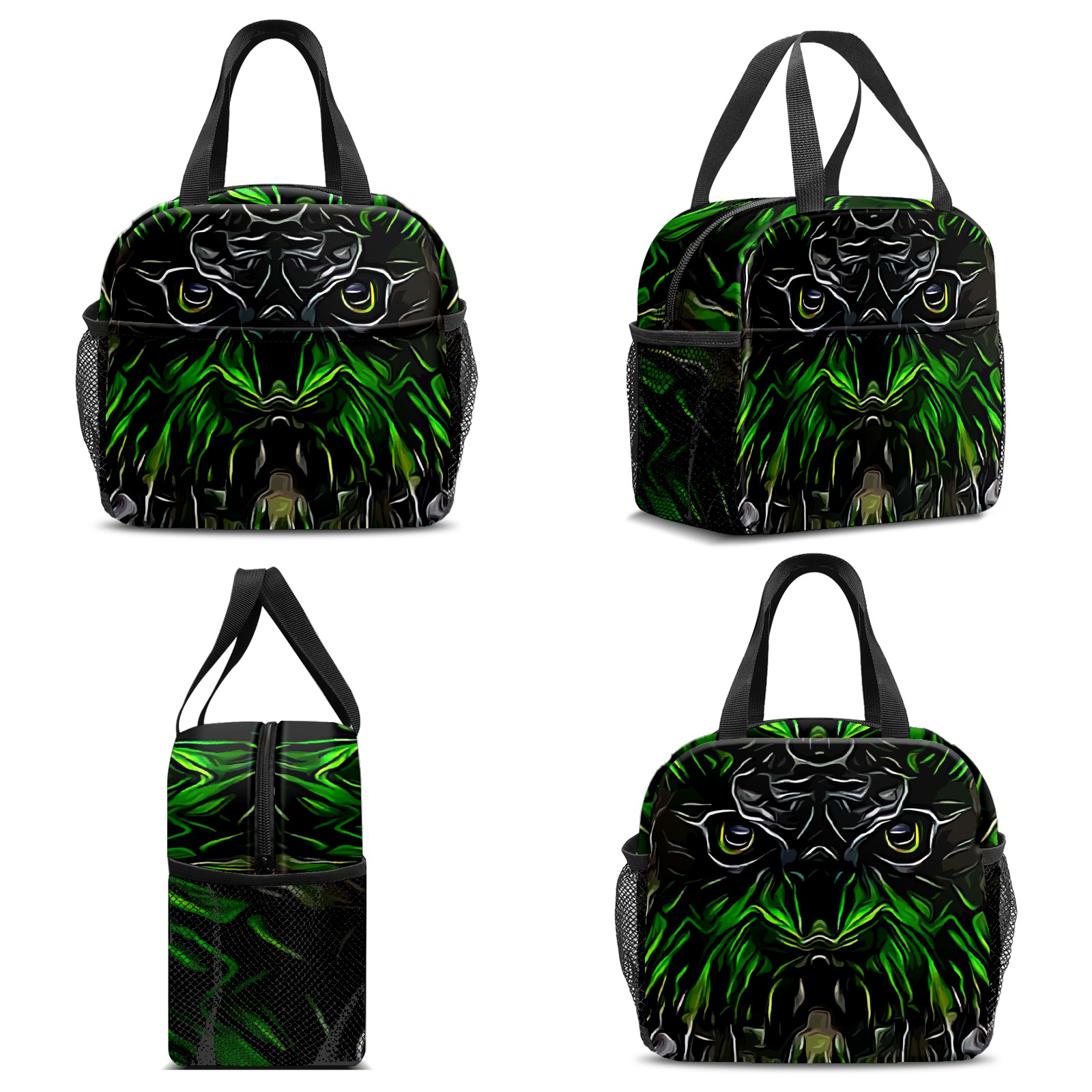 Lunch Bag,Lunch Box for Women Men,Abstract Artistic Green Owl Reusable Insulated Lunch Tote,Small Leakproof Cute Lunch Cooler with High Capacity for Work,Picnic,Camping
