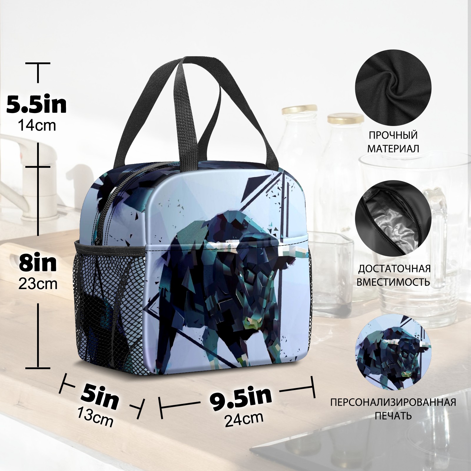Lunch Bag,Lunch Box for Women Men,Abstract Bison Reusable Insulated Lunch Tote,Small Leakproof Cute Lunch Cooler with High Capacity for Work,Picnic,Camping