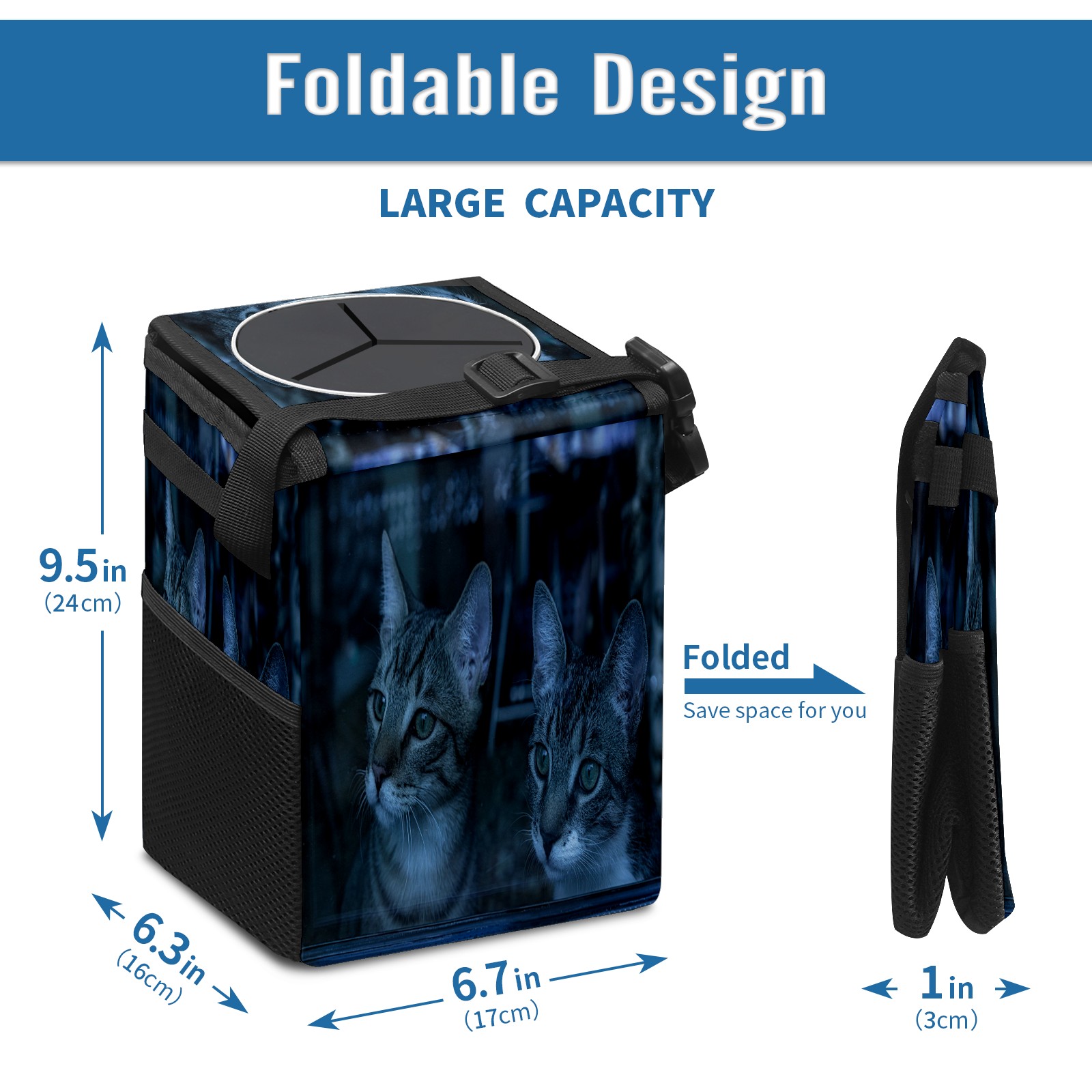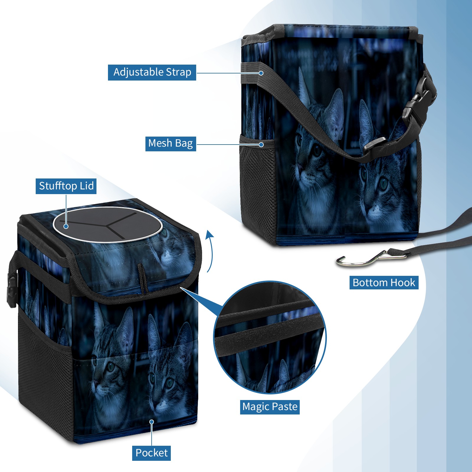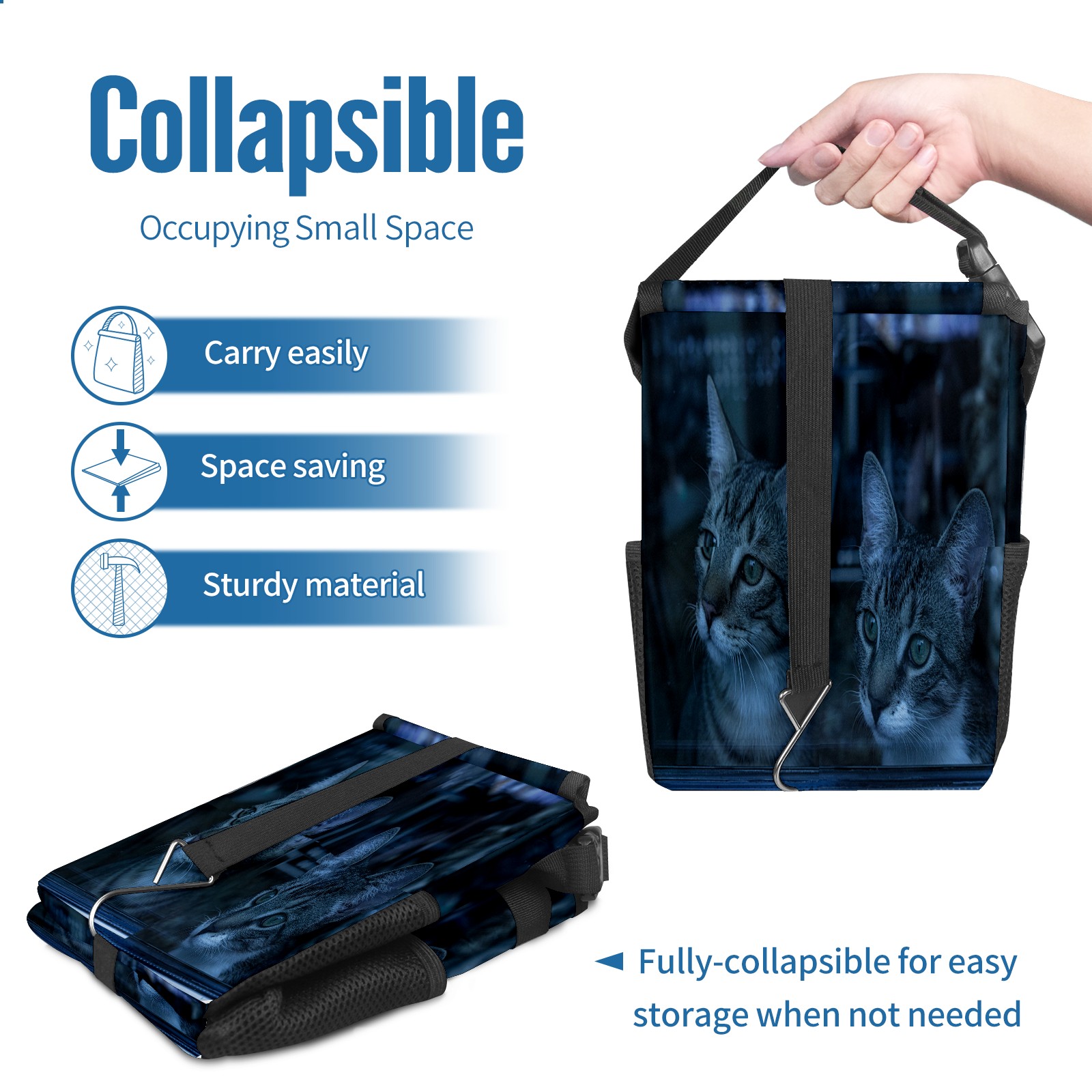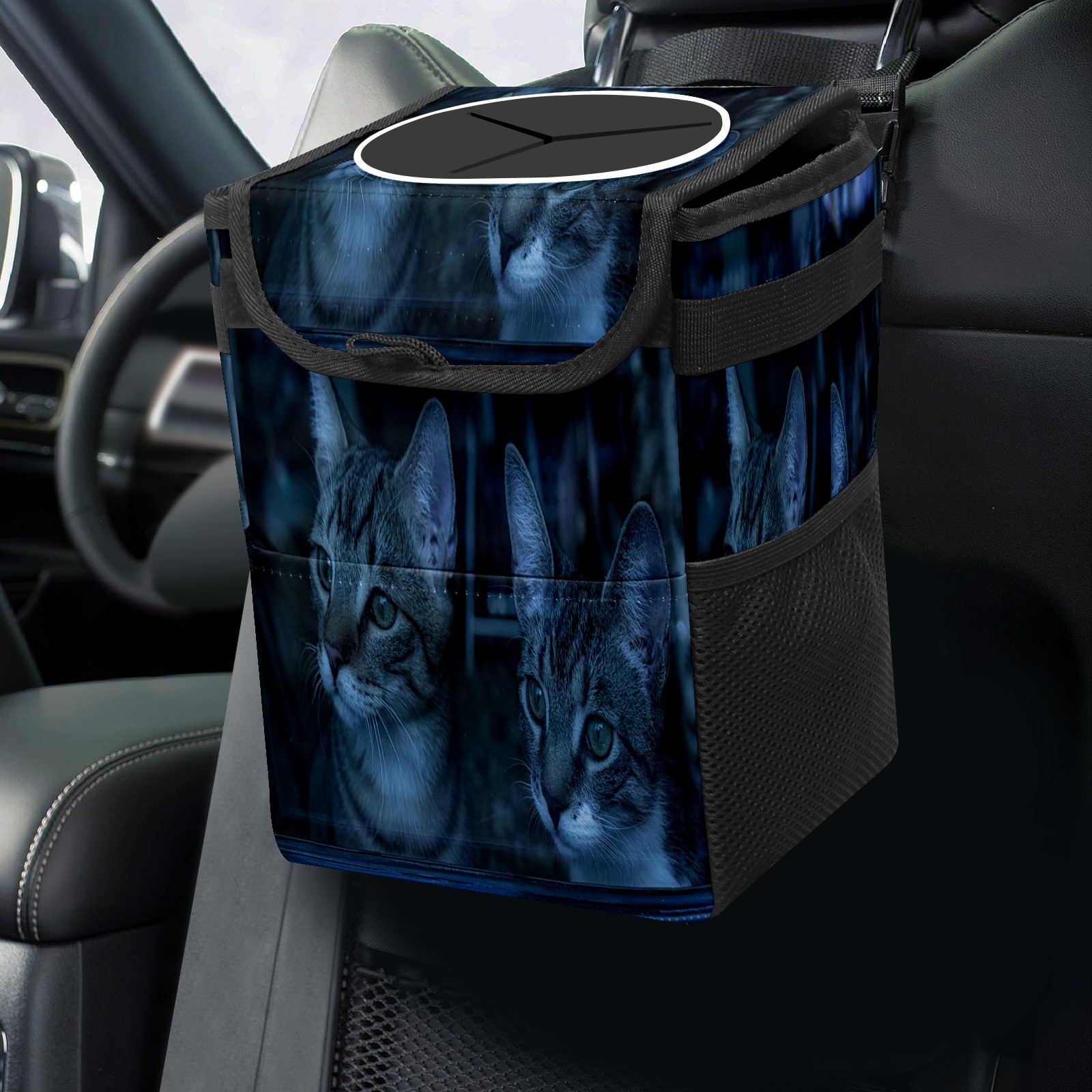 Car Garbage Can — Multi-functional, Lightweight Portable, Reusable Vehicle Trash Can, Waterproof with Sufficient Storage Capacity 猫二つ かわいい