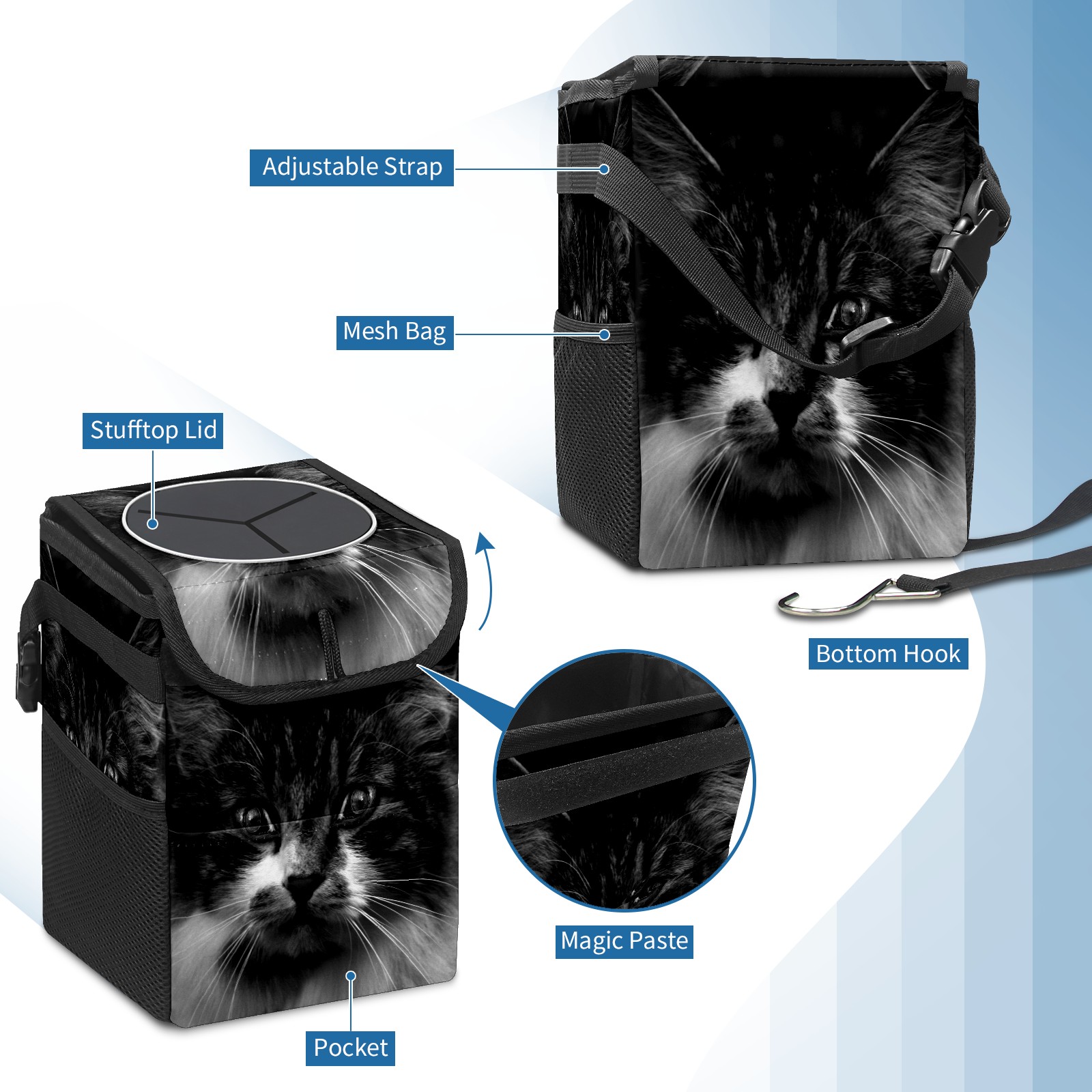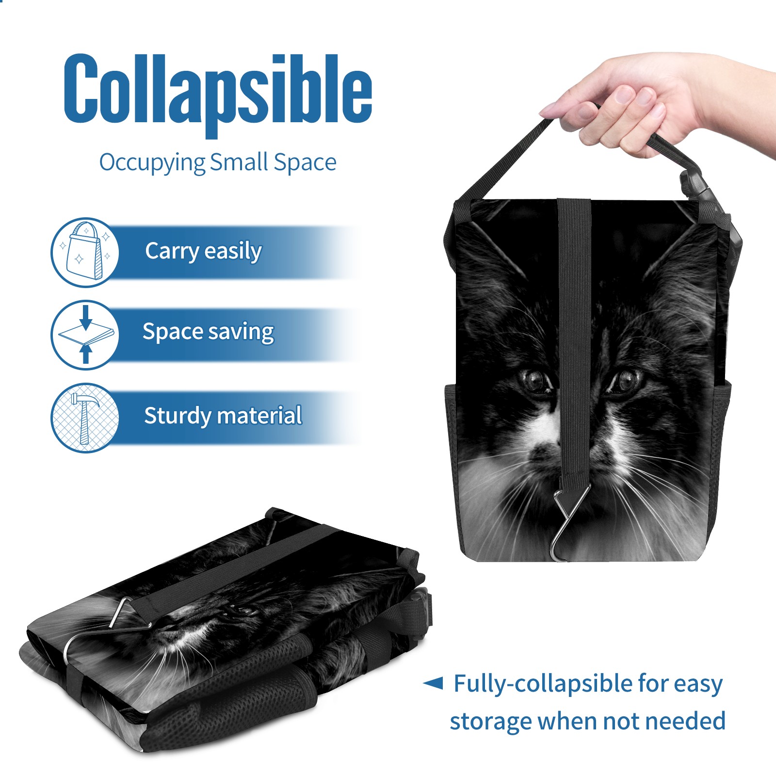 Car Garbage Can — Multi-functional, Lightweight Portable, Reusable Vehicle Trash Can, Waterproof with Sufficient Storage Capacity 猫 顔 目