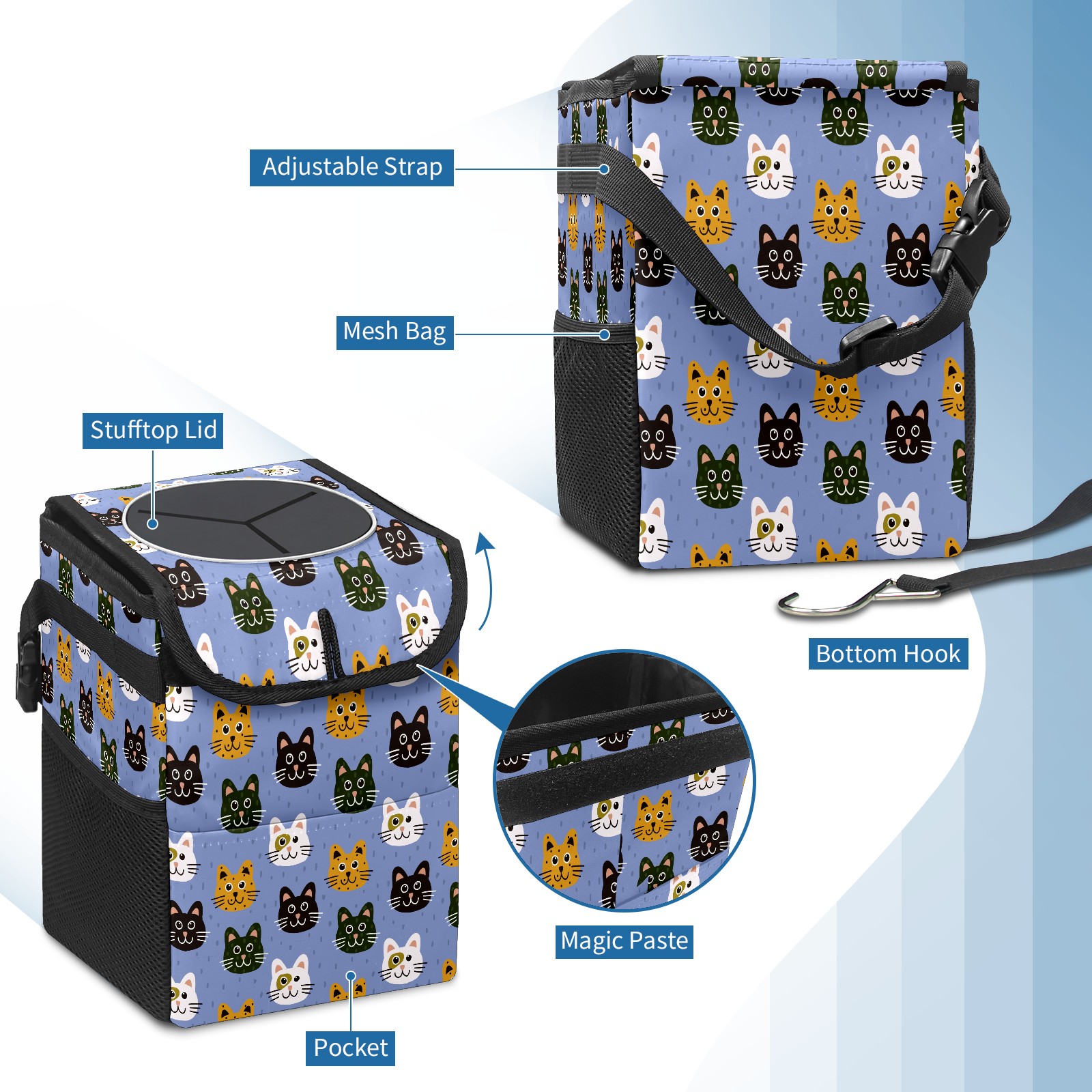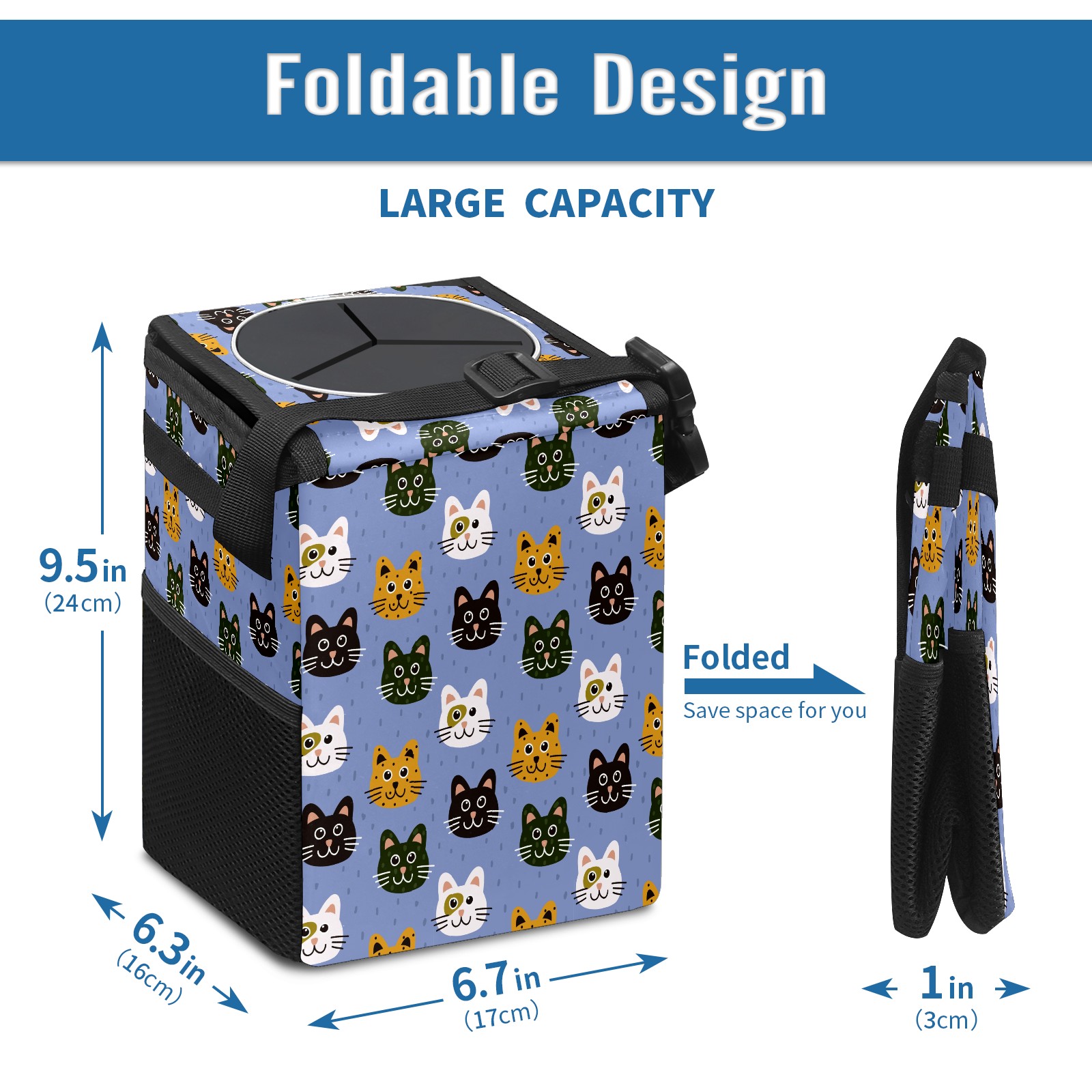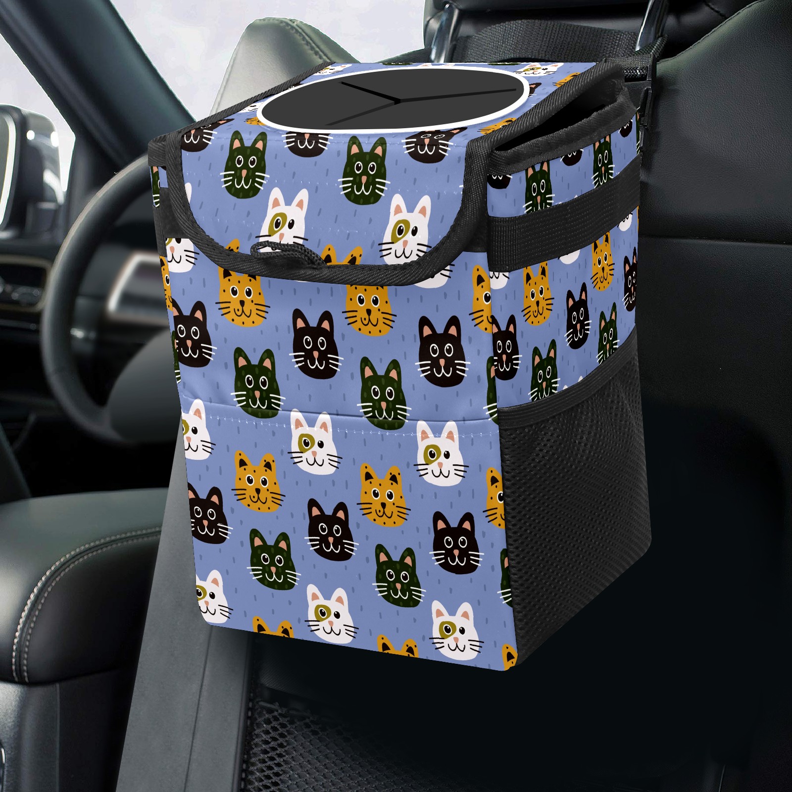 Car Garbage Can — Multi-functional, Lightweight Portable, Reusable Vehicle Trash Can, Waterproof with Sufficient Storage Capacity 猫柄 かわいい