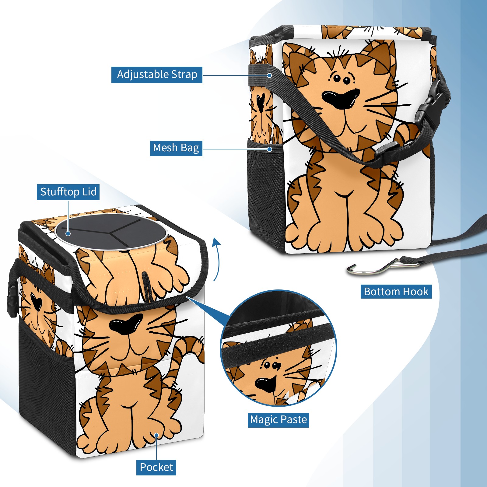 Car Garbage Can — Multi-functional, Lightweight Portable, Reusable Vehicle Trash Can, Waterproof with Sufficient Storage Capacity 猫 かわいい