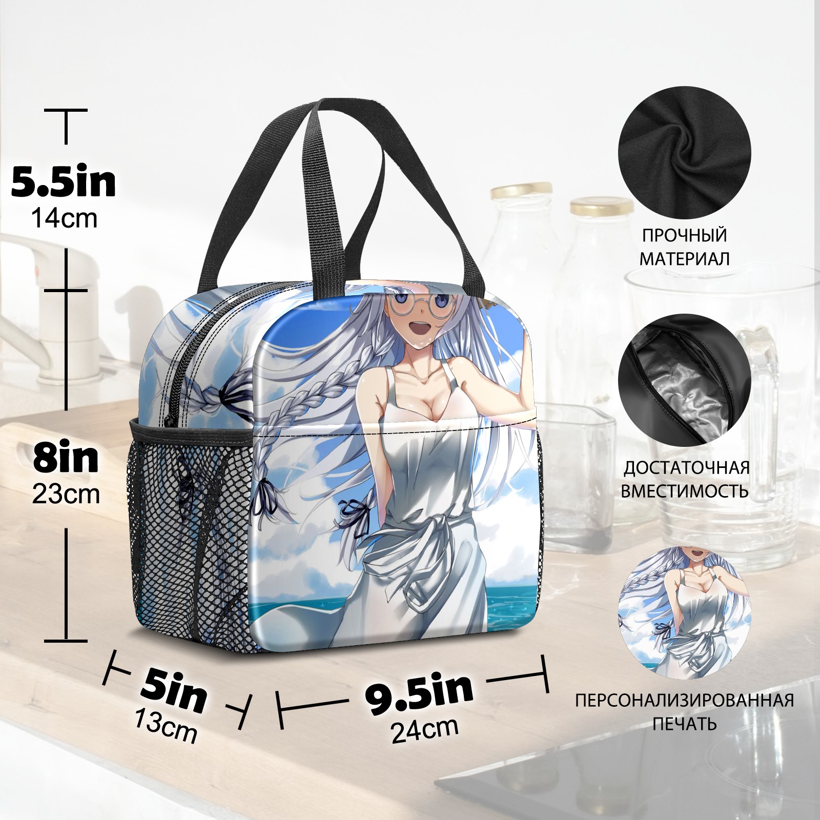 Lunch Bag,Lunch Box for Women Men,Cute Girl In White Dress Reusable Insulated Lunch Tote,Small Leakproof Cute Lunch Cooler with High Capacity for Work,Picnic,Camping