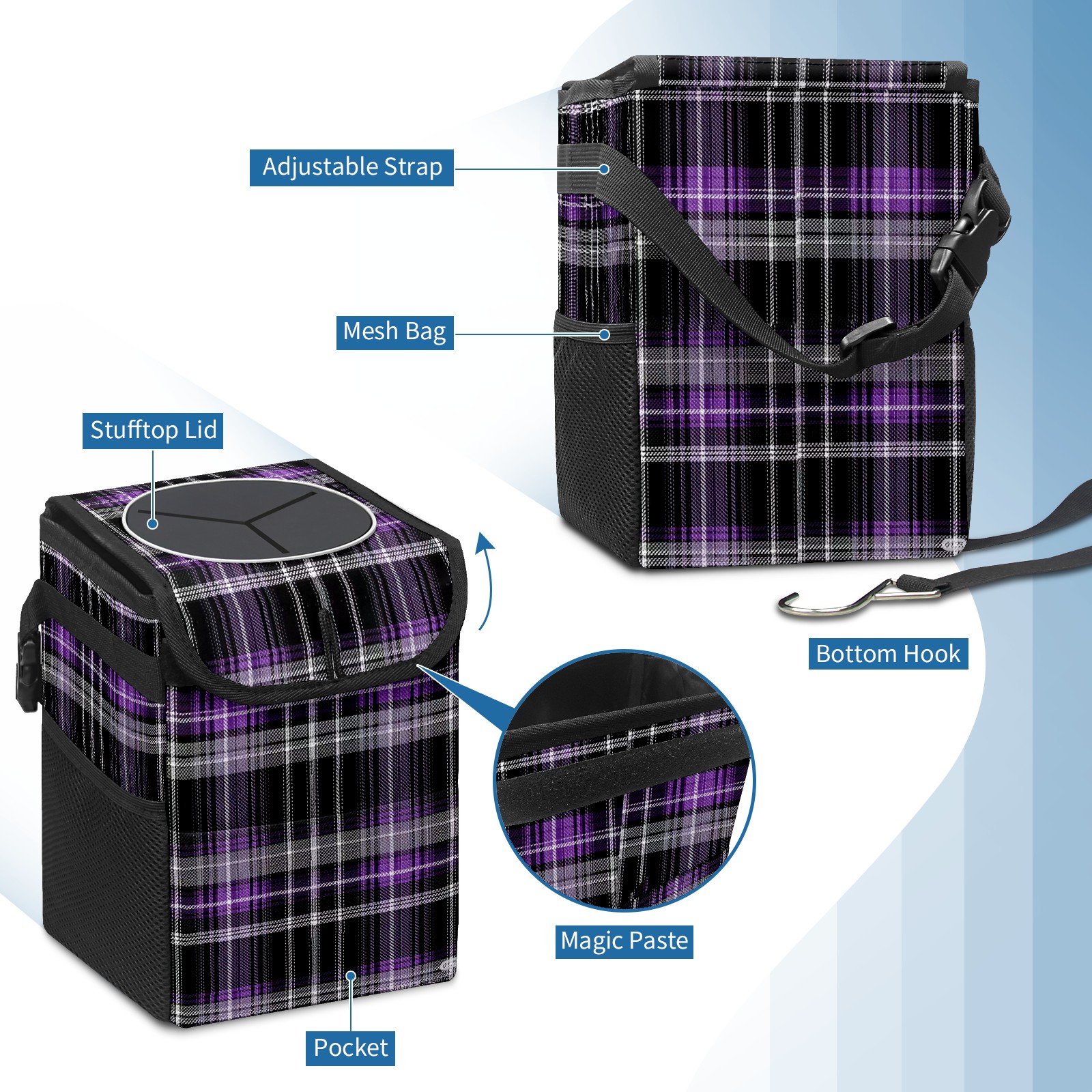 Эта многофункциональная автомобильная мусорная корзина отличается стильным принтом, сочетающим в себе практичность и эстетику. Изготовленная из высококачественной саржевой ткани с плетеными ремнями, она прочная, долговечная и износостойкая. Размеры корзины составляют 24×17×16 см (9,5×6,7×6,3 дюйма). Верхнее отверстие имеет прорезиненное покрытие для удобной утилизации мусора; боковые сетчатые карманы и передний карман обеспечивают удобное хранение закусок, телефонов и других мелких предметов.