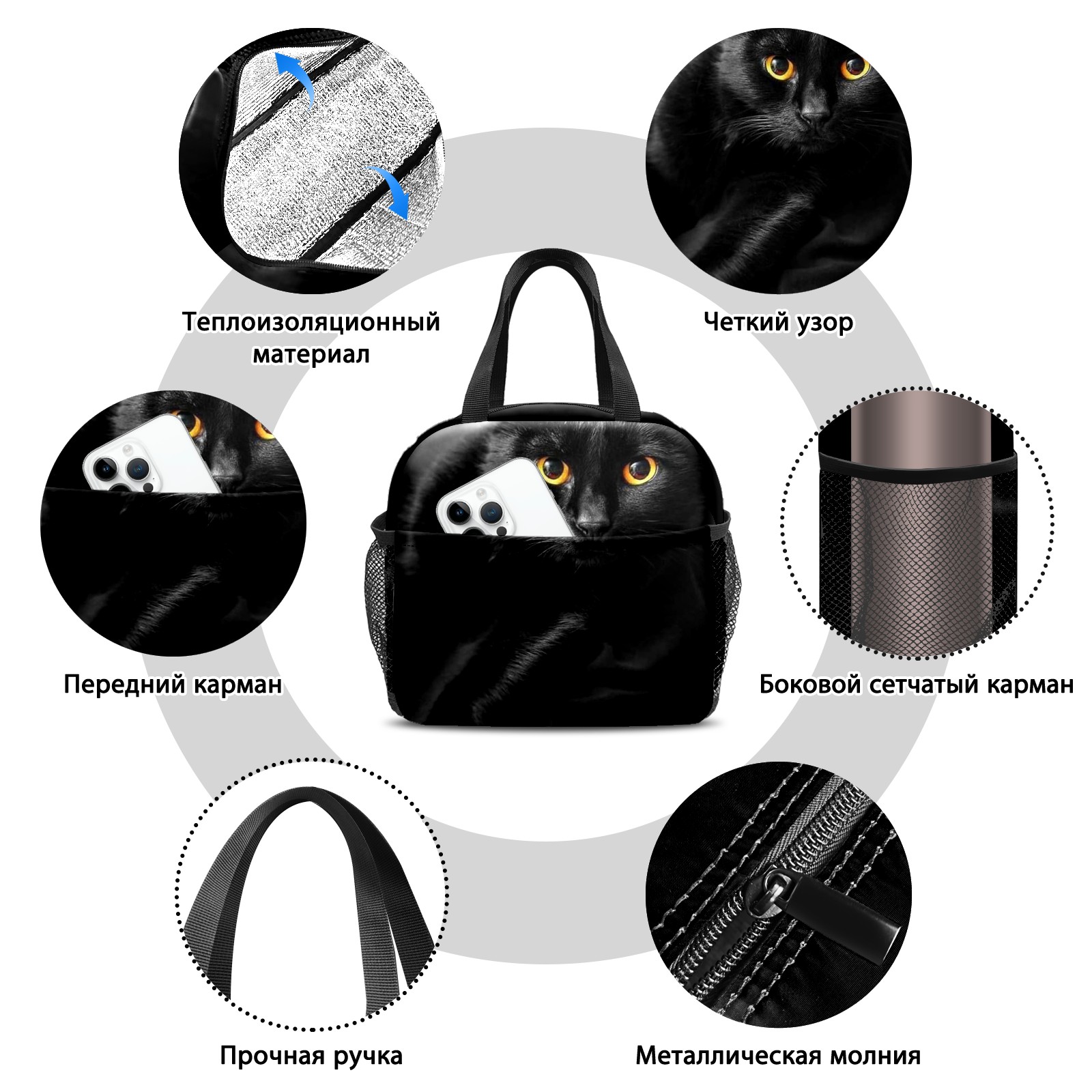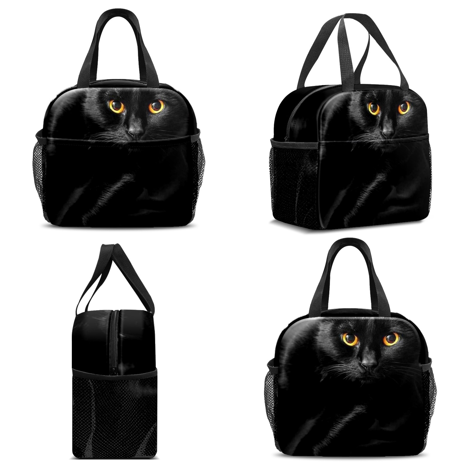 Lunch Bag,Lunch Box for Women Men,Black Cat Reusable Insulated Lunch Tote,Small Leakproof Cute Lunch Cooler with High Capacity for Work,Picnic,Camping