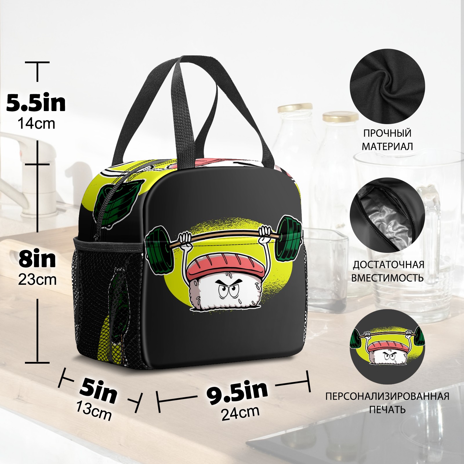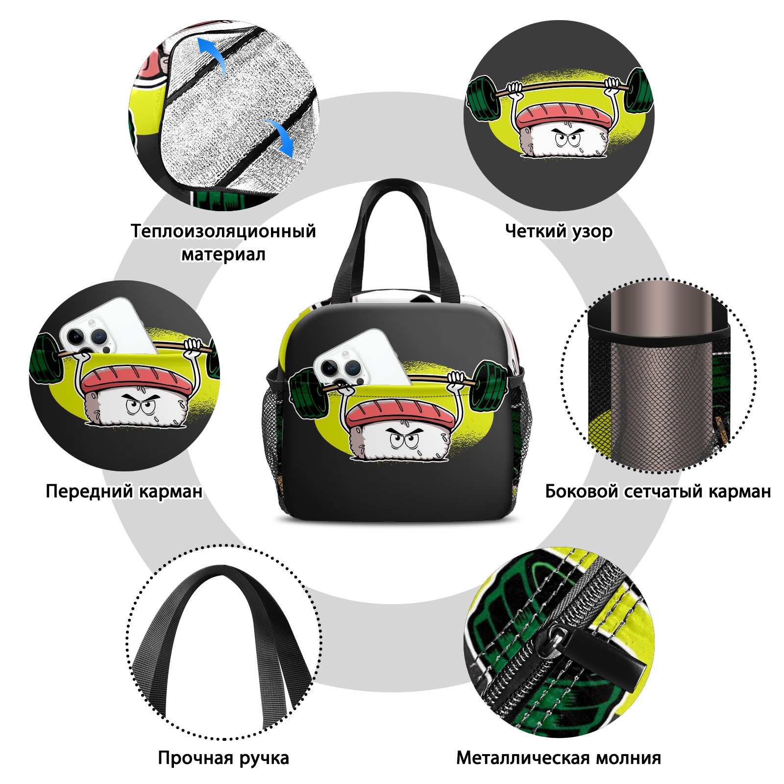Lunch Bag,Lunch Box for Women Men,Sushi Weight Lifting Reusable Insulated Lunch Tote,Small Leakproof Cute Lunch Cooler with High Capacity for Work,Picnic,Camping