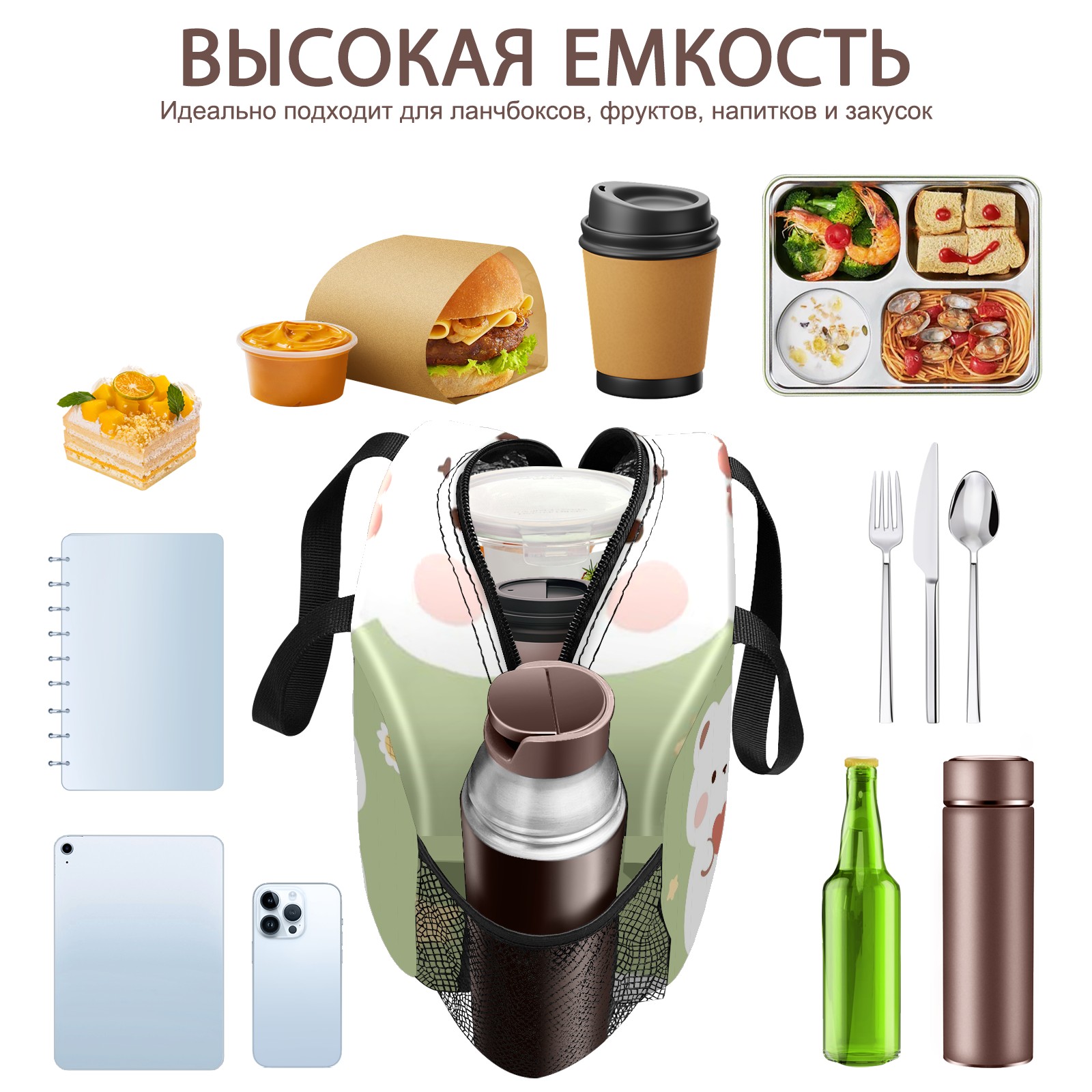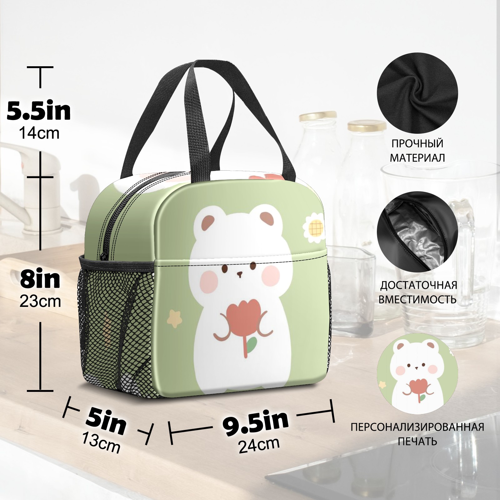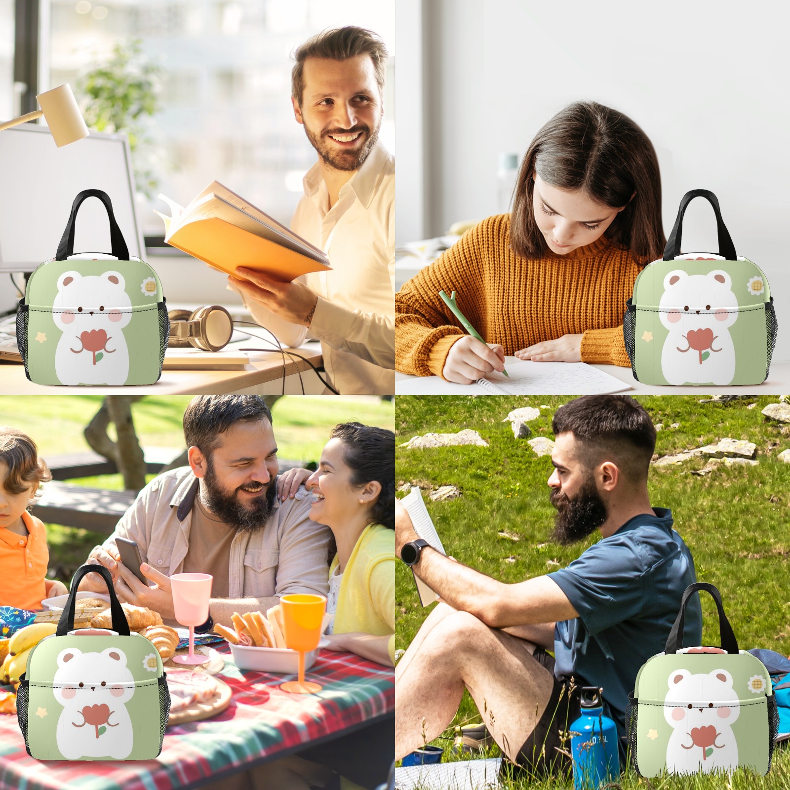Lunch Bag,Lunch Box for Women Men,Bear4 (2) Reusable Insulated Lunch Tote,Small Leakproof Cute Lunch Cooler with High Capacity for Work,Picnic,Camping