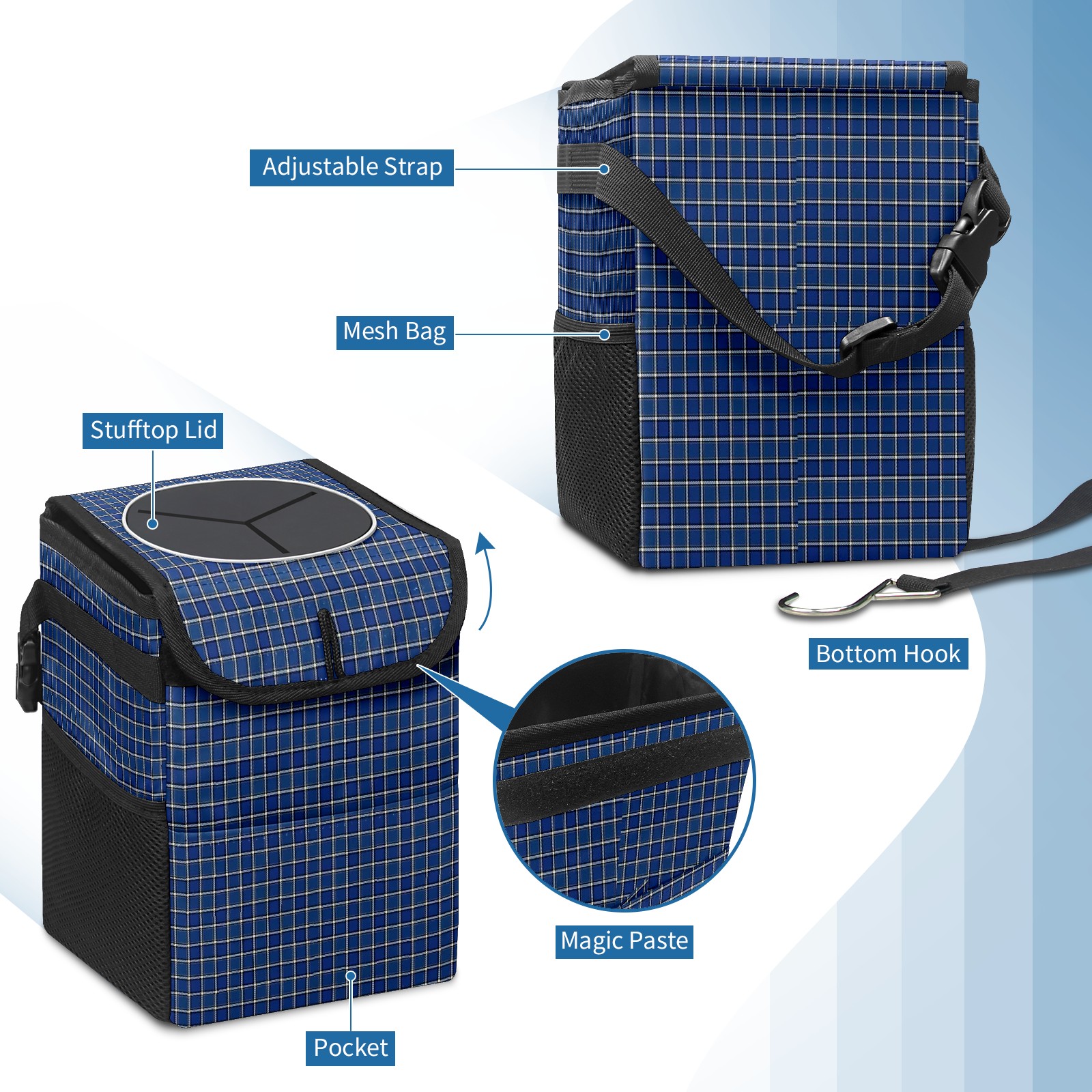 Эта многофункциональная автомобильная мусорная корзина отличается стильным принтом, сочетающим в себе практичность и эстетику. Изготовленная из высококачественной саржевой ткани с плетеными ремнями, она прочная, долговечная и износостойкая. Размеры корзины составляют 24×17×16 см (9,5×6,7×6,3 дюйма). Верхнее отверстие имеет прорезиненное покрытие для удобной утилизации мусора; боковые сетчатые карманы и передний карман обеспечивают удобное хранение закусок, телефонов и других мелких предметов.