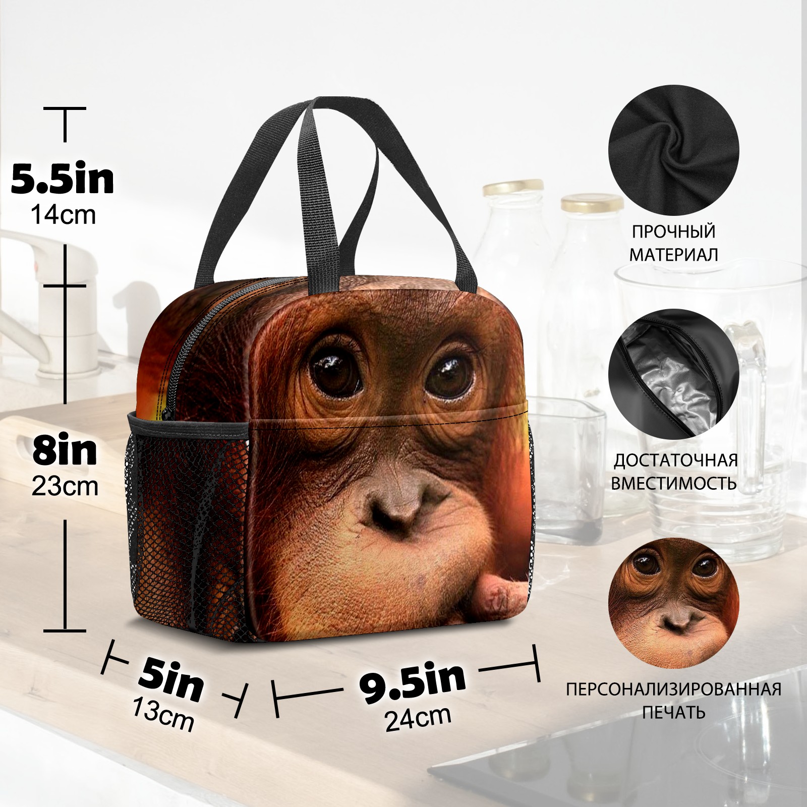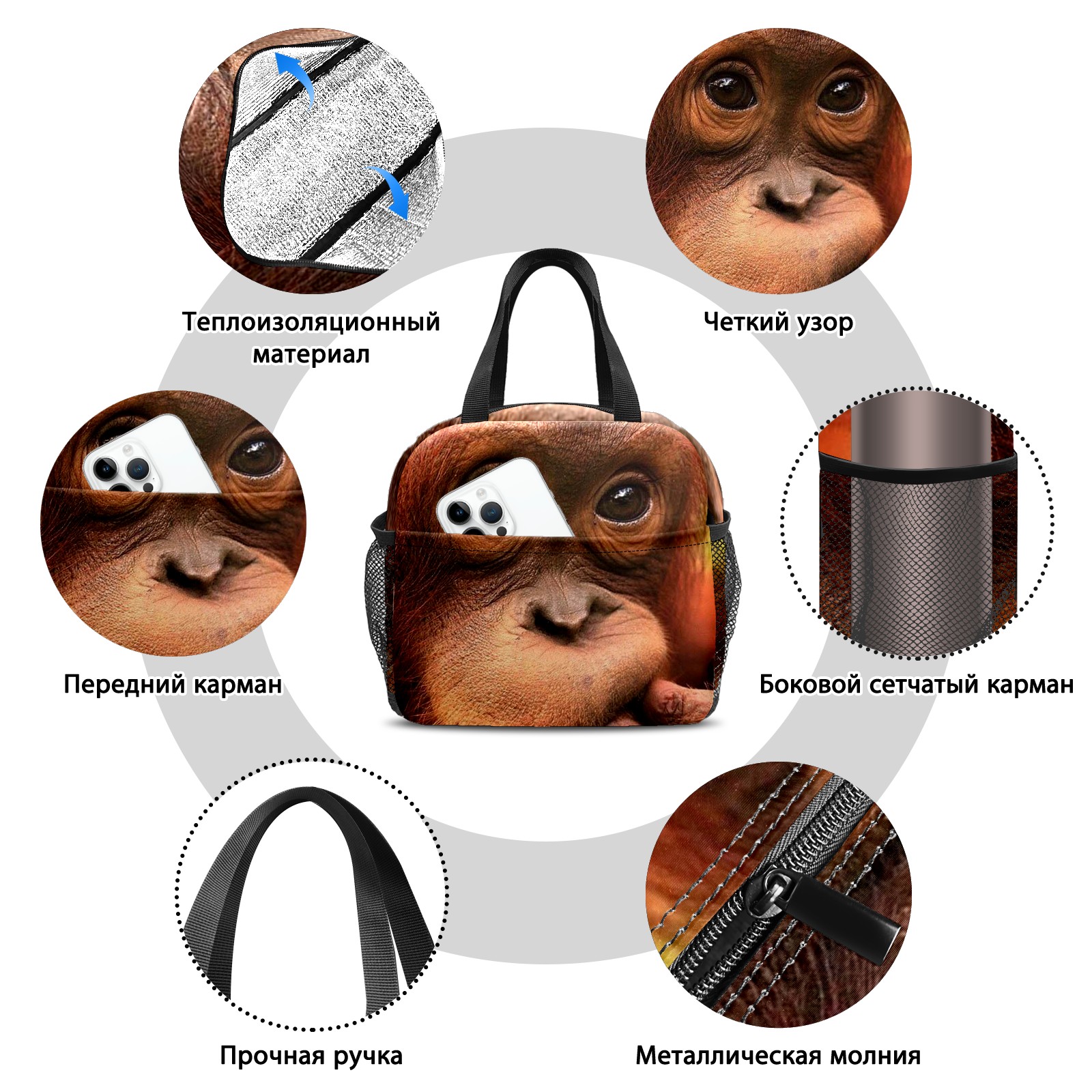 Lunch Bag,Lunch Box for Women Men,Monkey Reusable Insulated Lunch Tote,Small Leakproof Cute Lunch Cooler with High Capacity for Work,Picnic,Camping