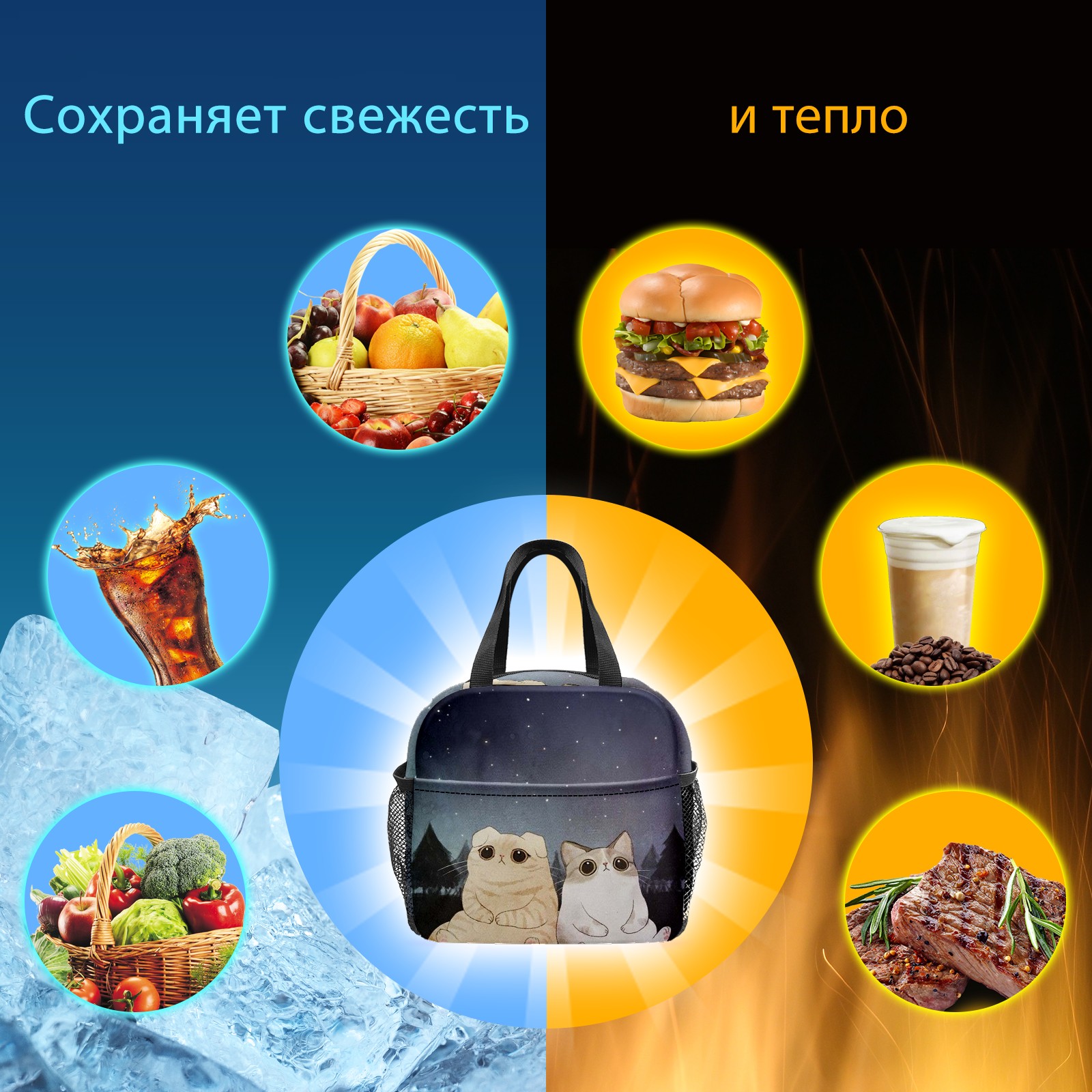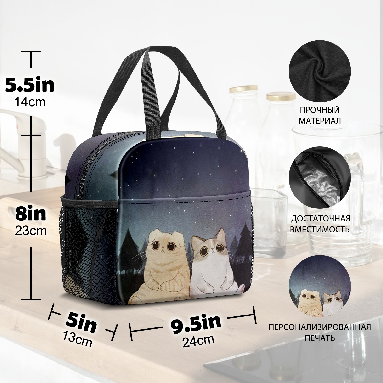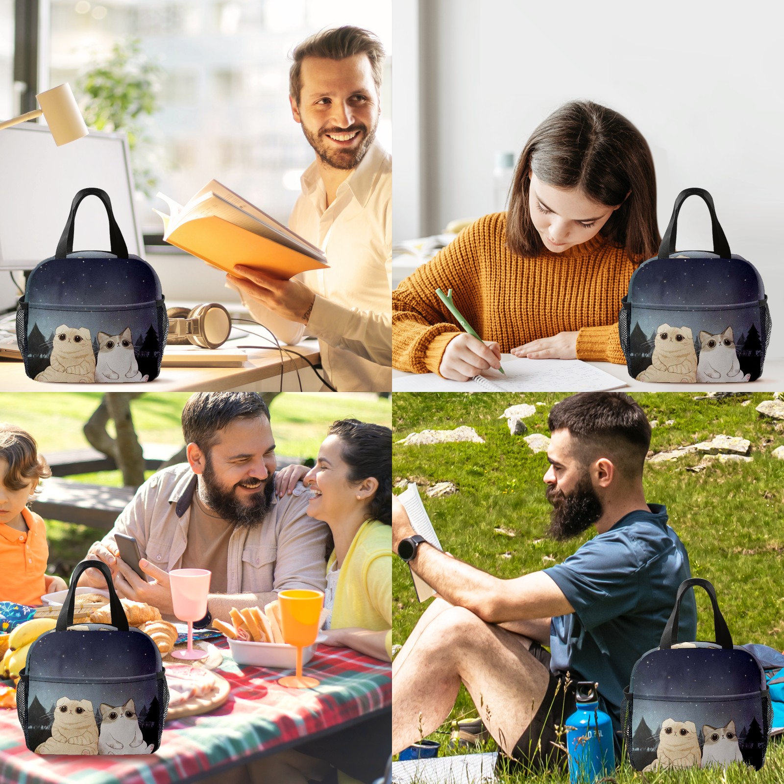 Lunch Bag,Lunch Box for Women Men,Kitten Reusable Insulated Lunch Tote,Small Leakproof Cute Lunch Cooler with High Capacity for Work,Picnic,Camping