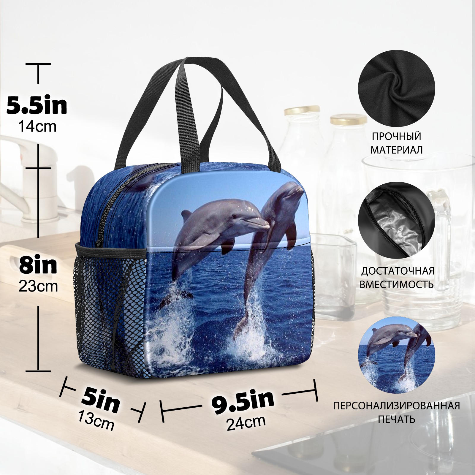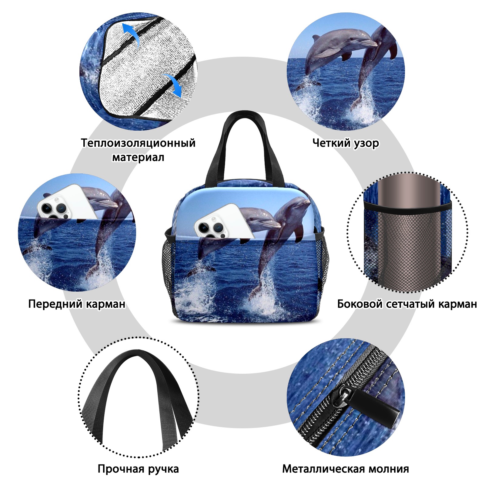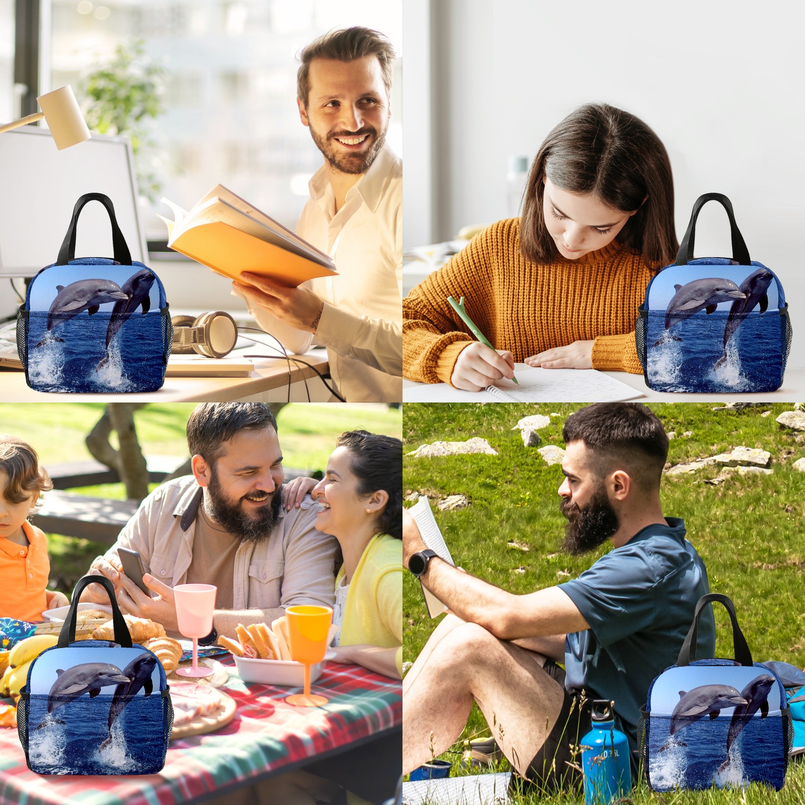 Lunch Bag,Lunch Box for Women Men,Jumping Dolphin Reusable Insulated Lunch Tote,Small Leakproof Cute Lunch Cooler with High Capacity for Work,Picnic,Camping