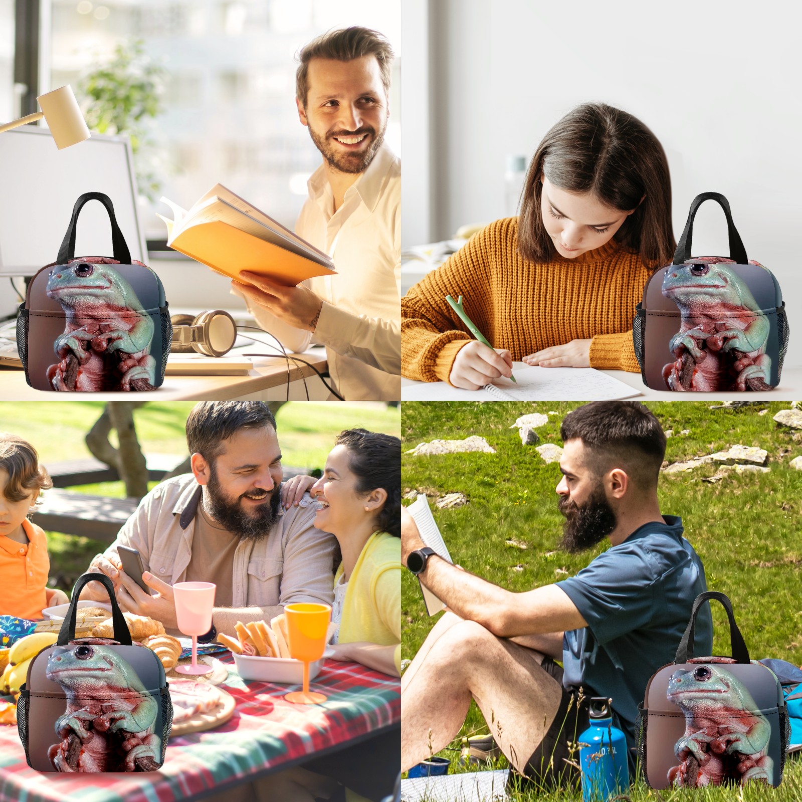 Lunch Bag,Lunch Box for Women Men,Frog3 Reusable Insulated Lunch Tote,Small Leakproof Cute Lunch Cooler with High Capacity for Work,Picnic,Camping