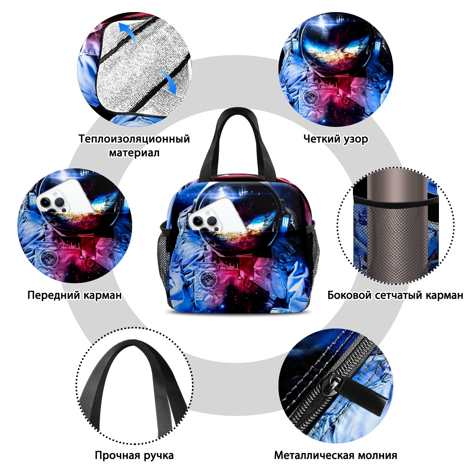 Lunch Bag,Lunch Box for Women Men,Astronaut Reusable Insulated Lunch Tote,Small Leakproof Cute Lunch Cooler with High Capacity for Work,Picnic,Camping