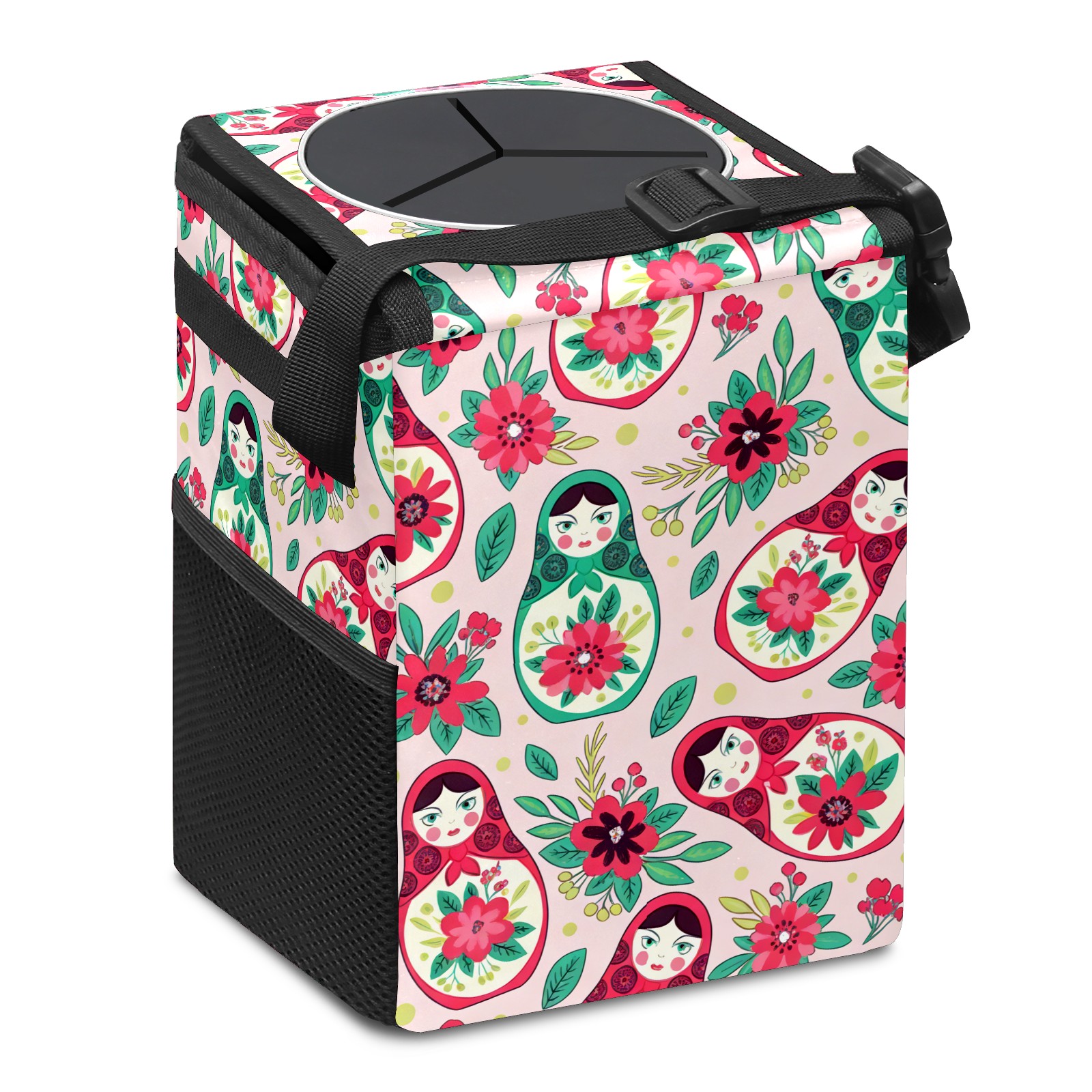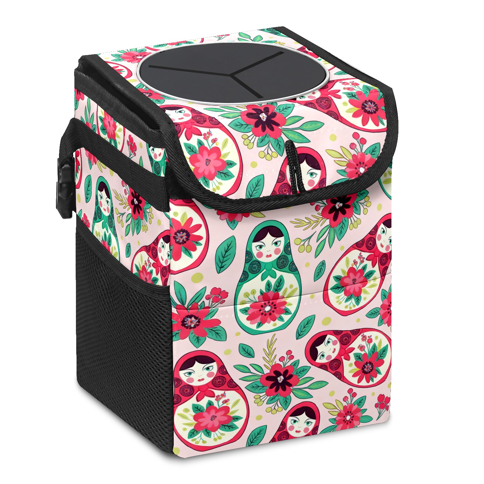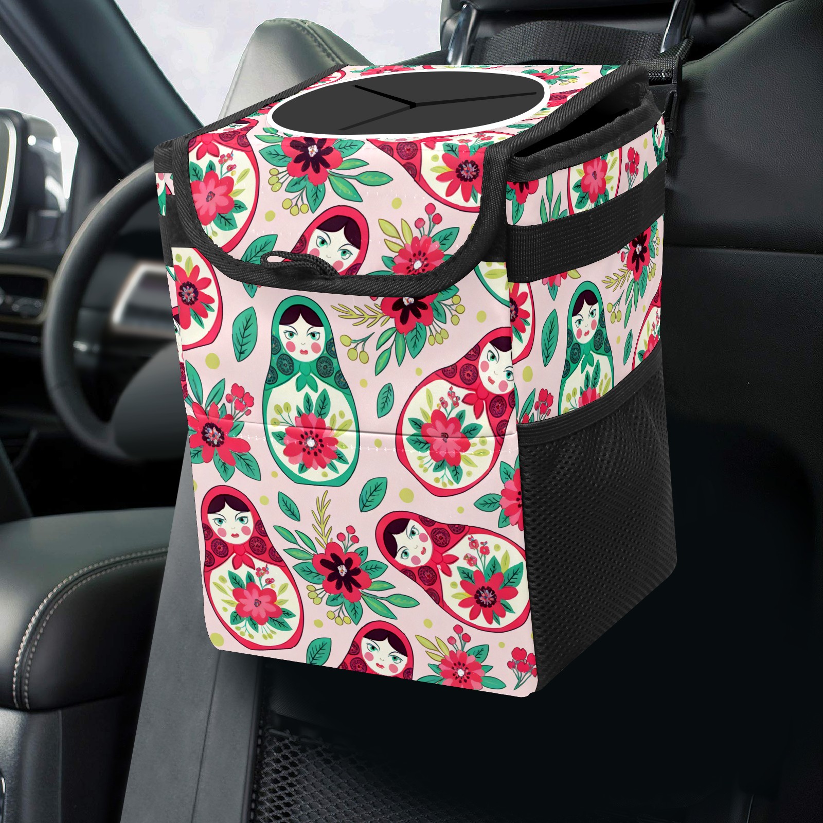 Car Trash Can with Lid, Small Portable Hanging Automotive Garbage Bin for Vehicles, Leakproof Waste Bag Container for SUV Truck Van Interior Auto Travel Road Trips(Soft Dolls Pink)