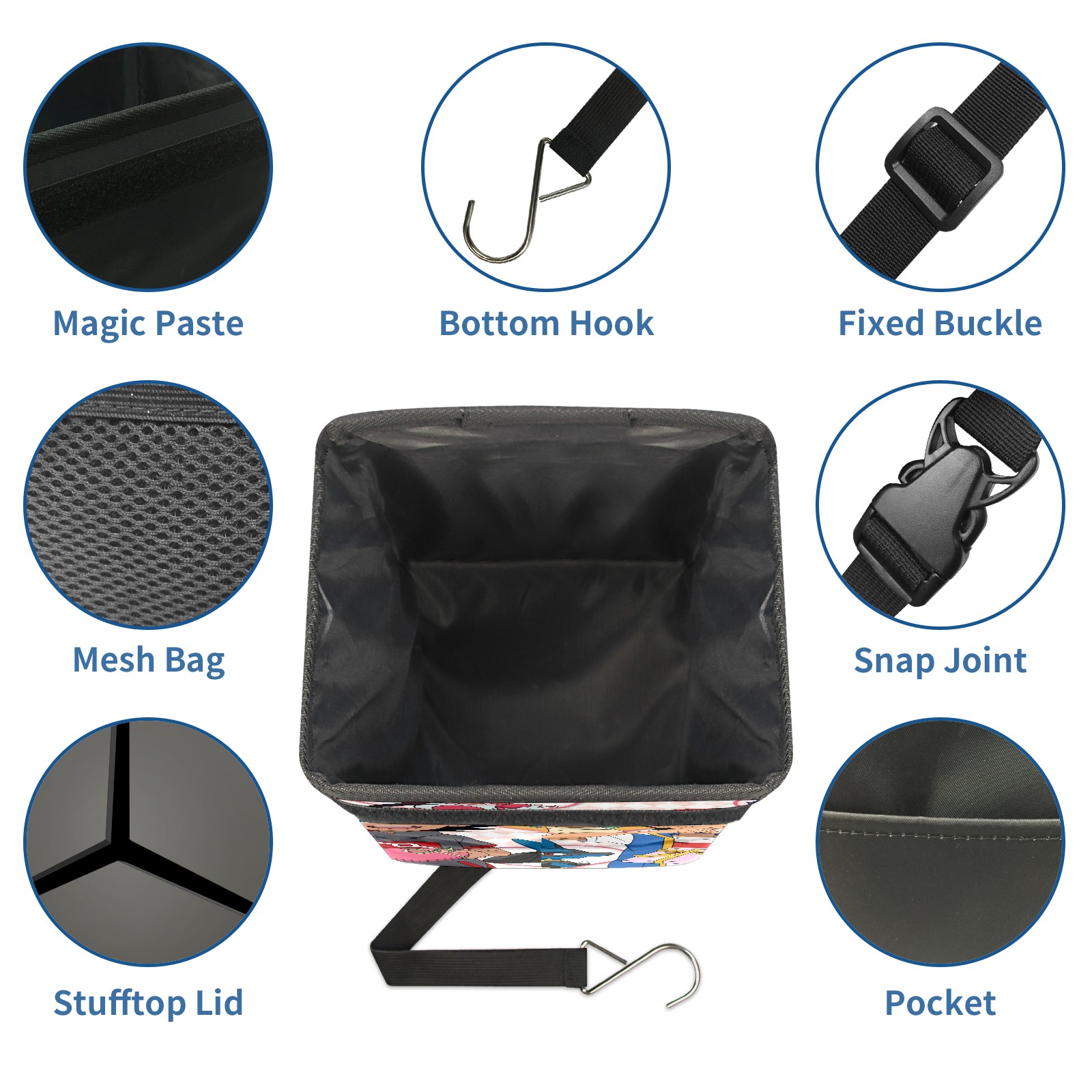 Car Trash Can with Lid, Small Portable Hanging Automotive Garbage Bin for Vehicles, Leakproof Waste Bag Container for SUV Truck Van Interior Auto Travel Road Trips(横图C (186))