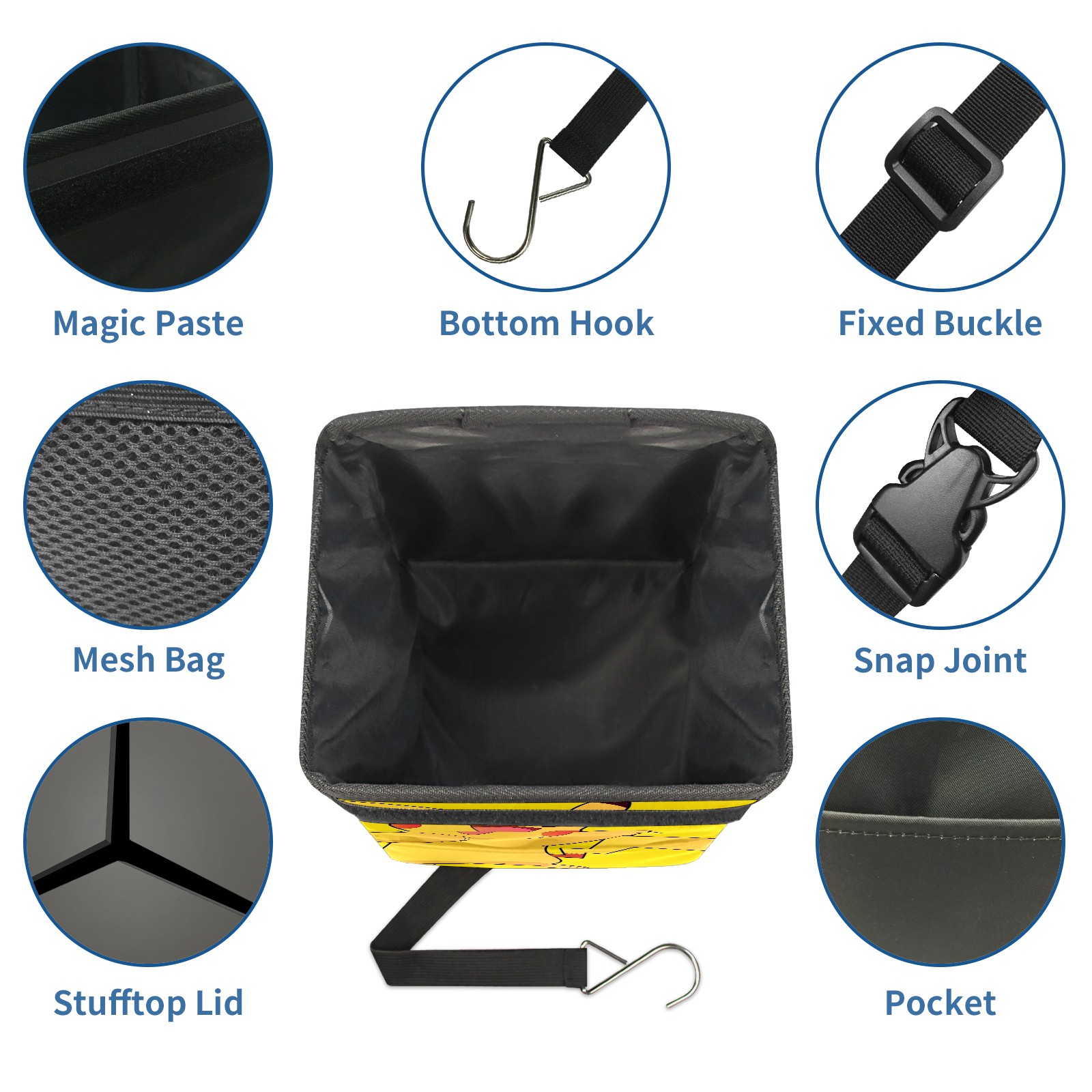 Car Trash Can with Lid, Small Portable Hanging Automotive Garbage Bin for Vehicles, Leakproof Waste Bag Container for SUV Truck Van Interior Auto Travel Road Trips(横图C (127))